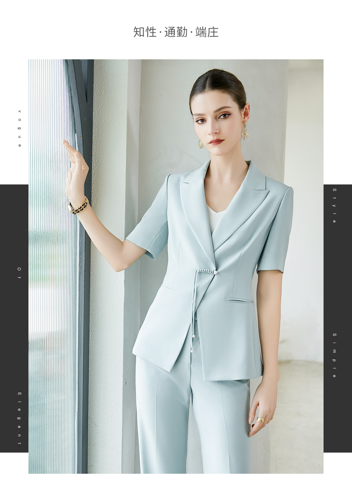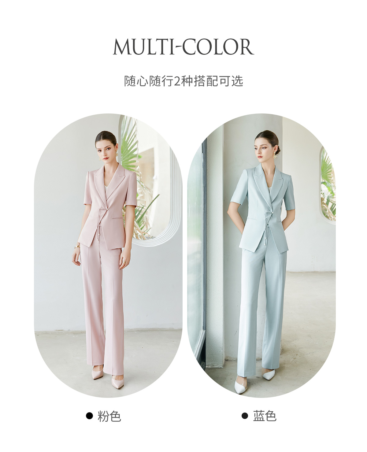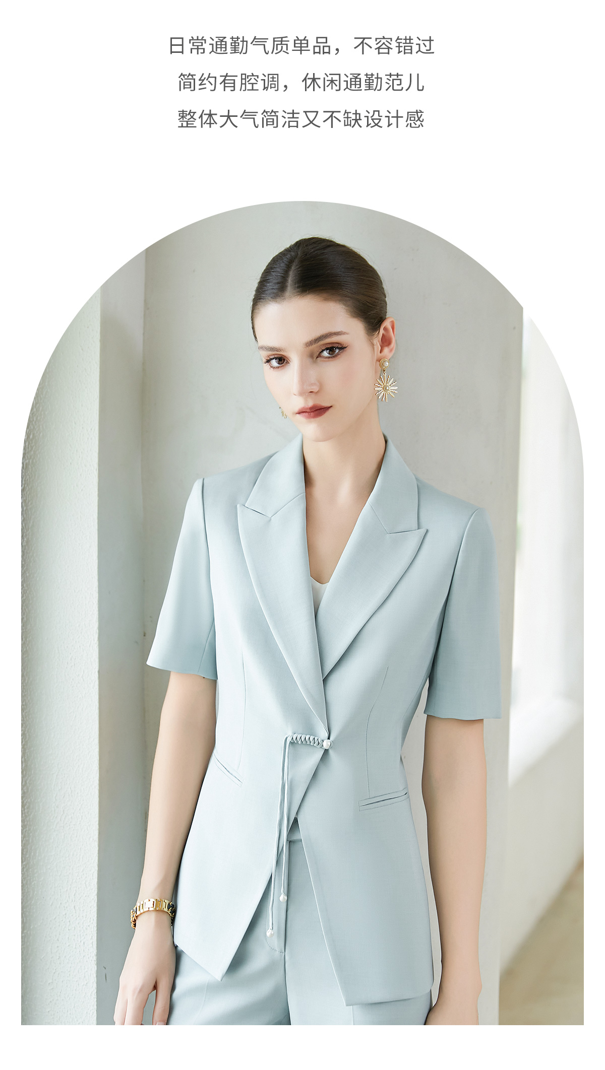 IWY/夏季新品蓝色两件套西服新中式一粒扣通勤干练气质时尚职业装CP2005-L
