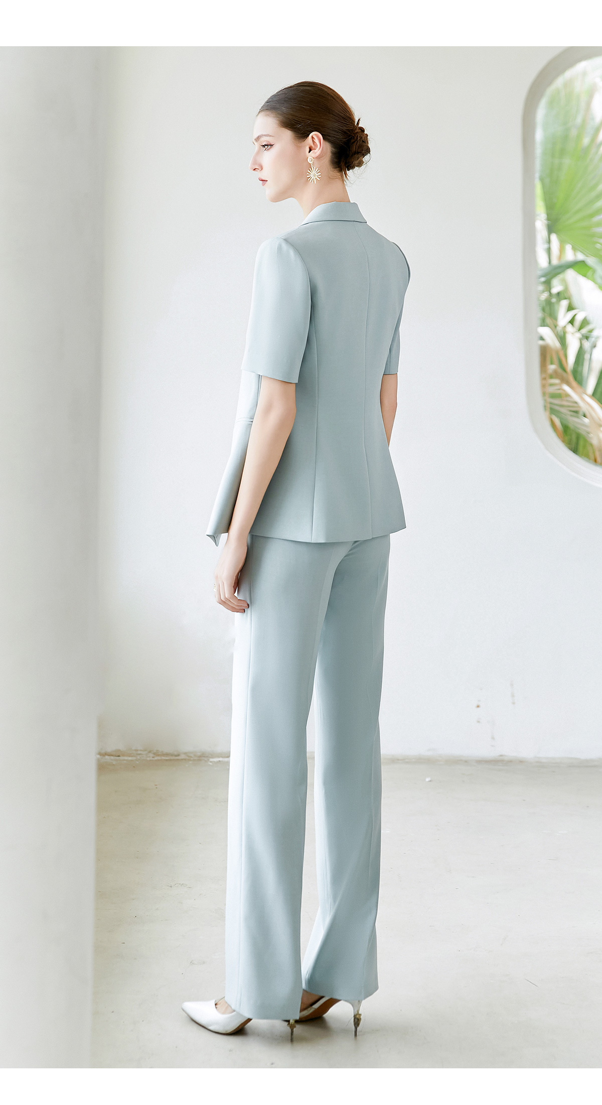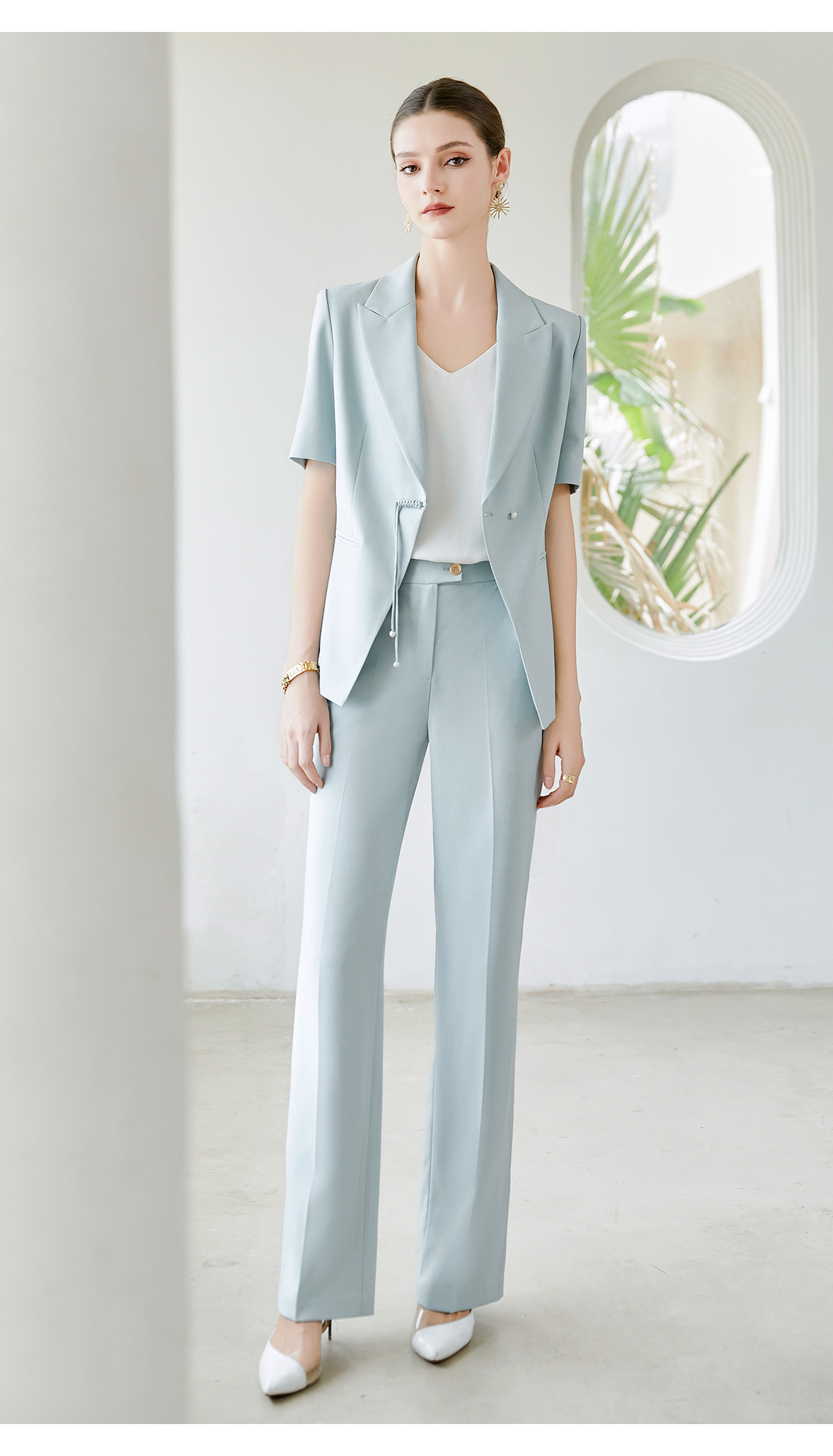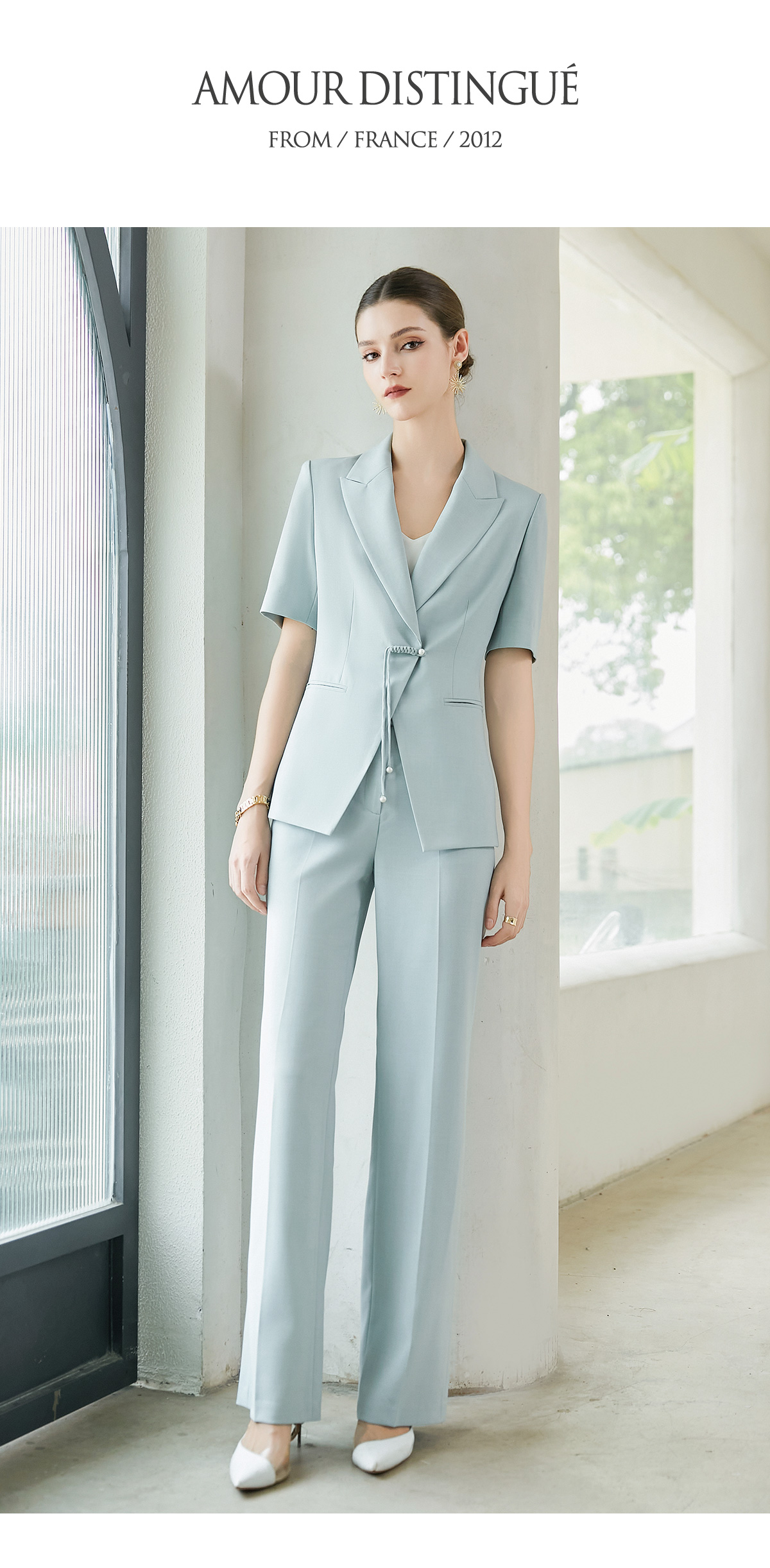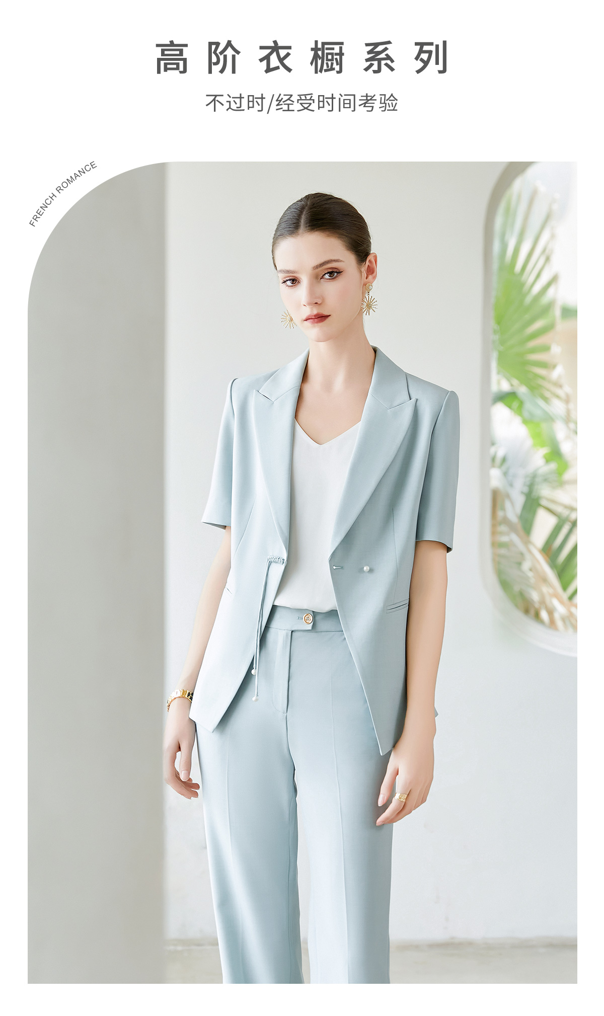 IWY/夏季新品蓝色两件套西服新中式一粒扣通勤干练气质时尚职业装CP2005-L