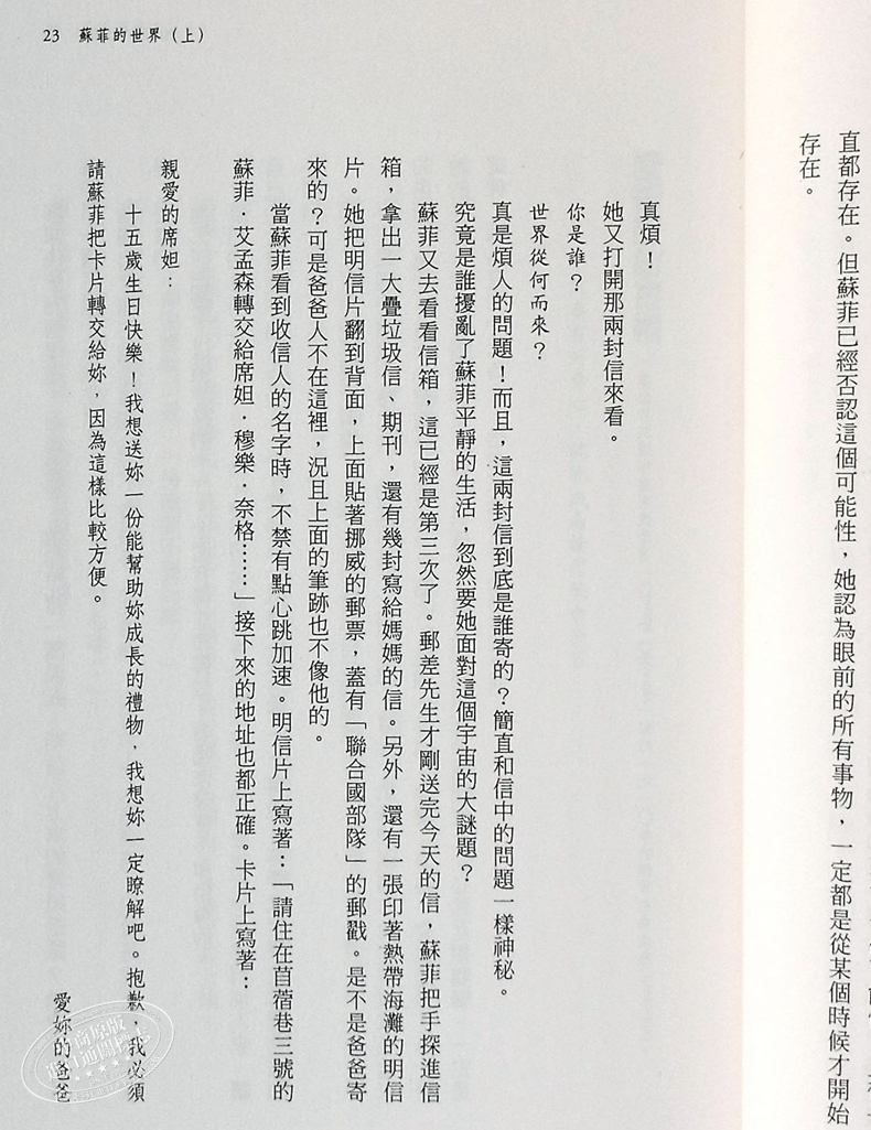 【中商原版】苏菲的世界(上/下册) 港台原版 乔斯坦贾德 木马出版 经典哲学小说
