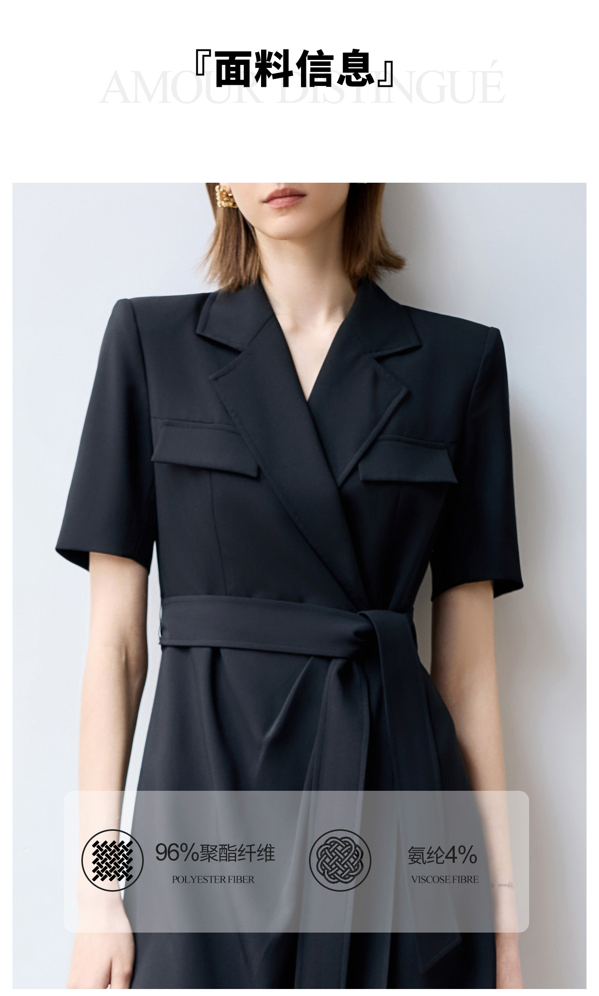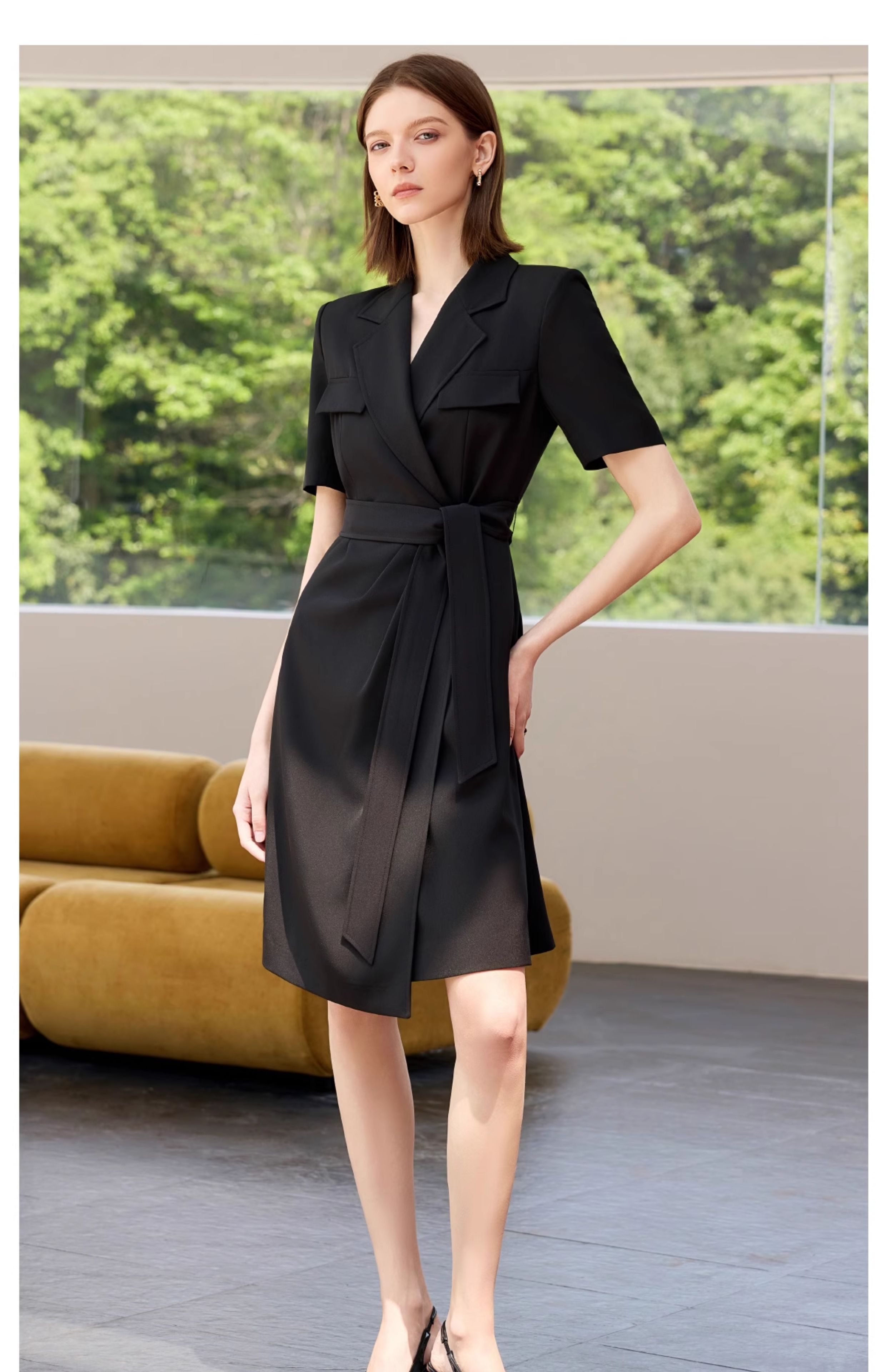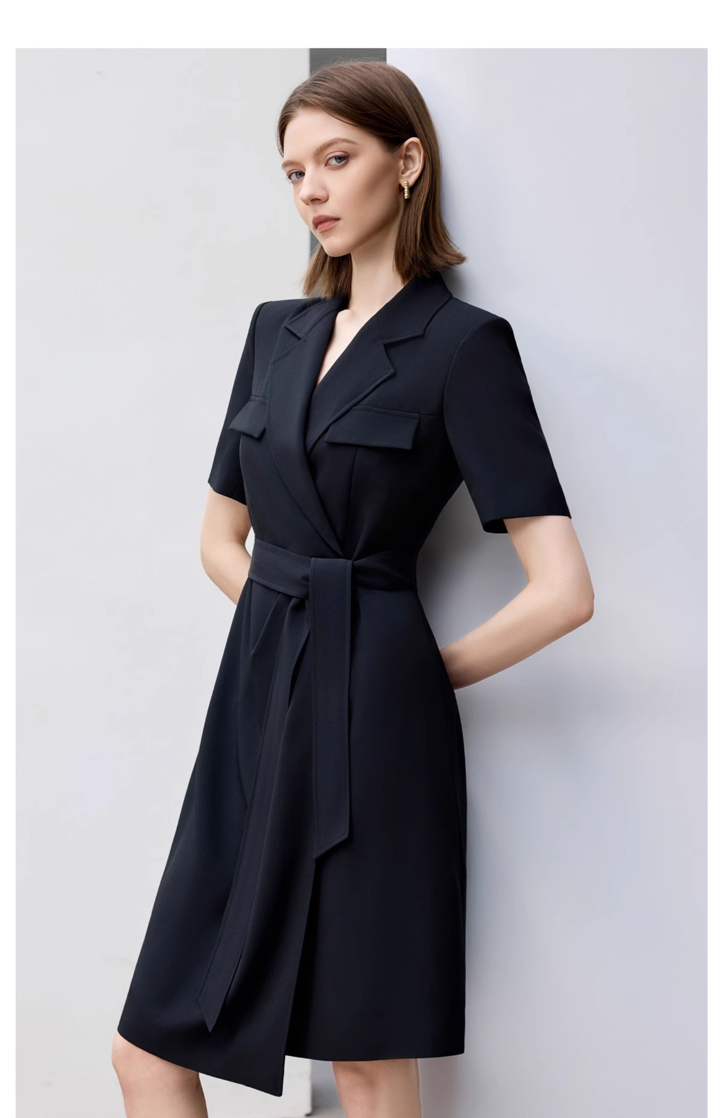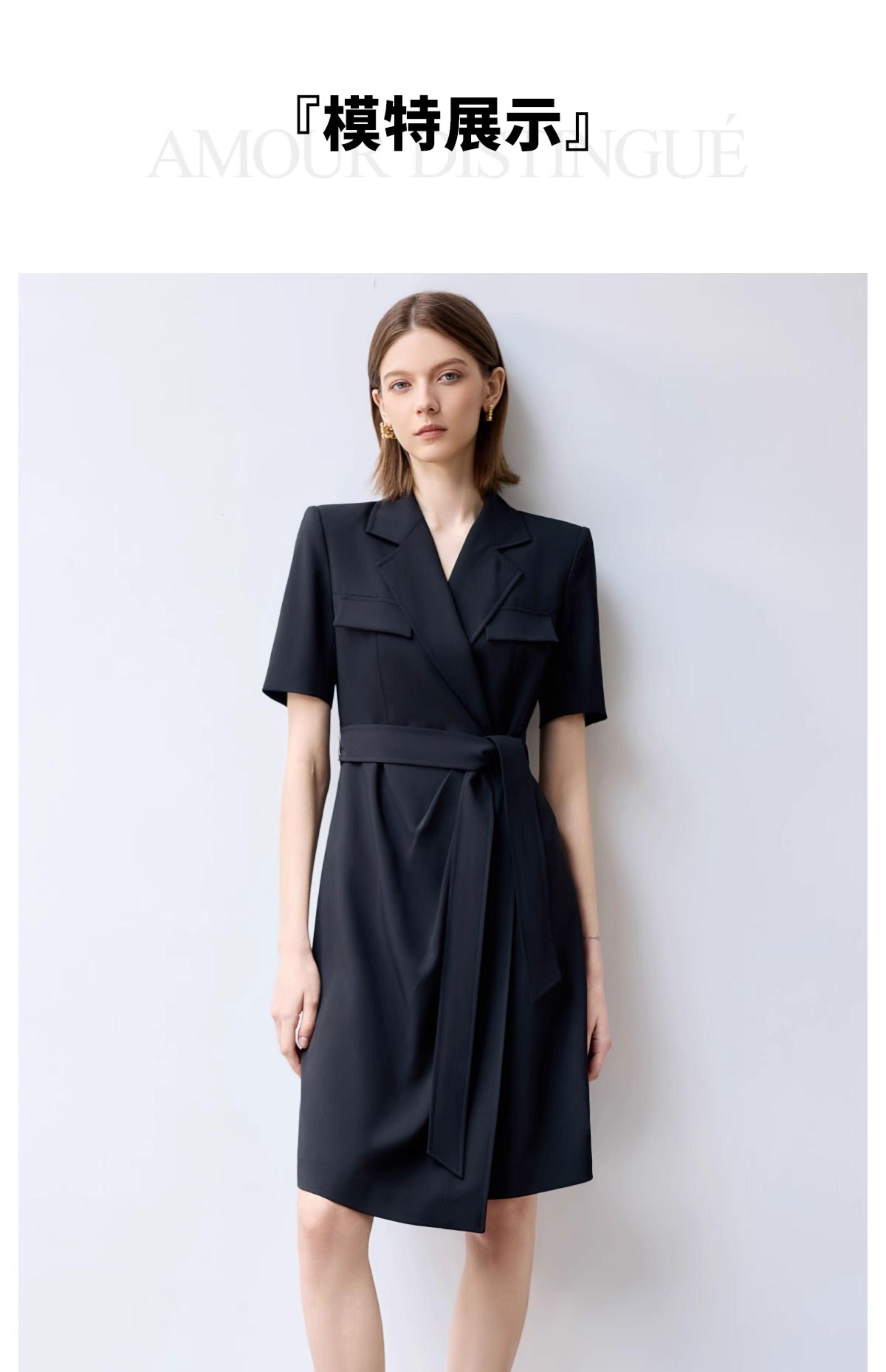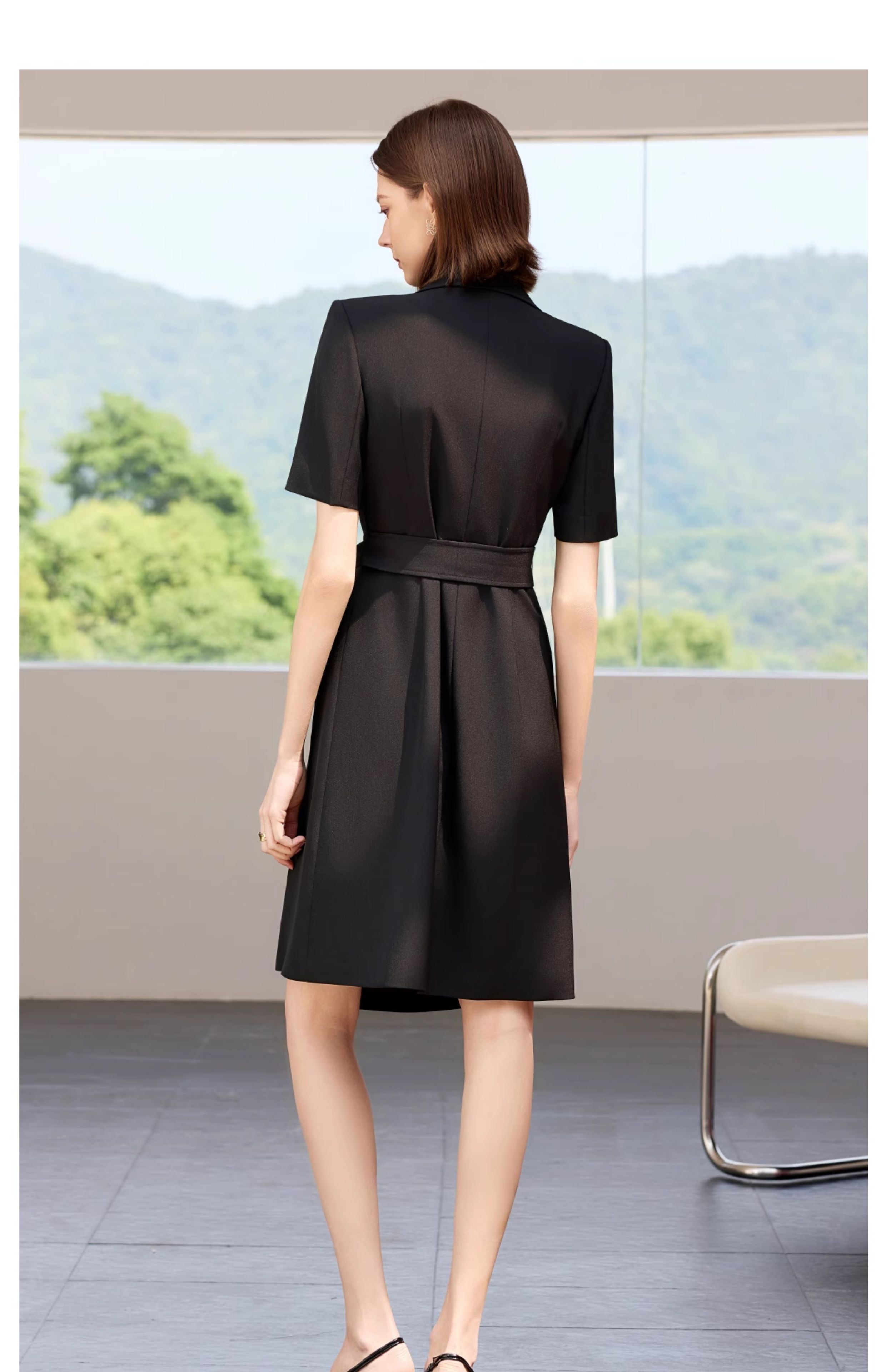 IWY/夏季短袖西装连衣裙女高级感黑色绑带正式场合接待职业套裙Q1386