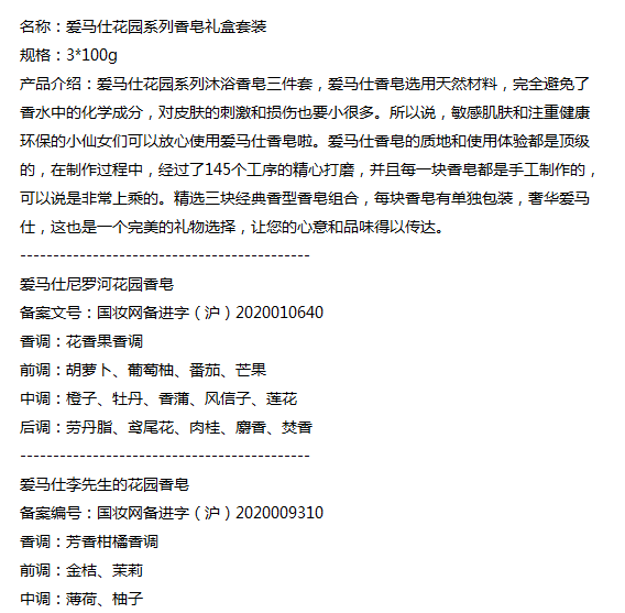【品牌授权】爱马仕花园系列香皂礼盒套装3*100g