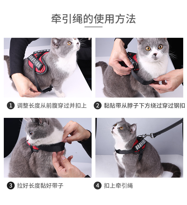 【猫咪牵引绳】防挣脱专用溜猫绳遛猫绳背心式背带项圈栓小猫绳子猫链
