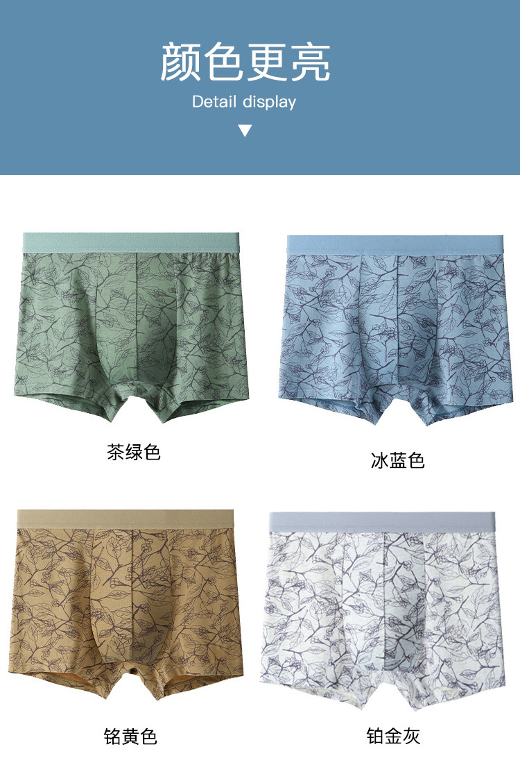 【男士全棉印花树叶款平角裤】全棉印花男士内裤棉质透气男生运动休闲平角四角短裤