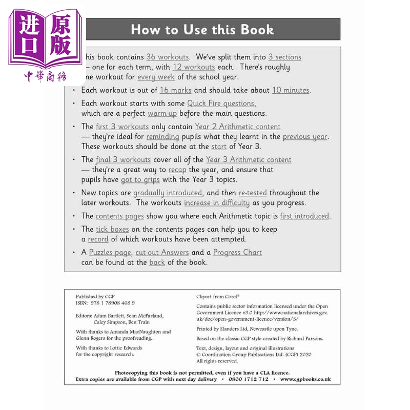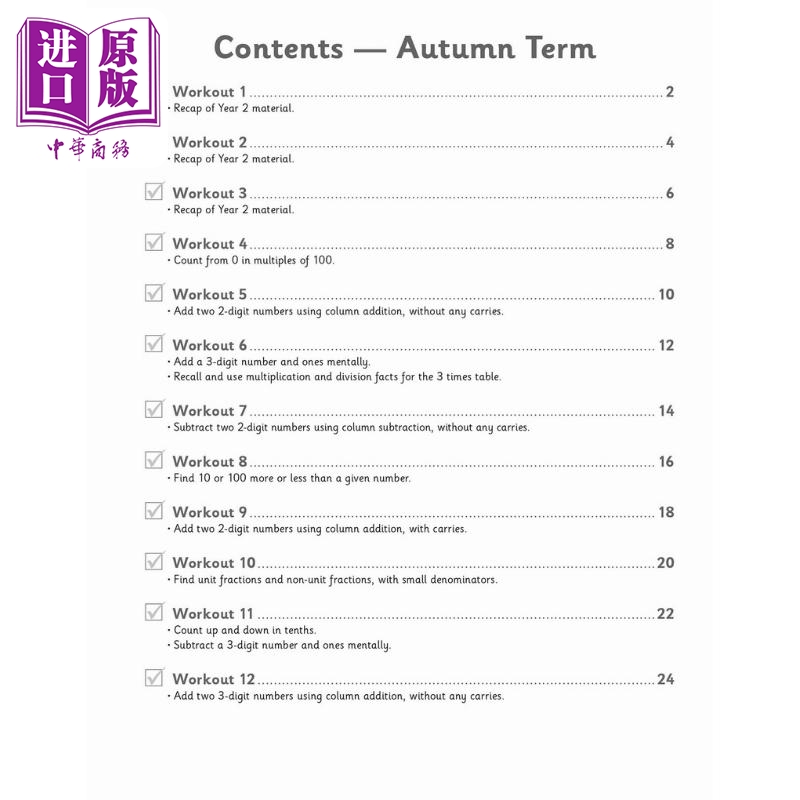 【中商原版】英国原版CGP教辅 新的KS2数学10分钟每周锻炼算术第3年New KS2 Maths 10-Minute Weekly Workouts Arithmetic