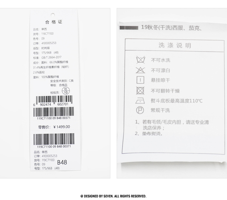 【特价】柒牌男装西服新款时尚修身青年西装男士商务休闲抗皱单西 119C71100