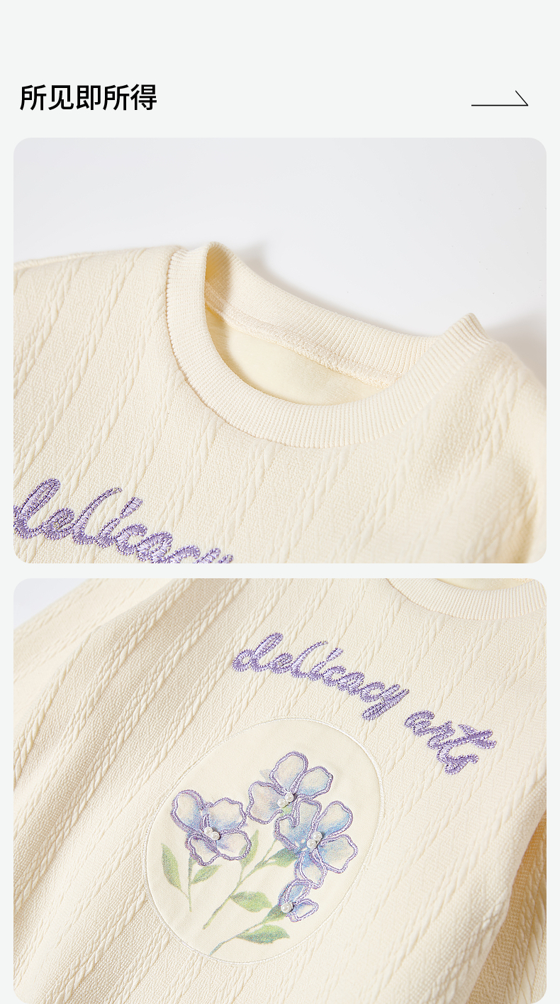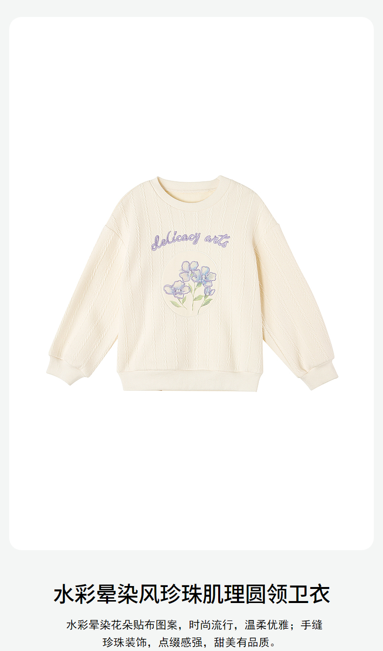笛莎Deesha童装女童卫衣2023冬季新款水彩晕染风圆领卫衣