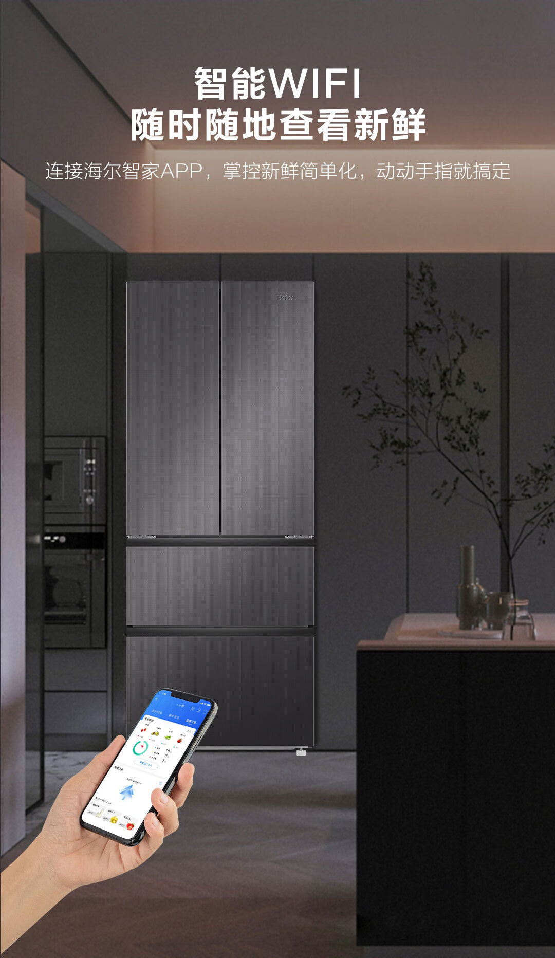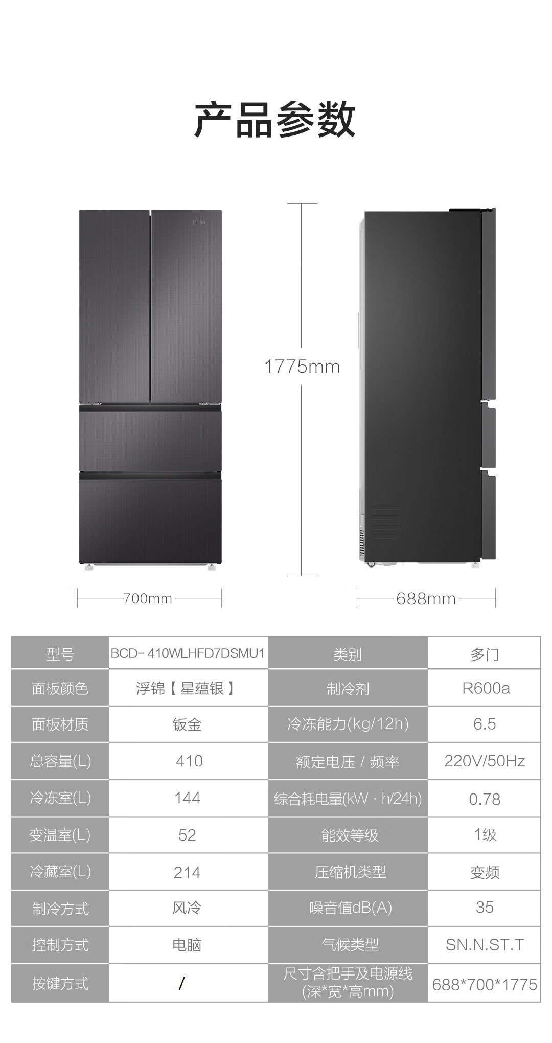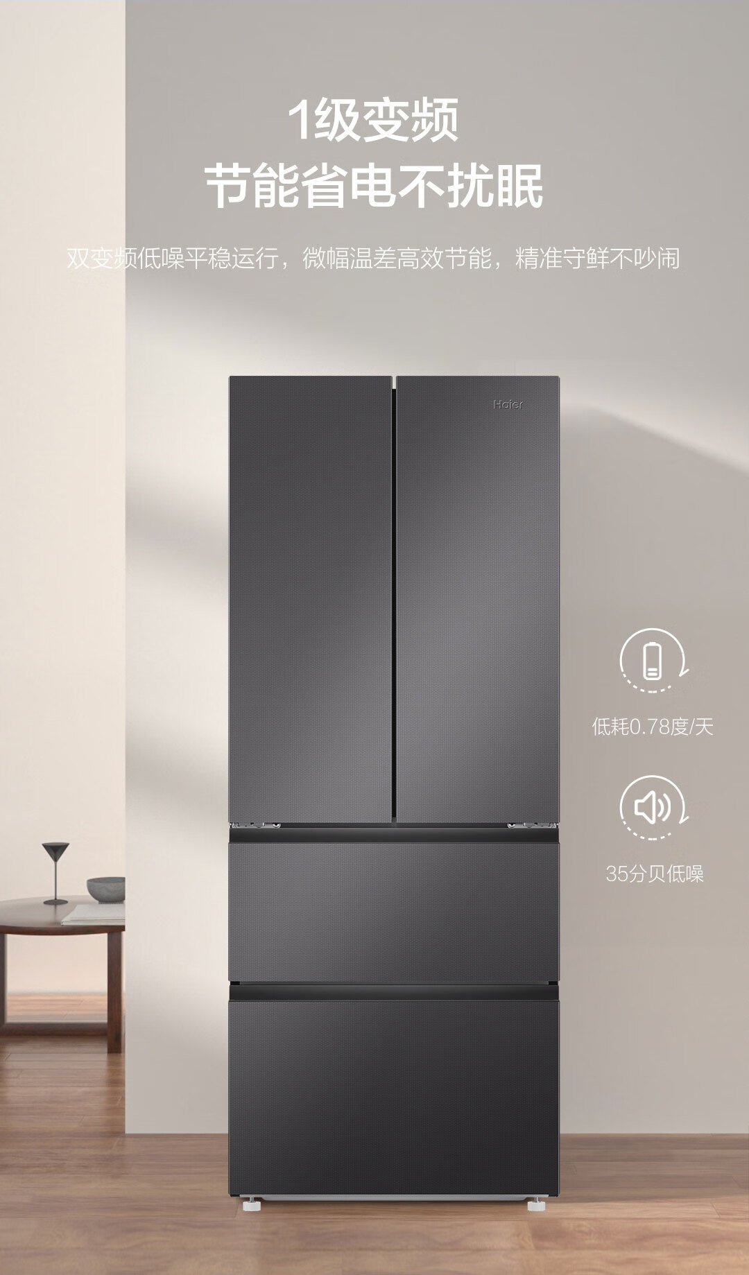 海尔(Haier)410升 法式多门 电冰箱 小户型家用 一级能效 变频节能 风冷无霜变温 超薄嵌入式BCD-410WLHFD7DSMU1