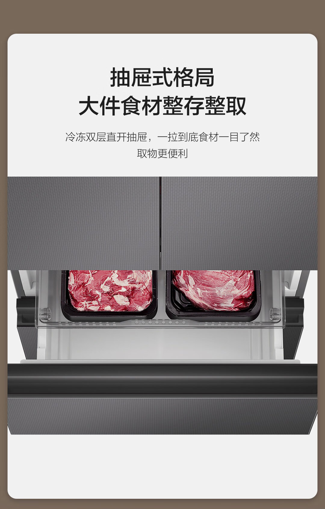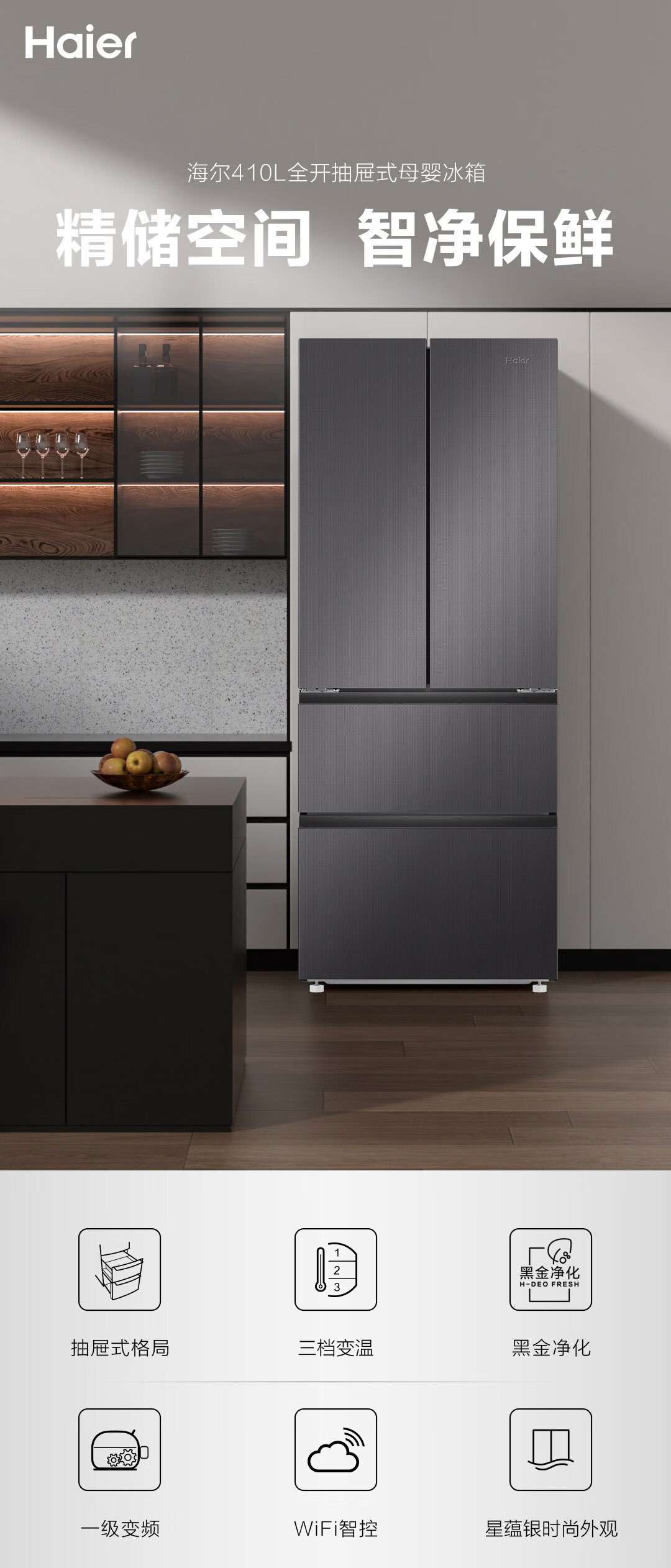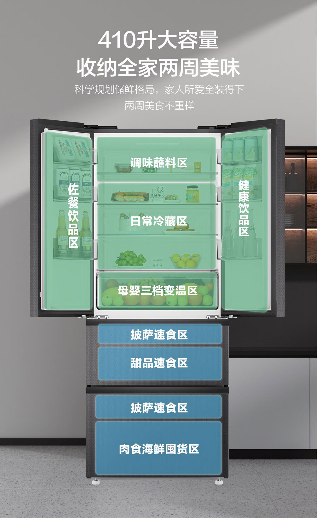 海尔(Haier)410升 法式多门 电冰箱 小户型家用 一级能效 变频节能 风冷无霜变温 超薄嵌入式BCD-410WLHFD7DSMU1
