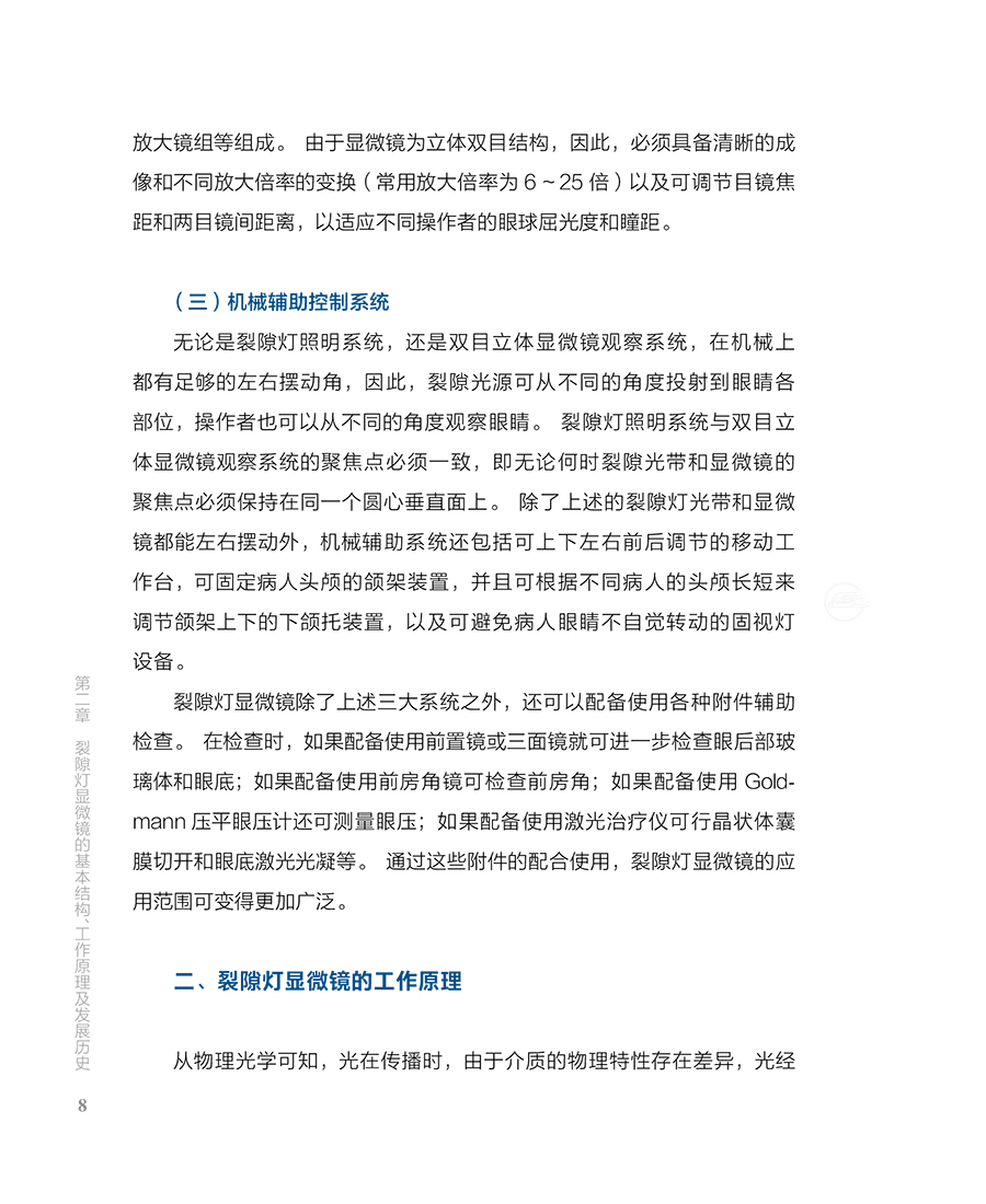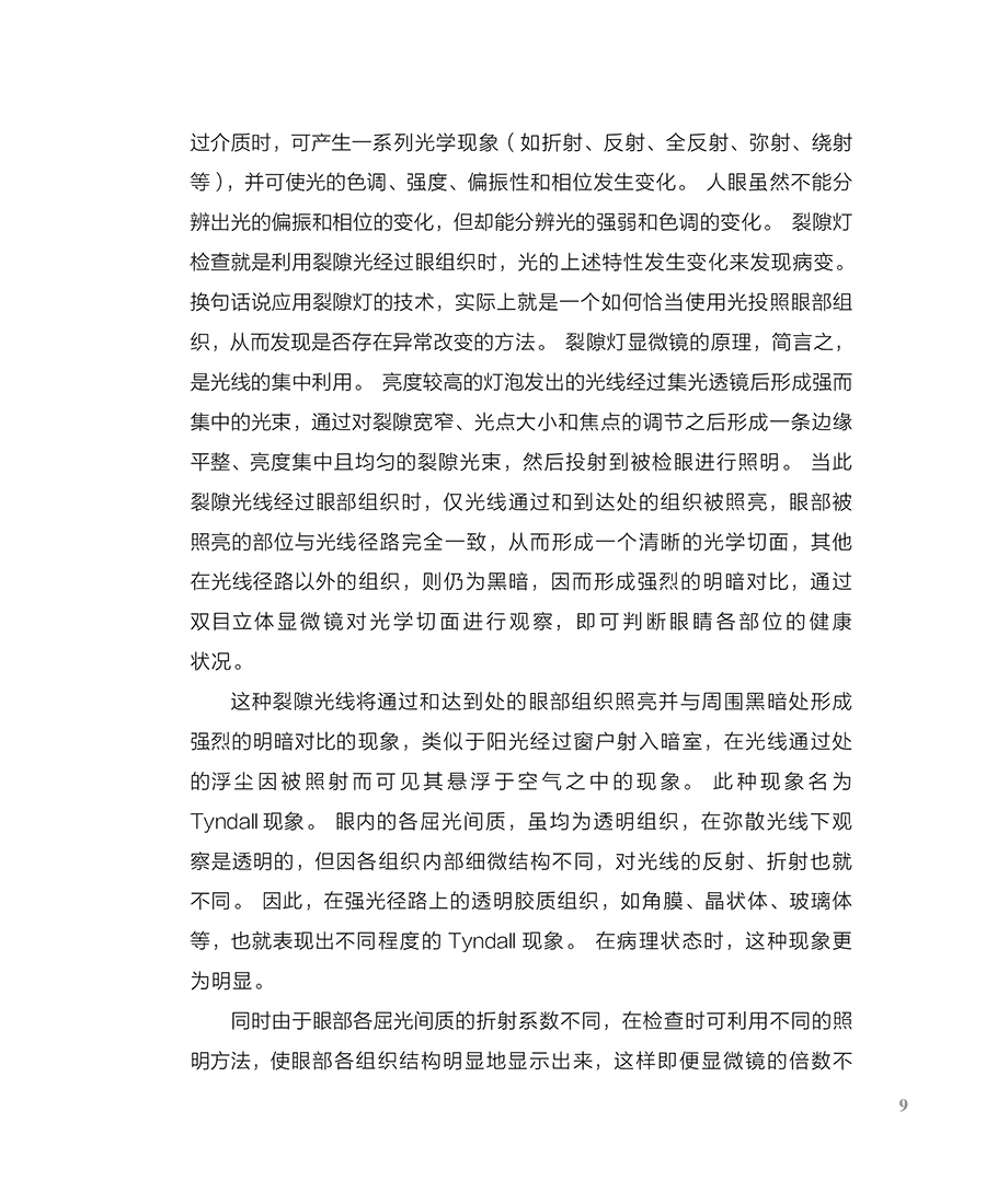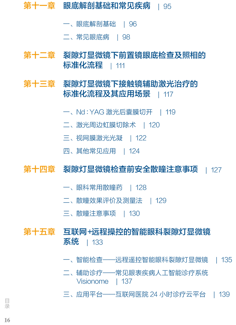 裂隙灯显微镜是眼科常用的检查仪器,是眼科临床诊疗过程中评估患眼情况的最常用、最重要检查手段。本书围绕裂隙灯显微镜操作技巧、标准化裂隙灯拍照流程以及主要眼病的检查结果判读来编写,旨在普及、推广并规范裂隙灯检查,提高裂隙灯检查效率,对于促进眼科临床和科研工作,具有重要意义。1.裂隙灯显微镜是眼科常用的检查仪器,是眼科临床诊疗过程中评估患眼情况的最常用、最重要检查手段。通过裂隙灯,检查者可使用双眼立体地观察到高倍放大的眼睑及眼前段情况,还可通过辅助设备观察到房角、眼后段,从而判断是否有病变及病变的特征及定位。裂隙灯显微镜照相可实现眼部影像的实时成像采集。能直观、准确、客观地记录眼部图像,有利记录病情及随访评估病情变化,从而为眼病治疗、科学研究、教学交流及医患交流提供良好的素材。2.目前此类选题较少,但读者受众相对较大、3.中山眼科中心作为国内领先的眼科专科医院,积累了丰富的裂隙灯显微镜操作经验,建立了裂隙灯显微镜使用拍照规范流程。