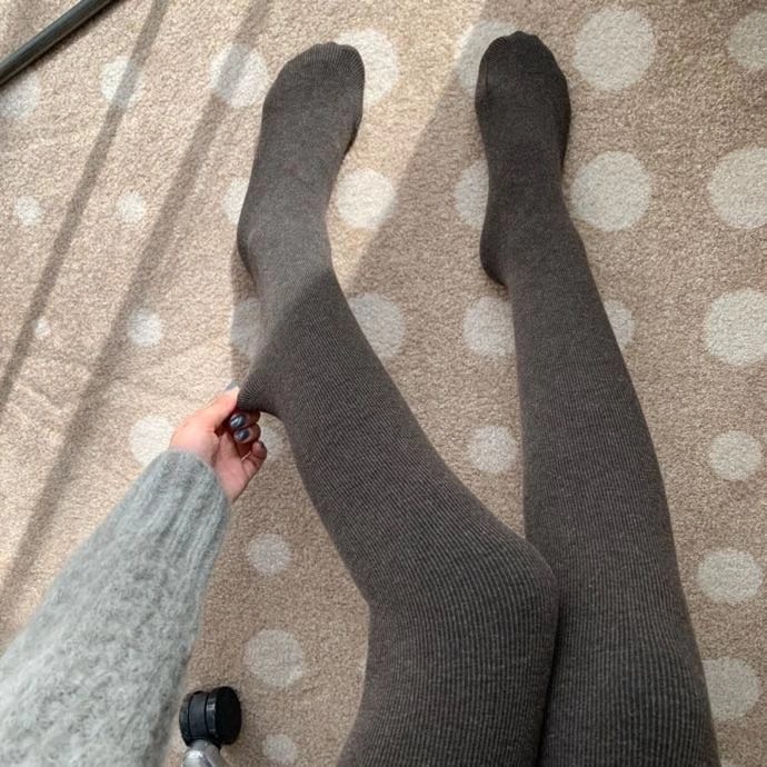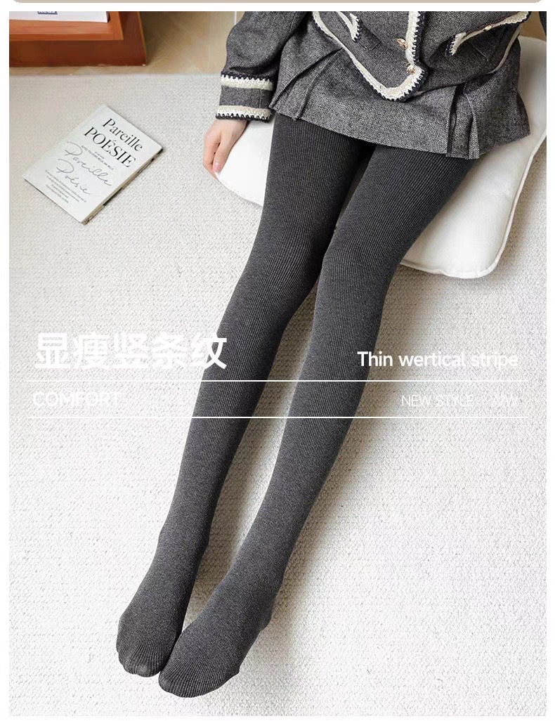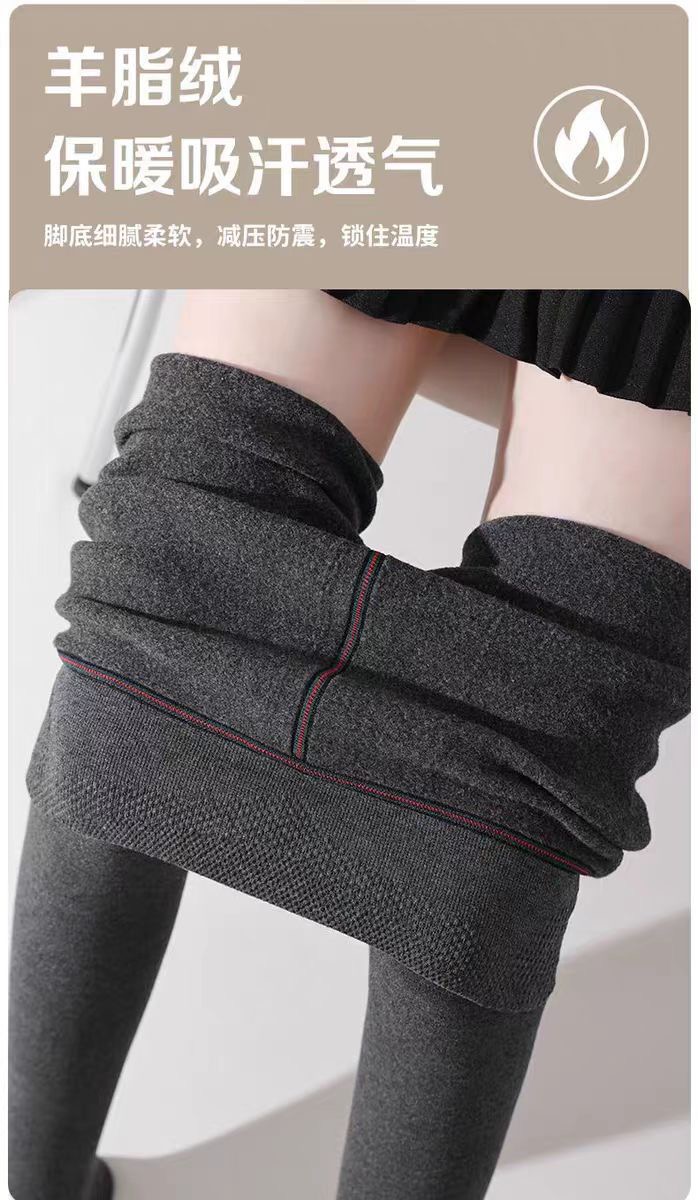 【YW】无忧购49元2件秋冬加绒保暖棉竖条高腰显瘦羊脂袜打底裤(截单后7天发货)