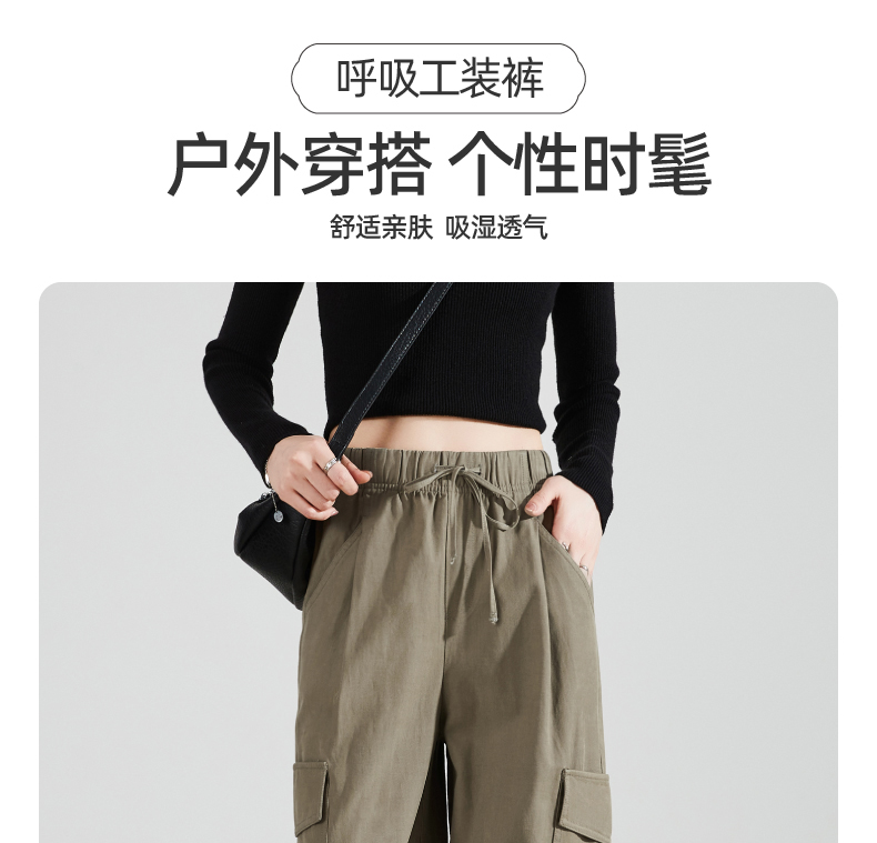 【甄选工装裤运动风】逸阳高腰登山休闲裤子美式阔腿裤0948