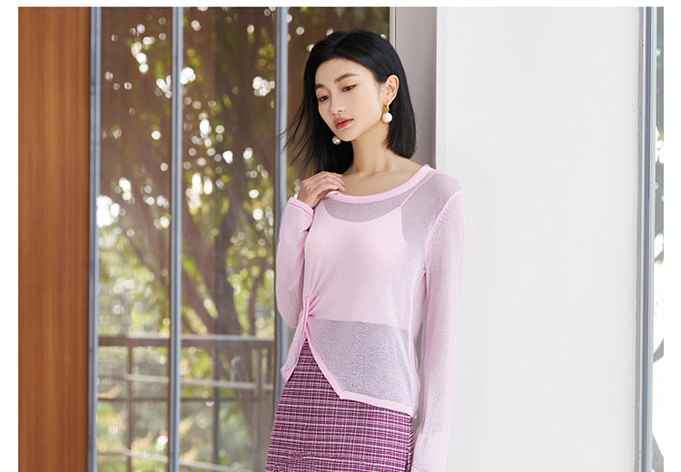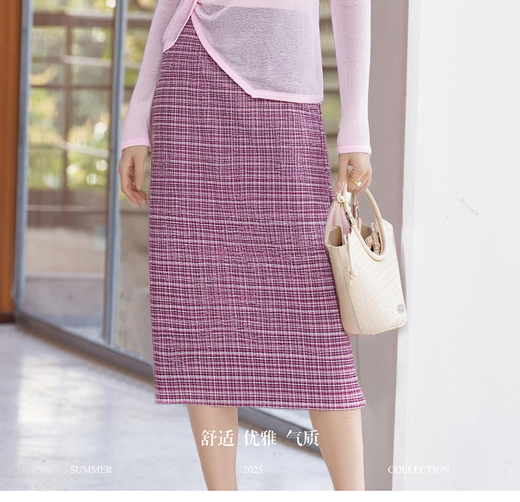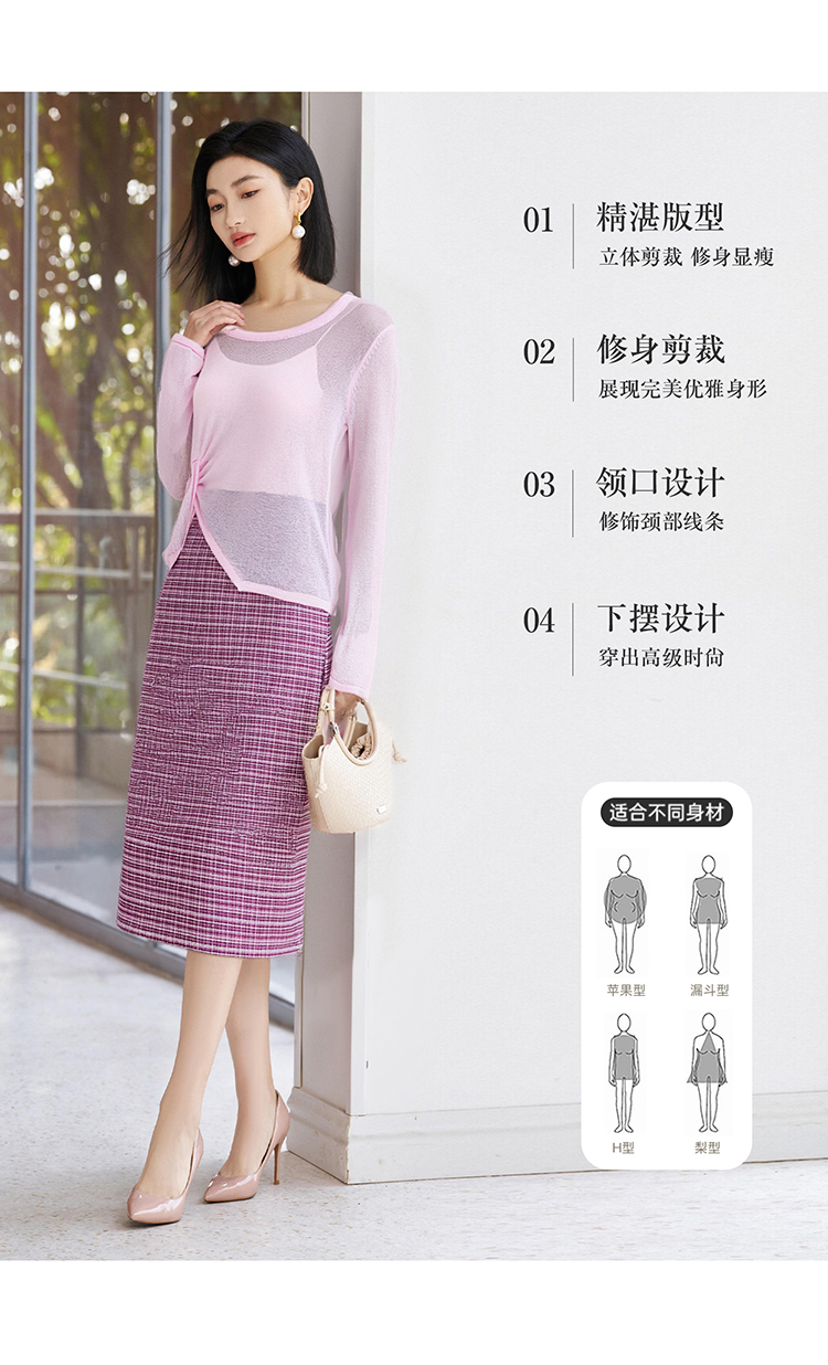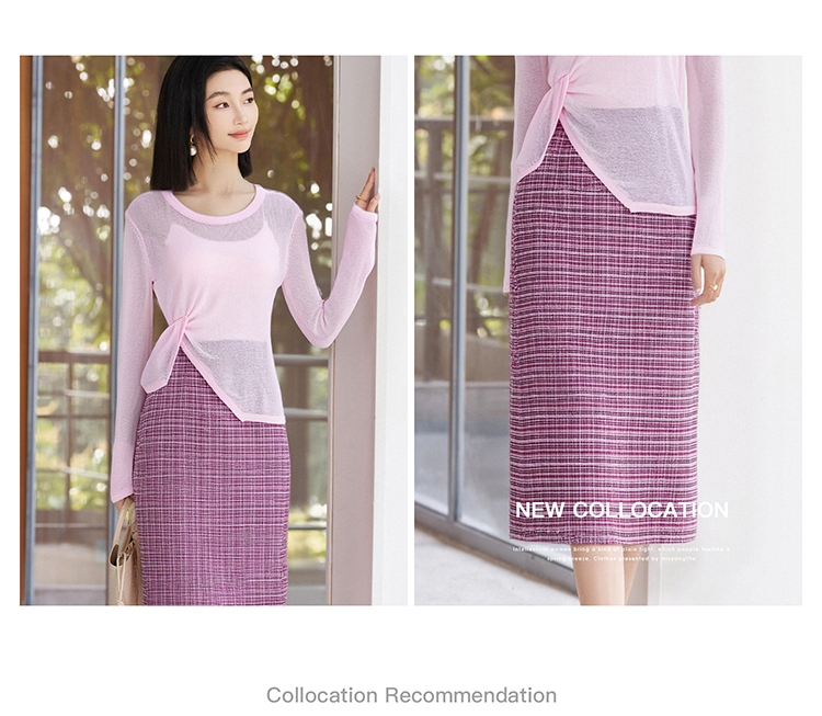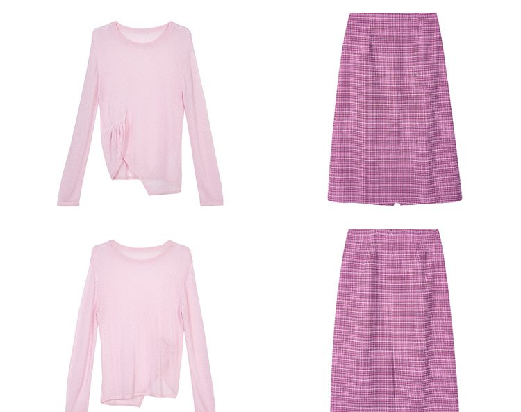 粉紫色罩衫+格纹半身裙两件套5Y25CG4520