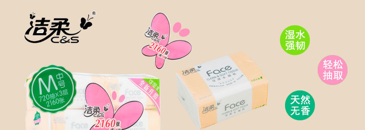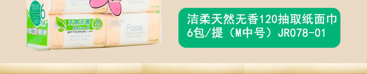 洁柔天然无香120抽取纸面巾 6包/提(M中号)JR078-01