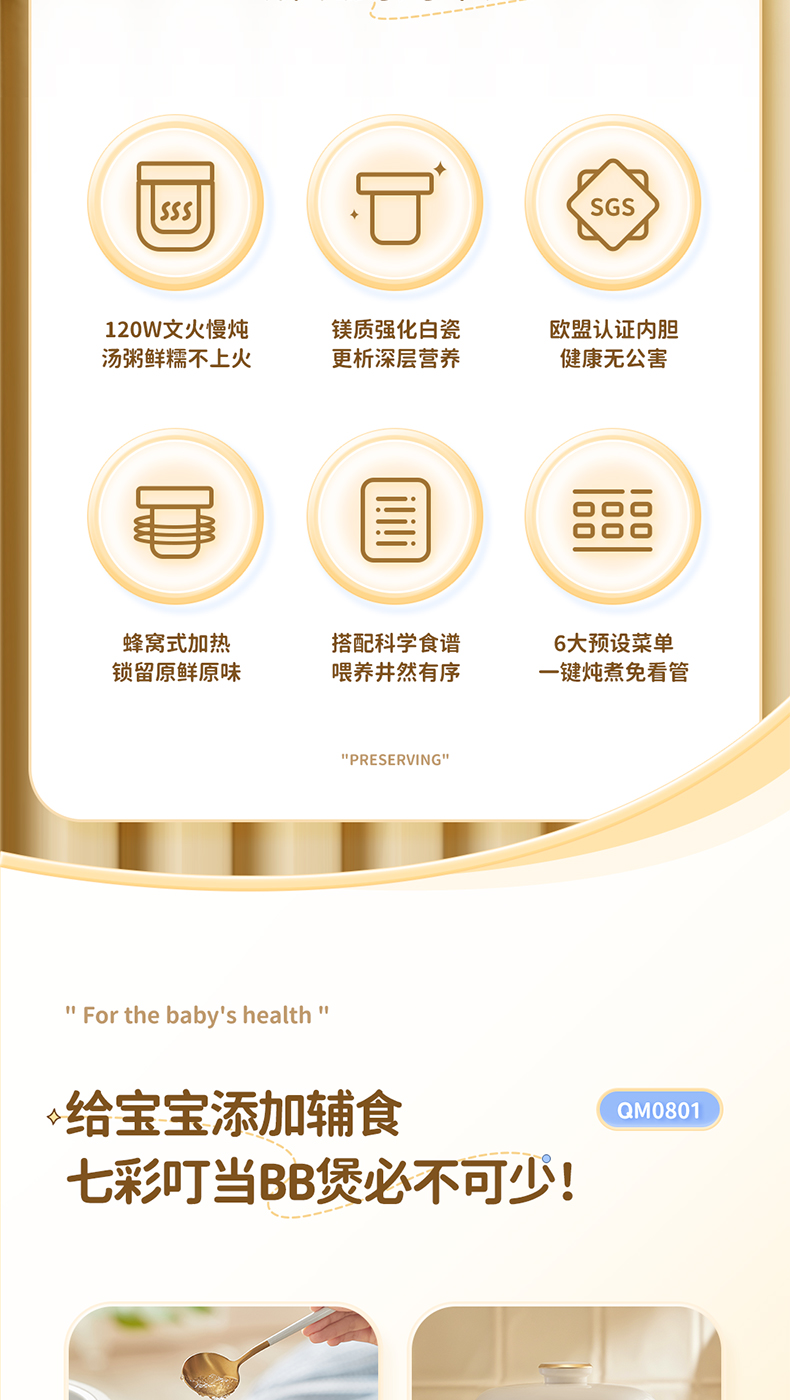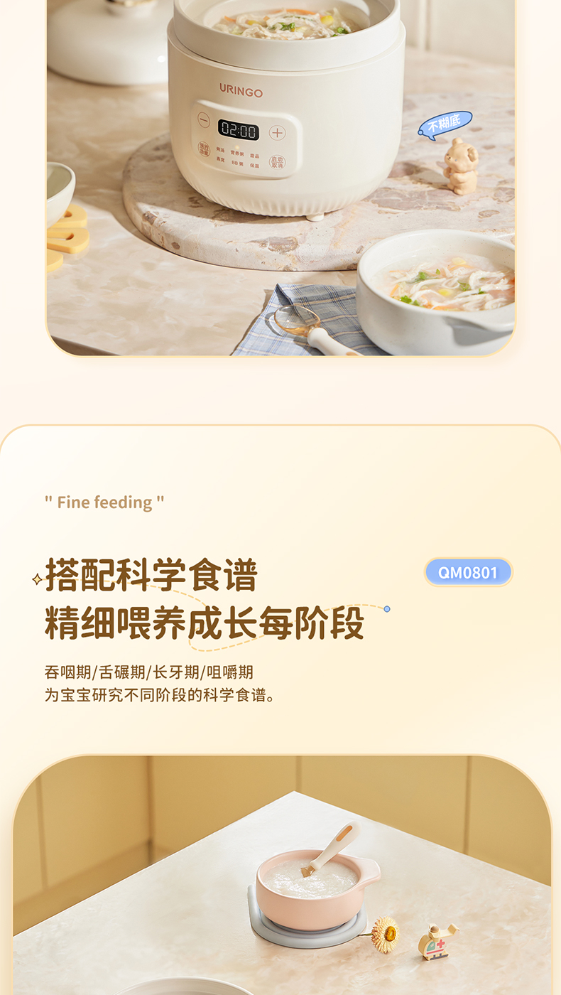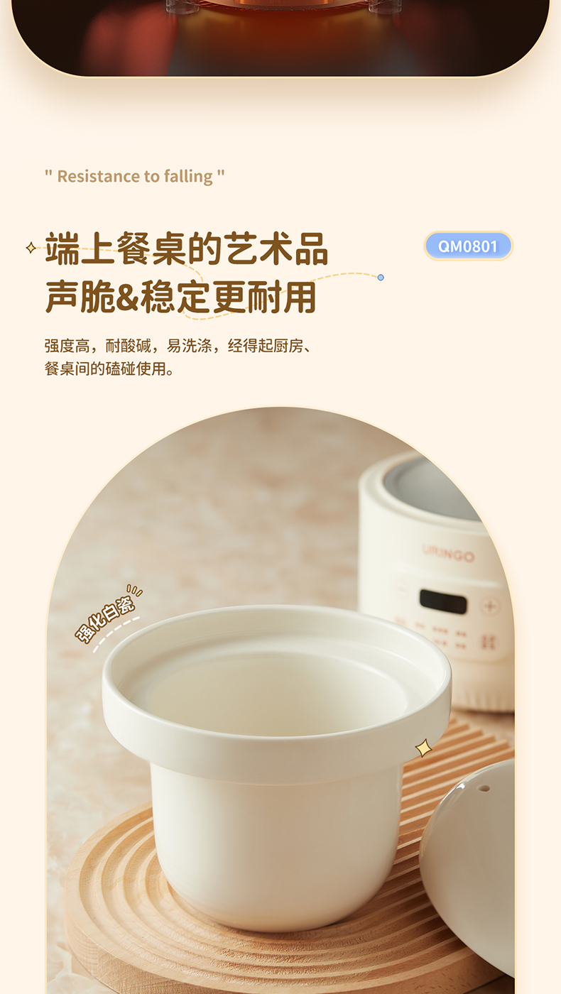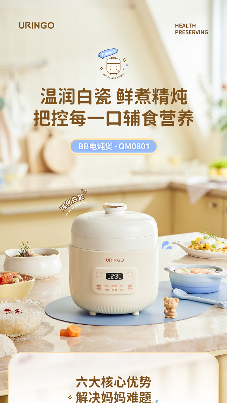 【宝宝专用电炖锅】七彩叮当电炖盅QM0801 6大预设菜单 文火精炖 炖汤/营养粥/甜品燕窝/BB粥/保温 可预约