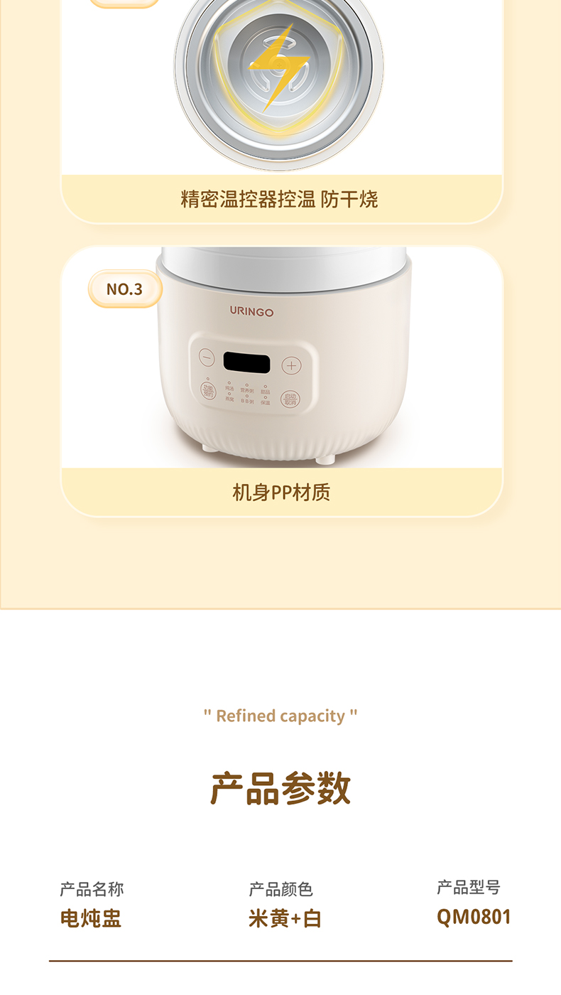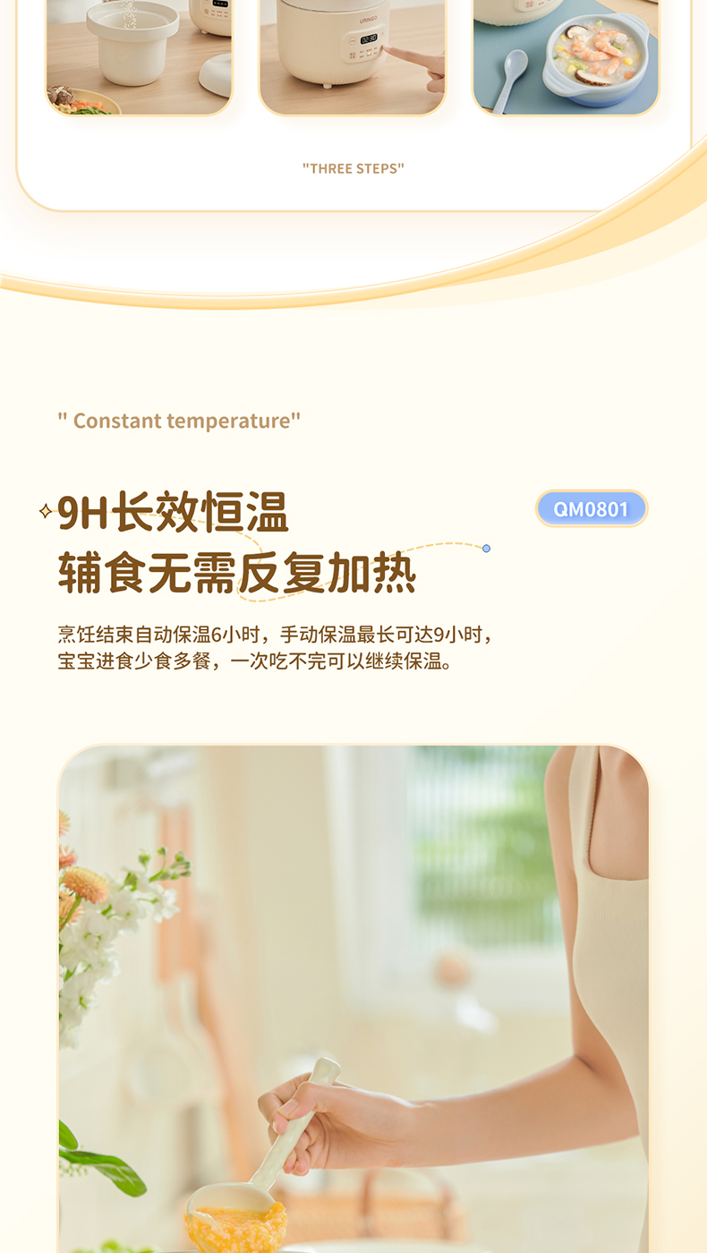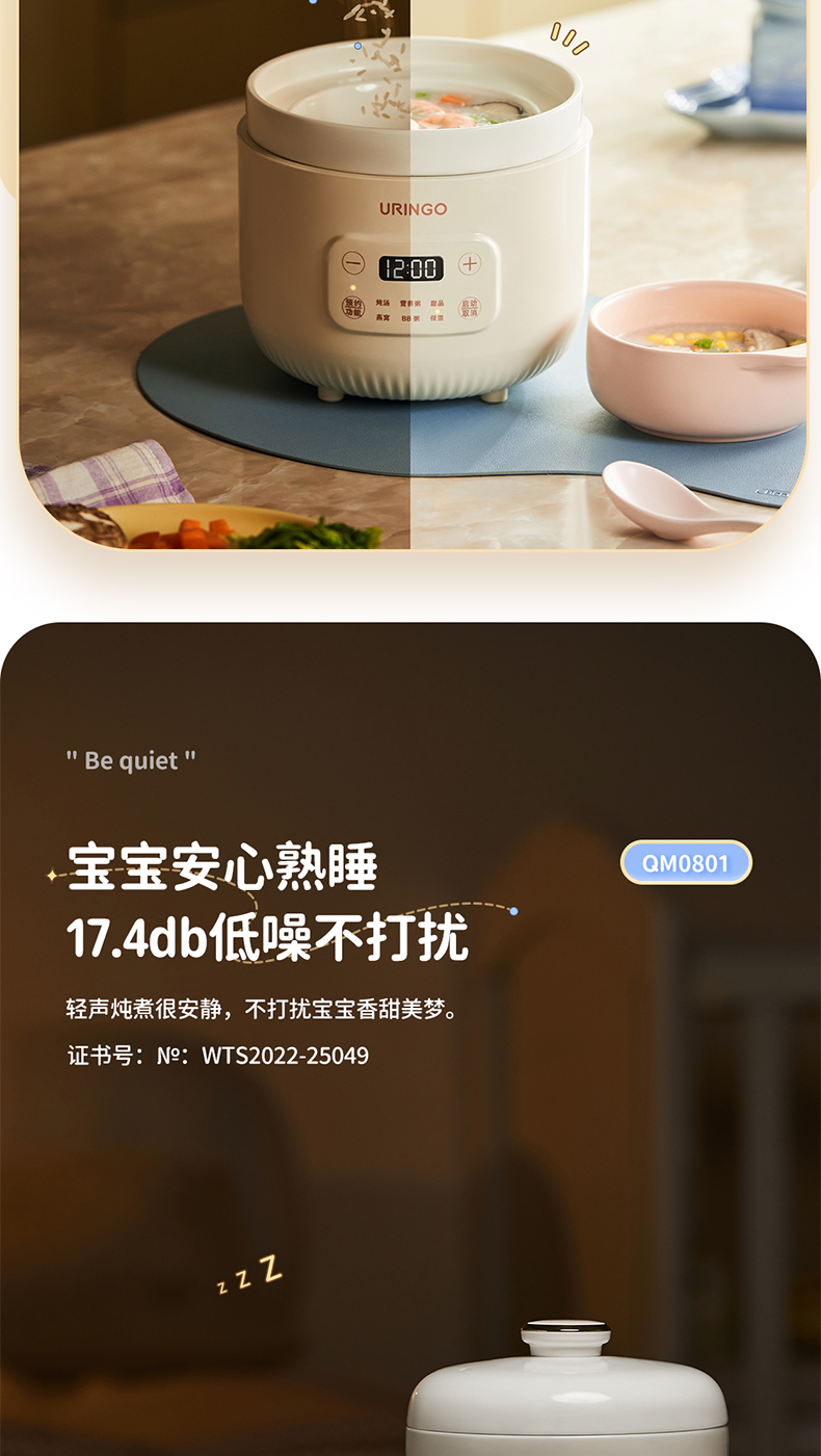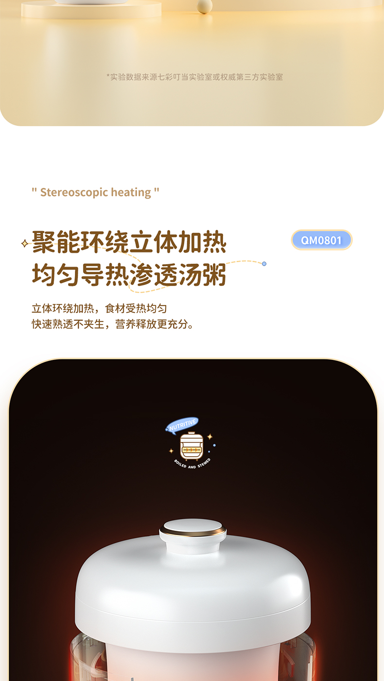 【宝宝专用电炖锅】七彩叮当电炖盅QM0801 6大预设菜单 文火精炖 炖汤/营养粥/甜品燕窝/BB粥/保温 可预约