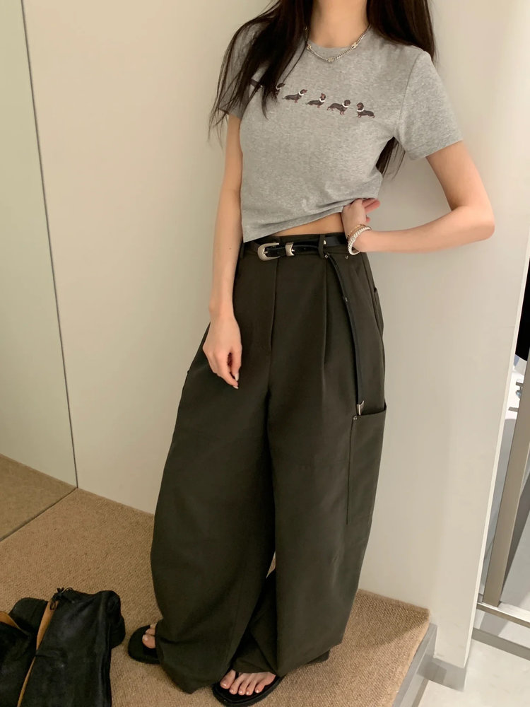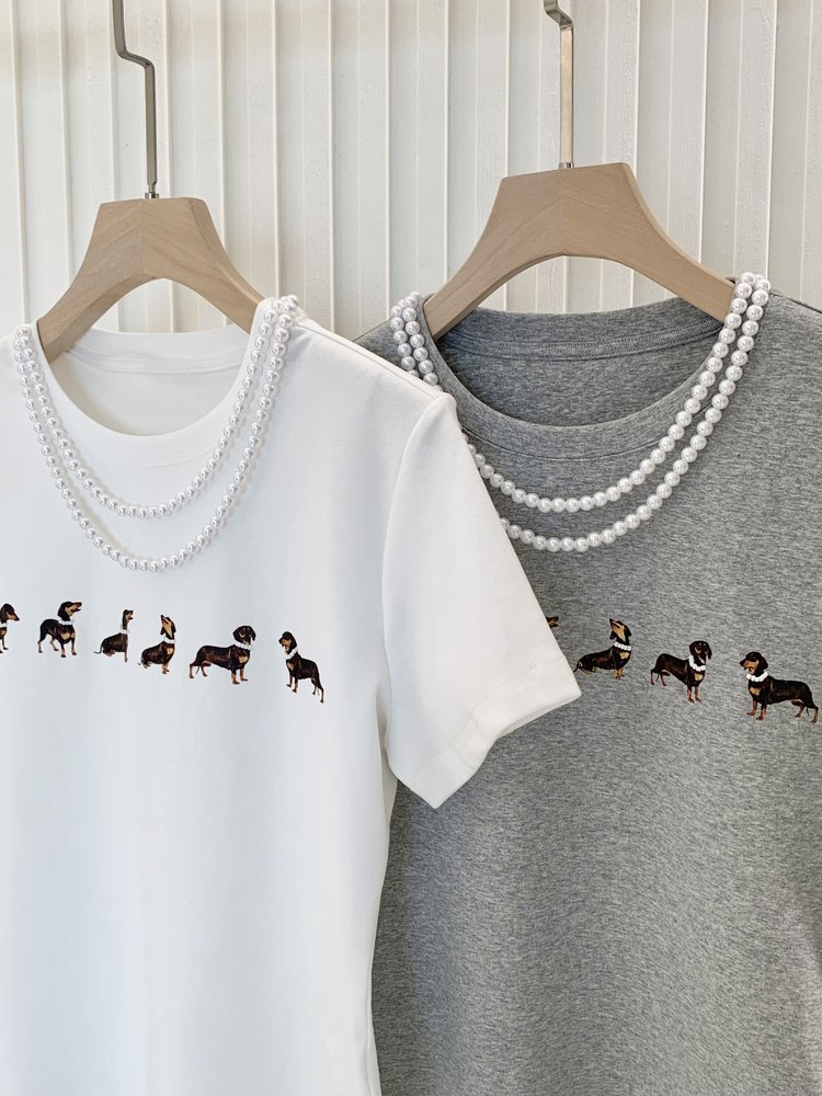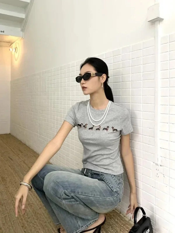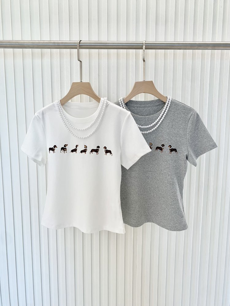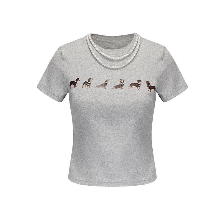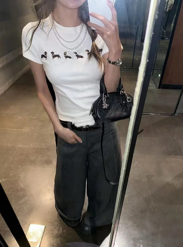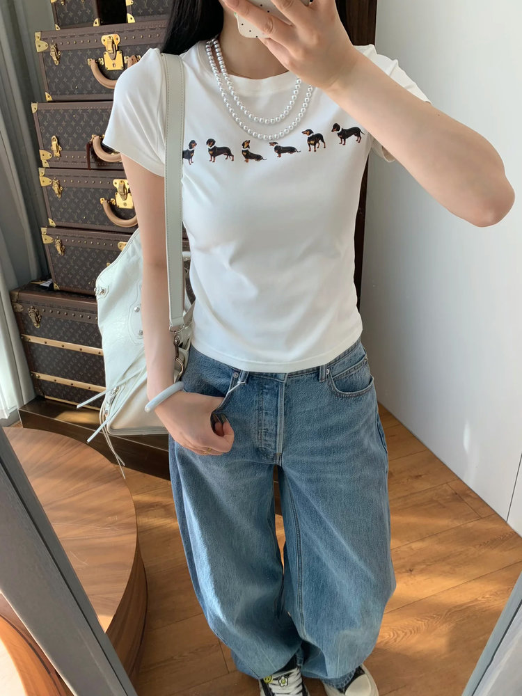 【高品质私服】【MG狗狗印花弹力短袖T恤】弹性十足却不紧绷,设计简约大方,辣妹出街必备款G1453-CC【无标出货 介意慎拍】
