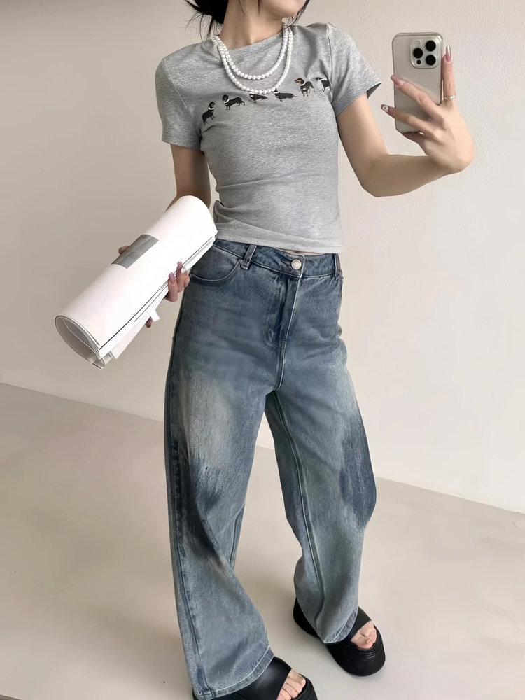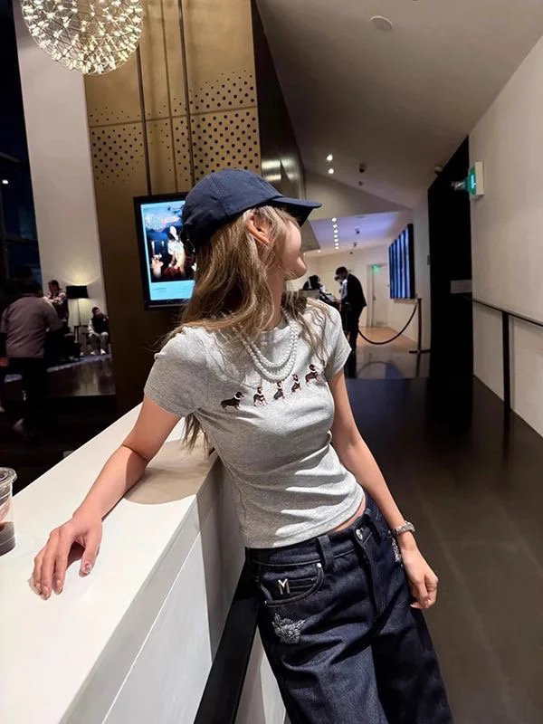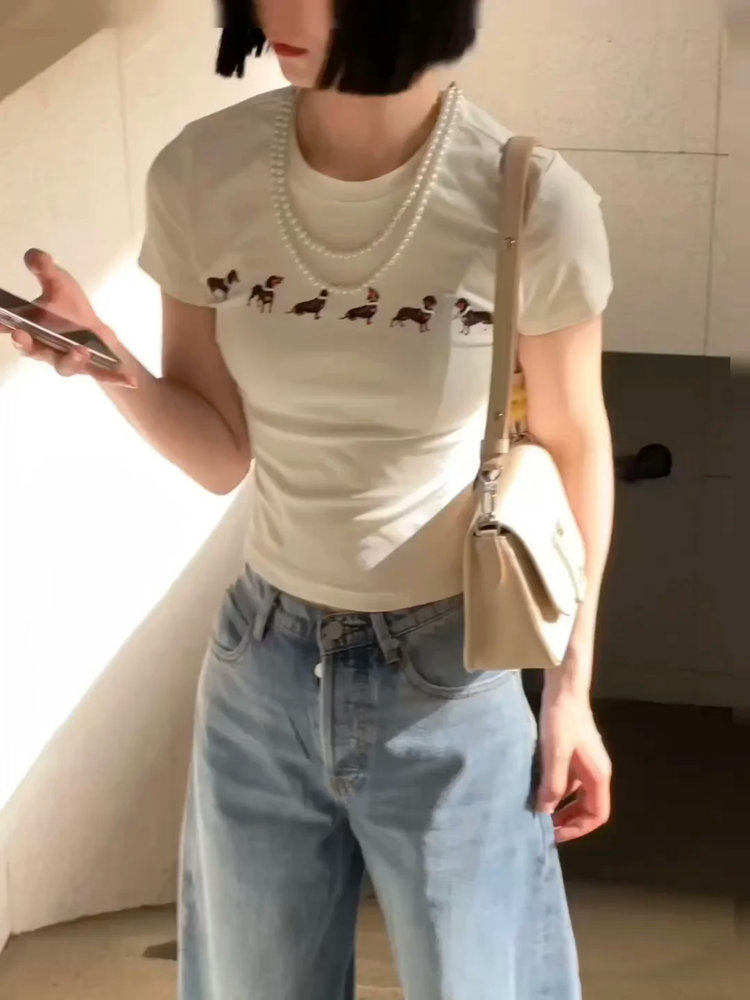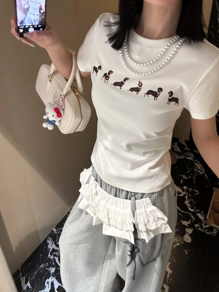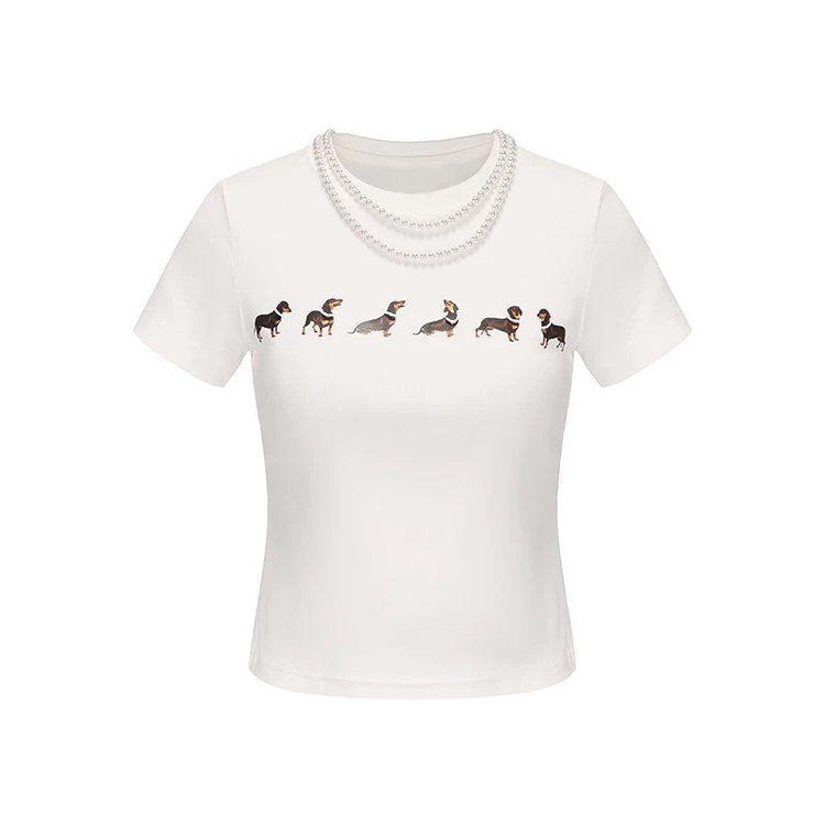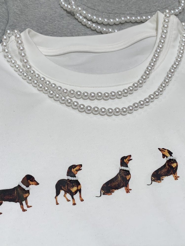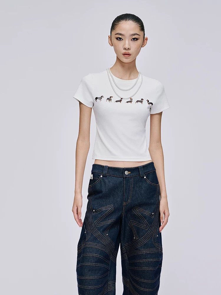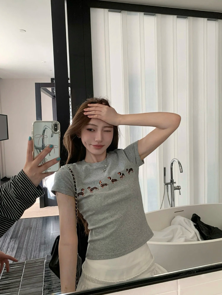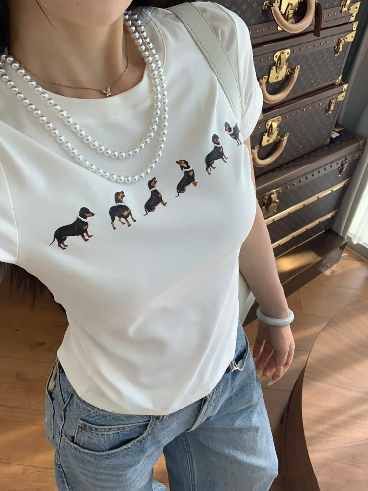 【Jennie同款】狗狗印花弹力短袖