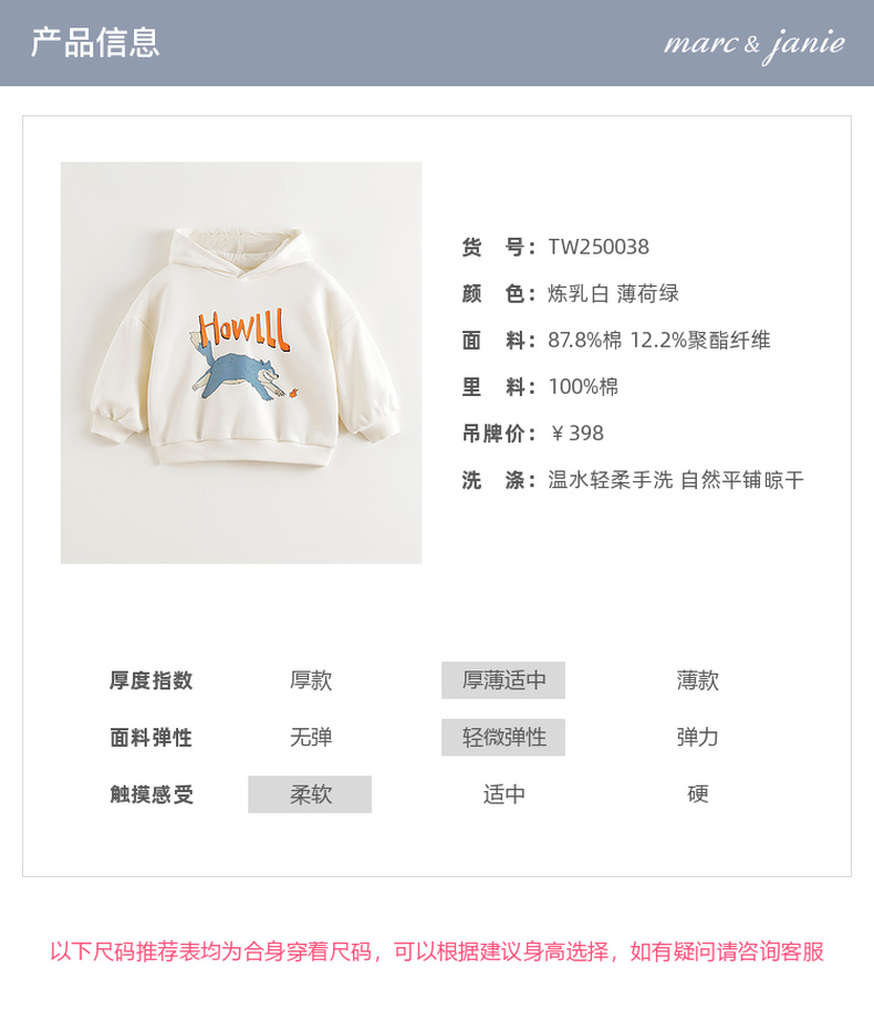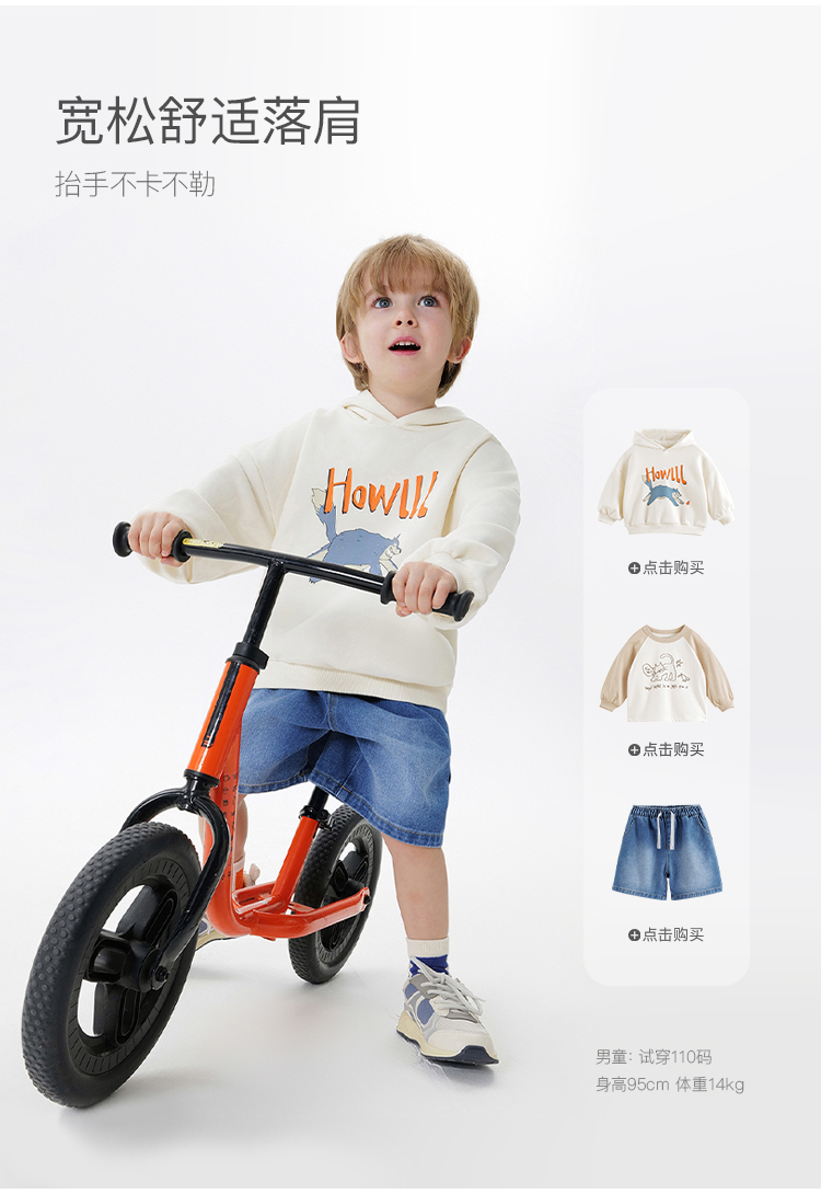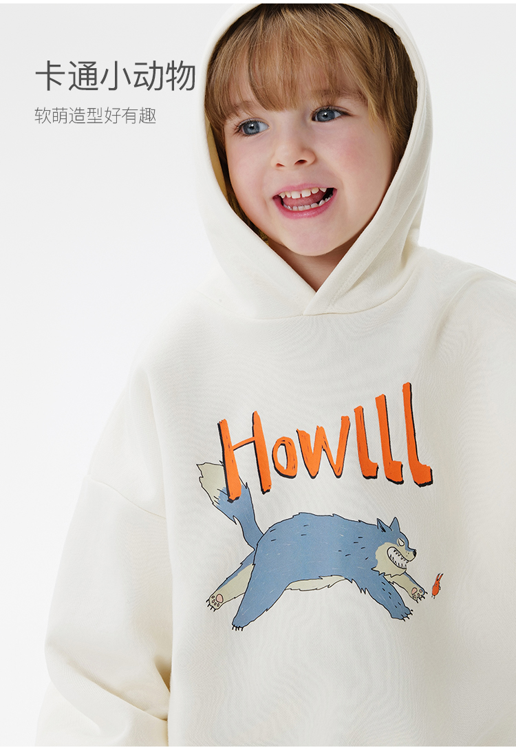 马克珍妮男童趣味动物软糯连帽卫衣宝宝上衣2025年春装新款250038