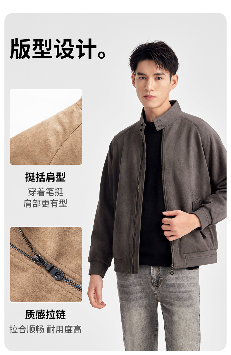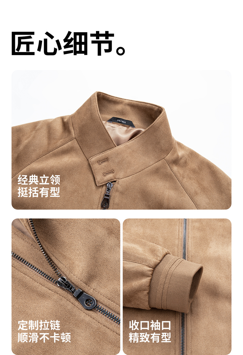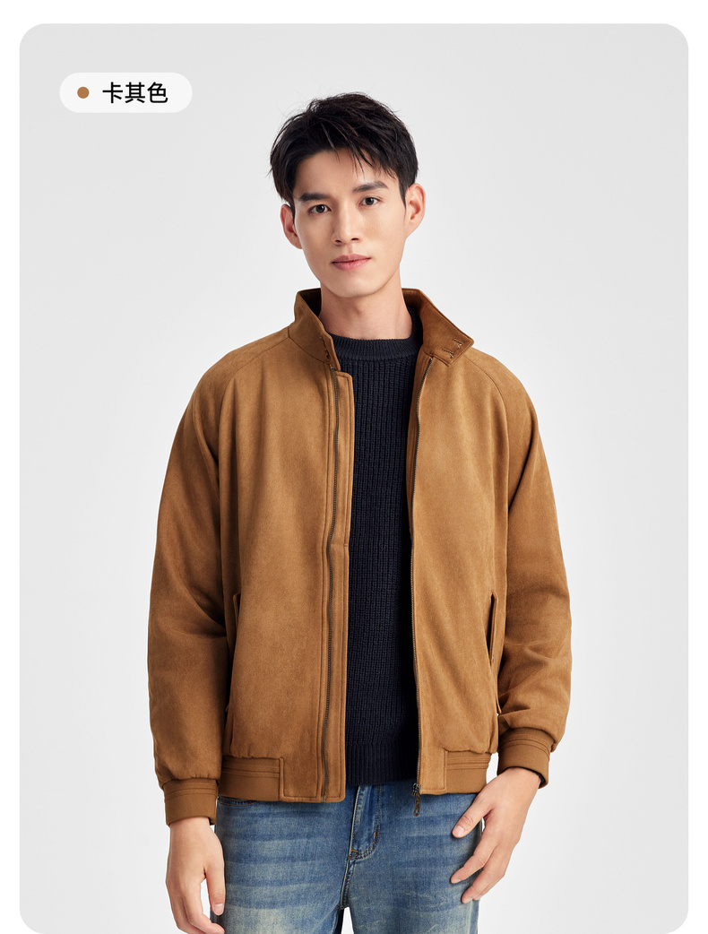 【仿麂皮】圣得西男士立领休闲夹克2025秋新款机车风百搭工装外套