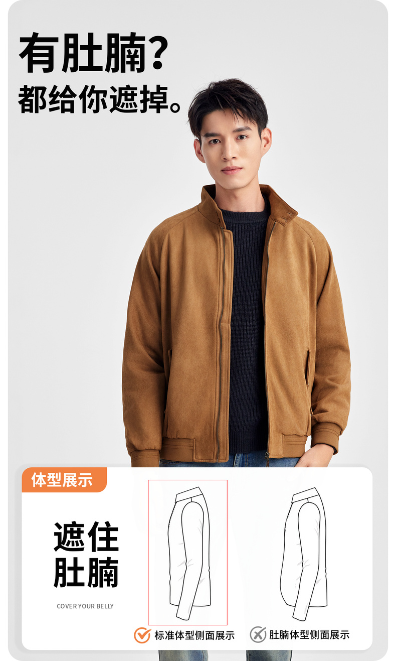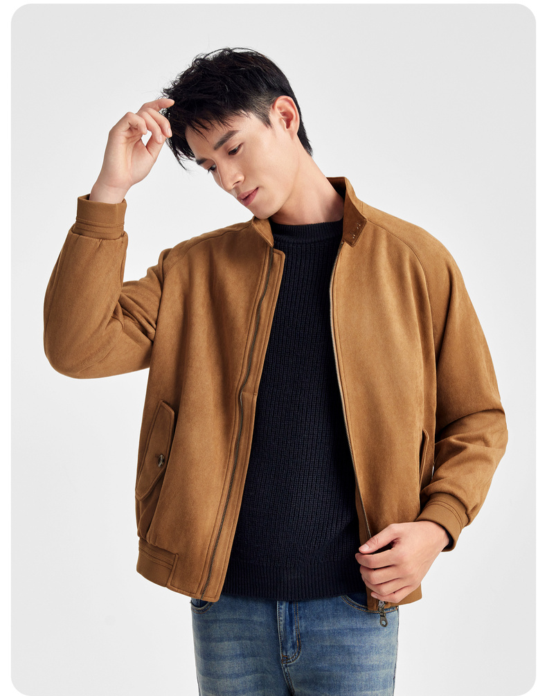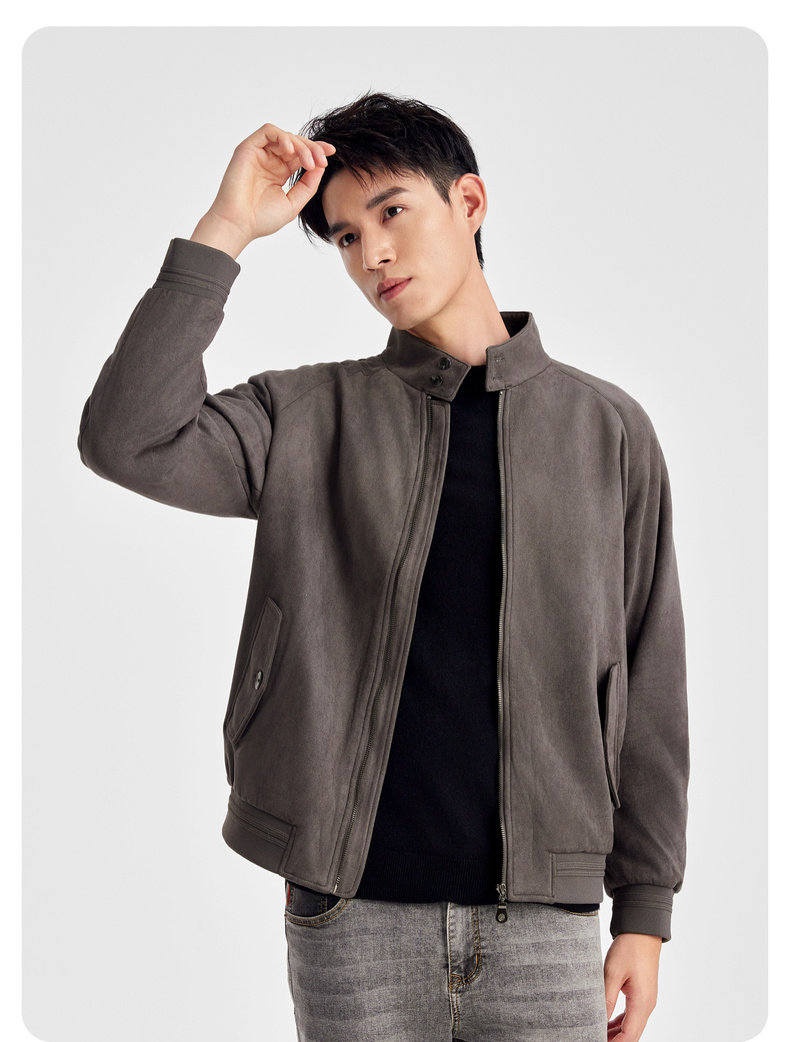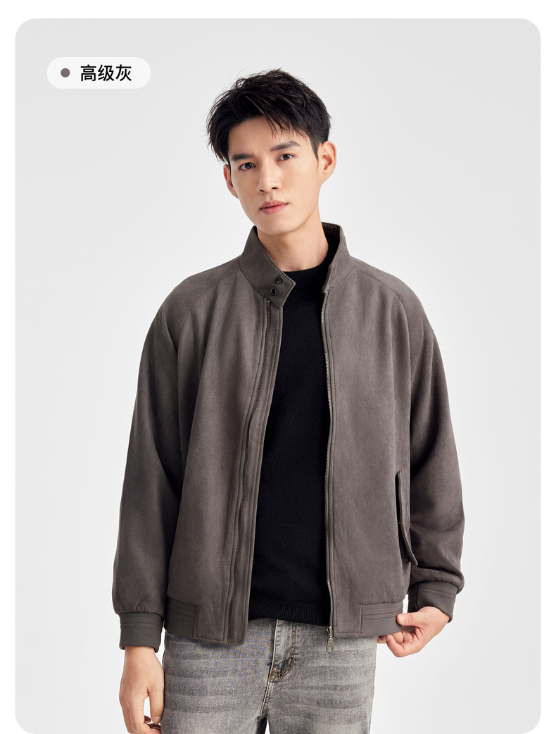【仿麂皮】圣得西男士立领休闲夹克2025秋新款机车风百搭工装外套