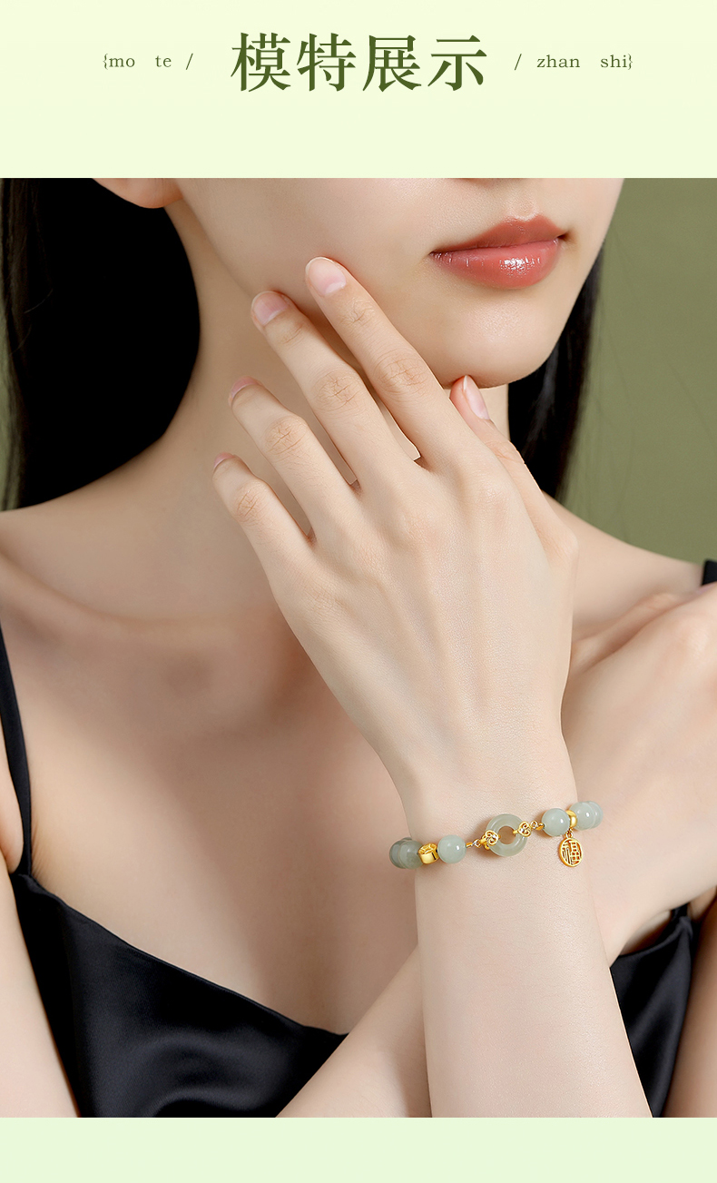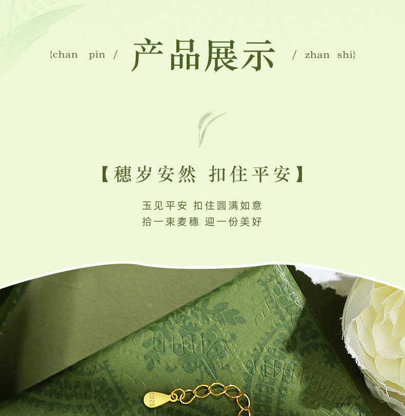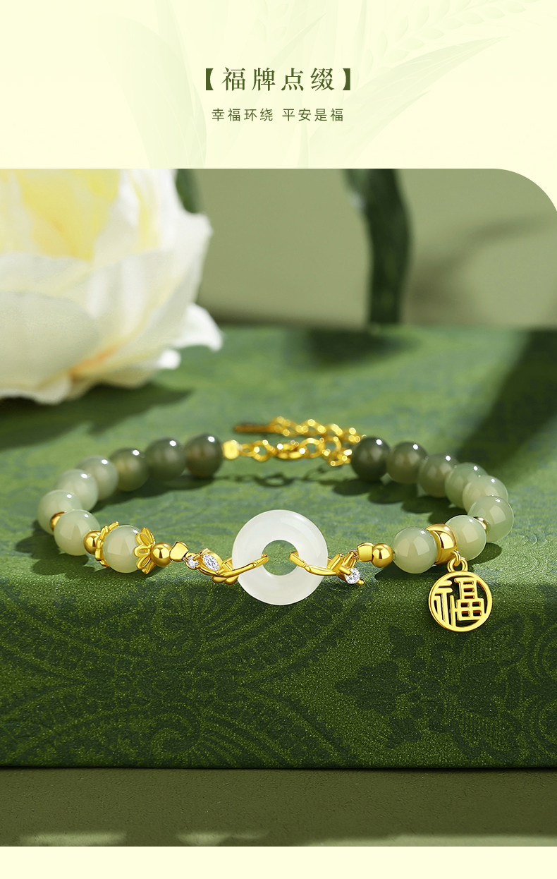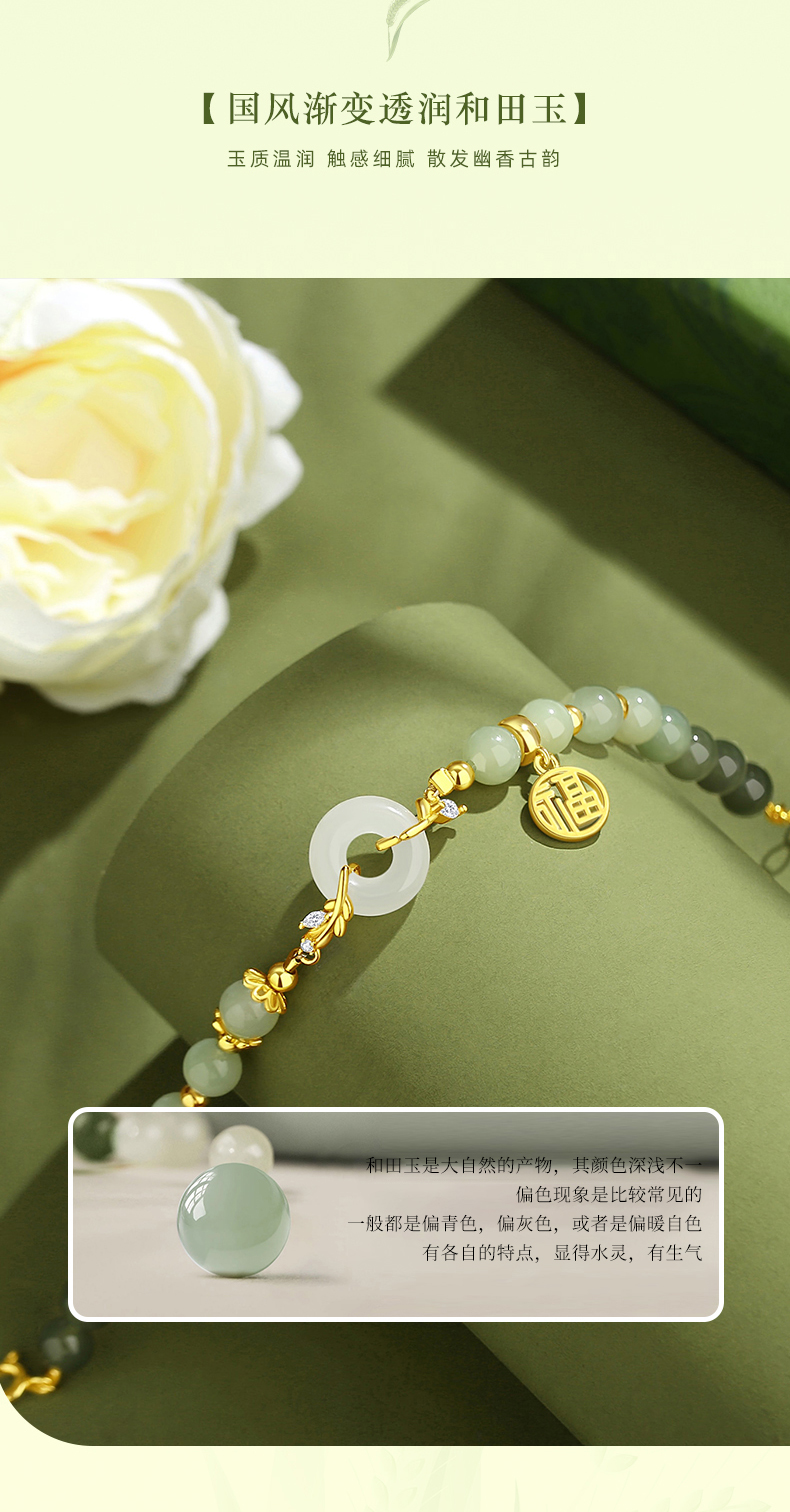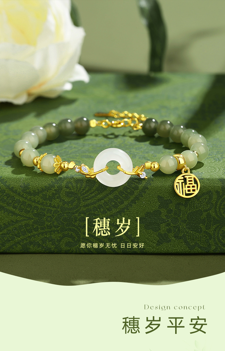 卡蒂罗KADER 【穗穗平安】新中式麦穗平安扣福牌手链小众璀璨精致设计复古拼接链 诸事顺利平安喜乐百搭转运珠 妈妈好运 和田玉手链 青白玉 女款