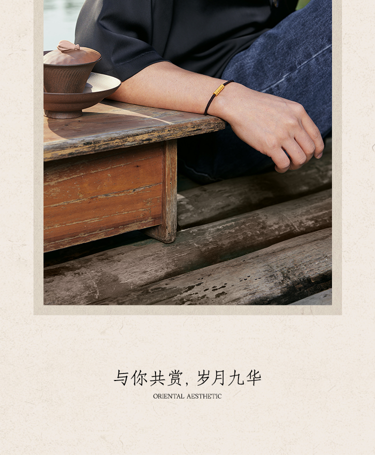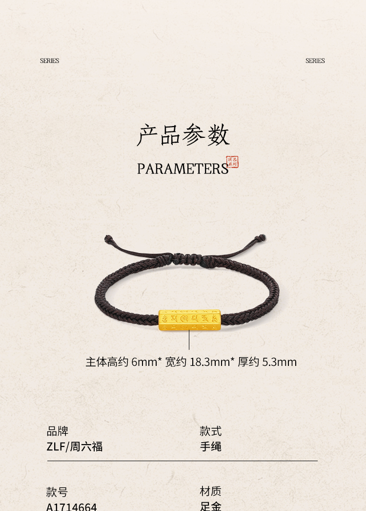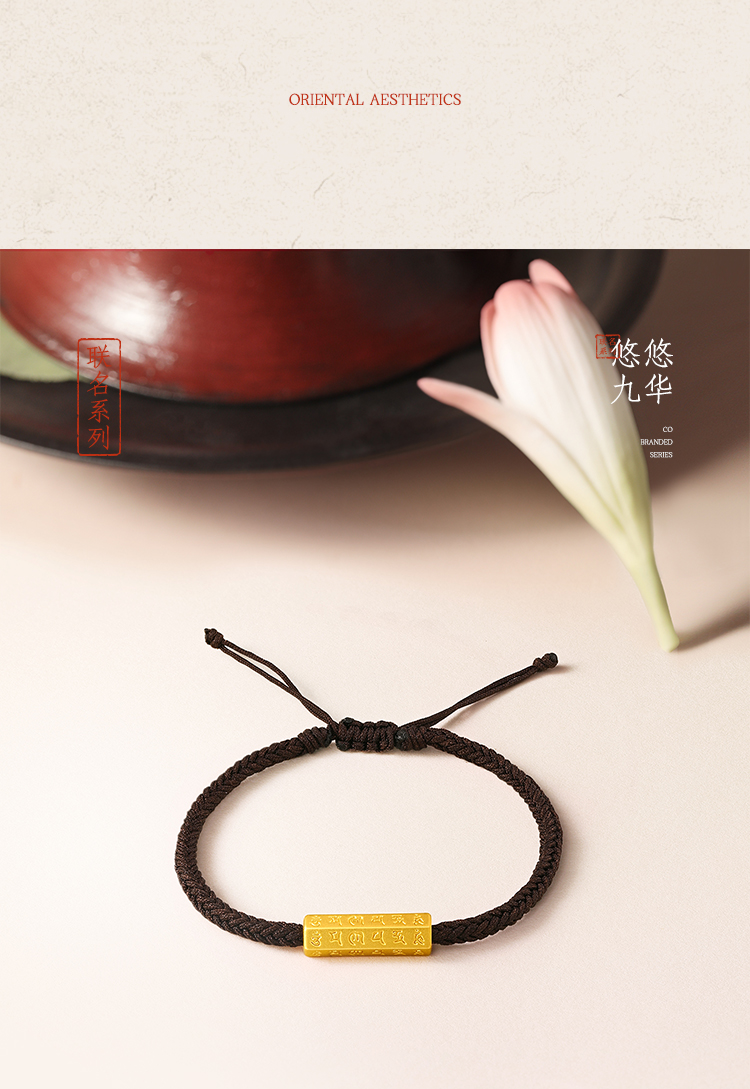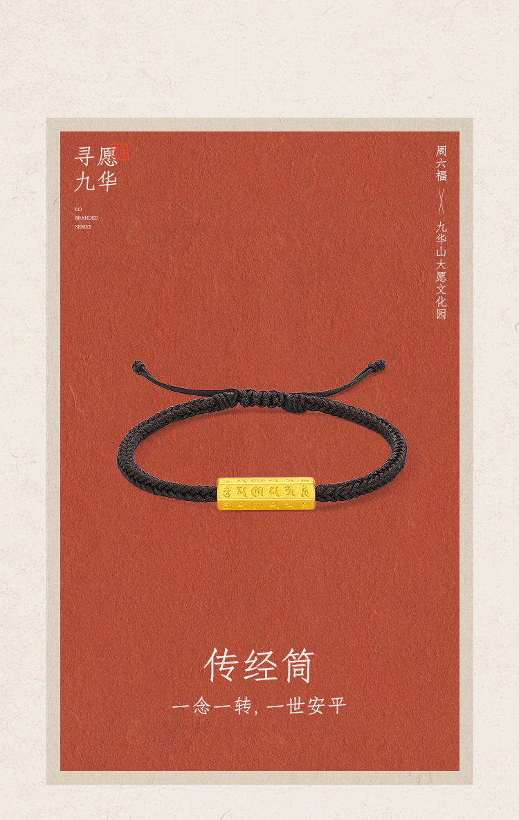 周六福黄金手绳男女5d硬金定价九华山联名传经筒足金六字真言平安