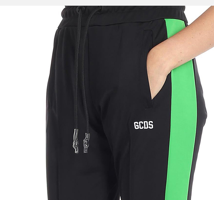 GCDS 男士字母徽标刺绣棉质休闲运动裤 黑色 ASS18M030055 NERO