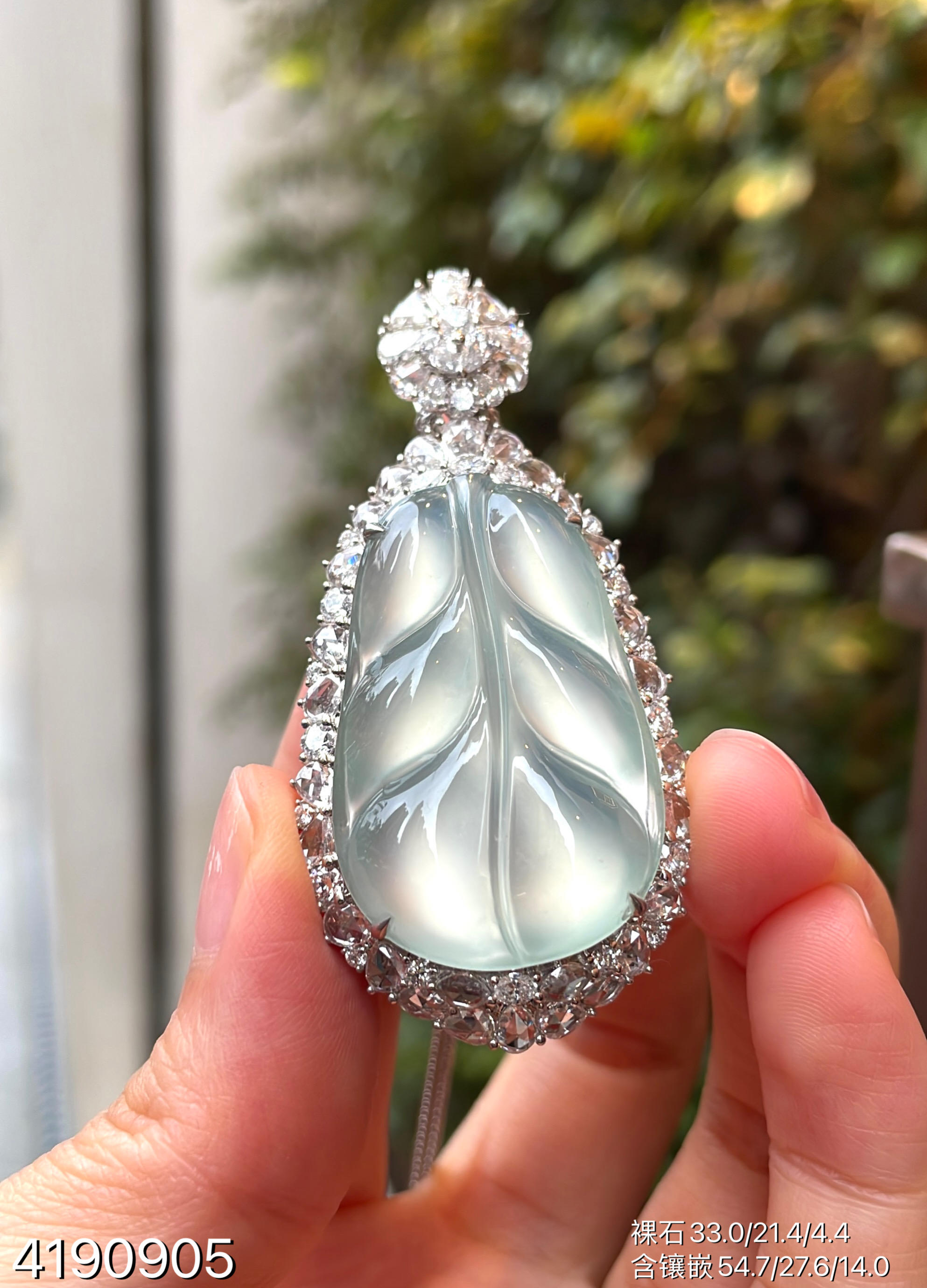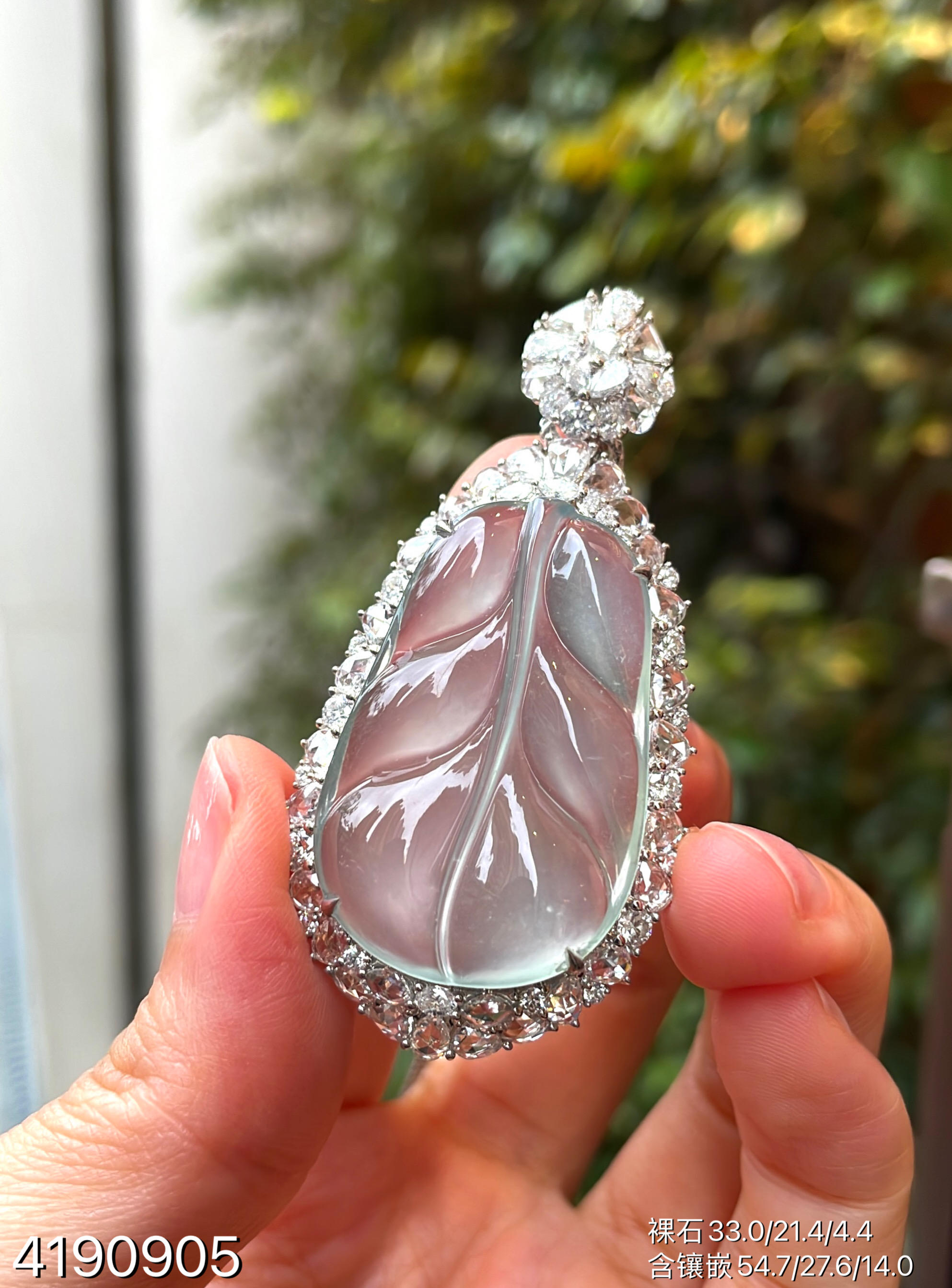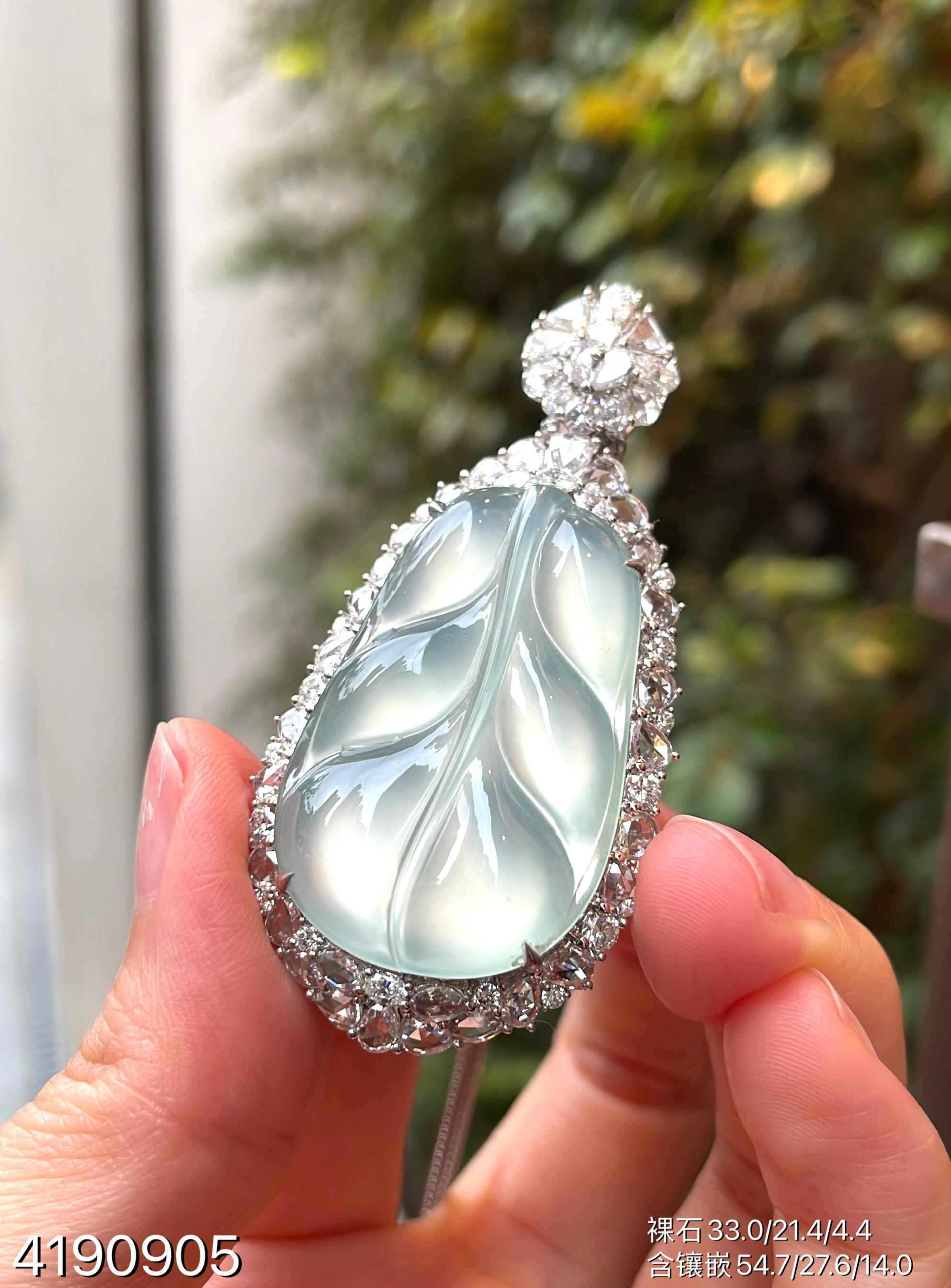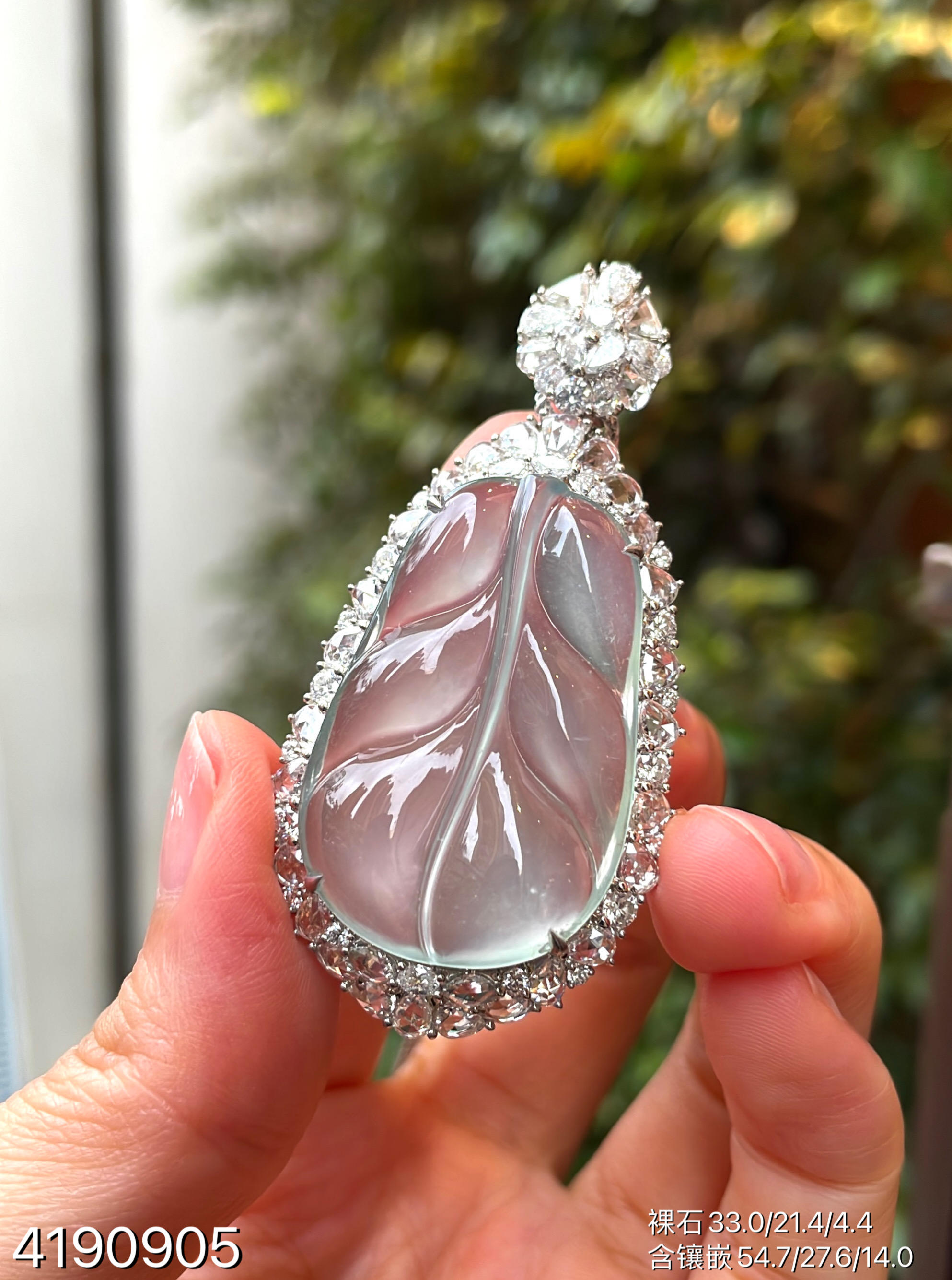 玻璃种叶子吊坠【4190905】具体价格微信咨询
