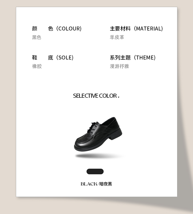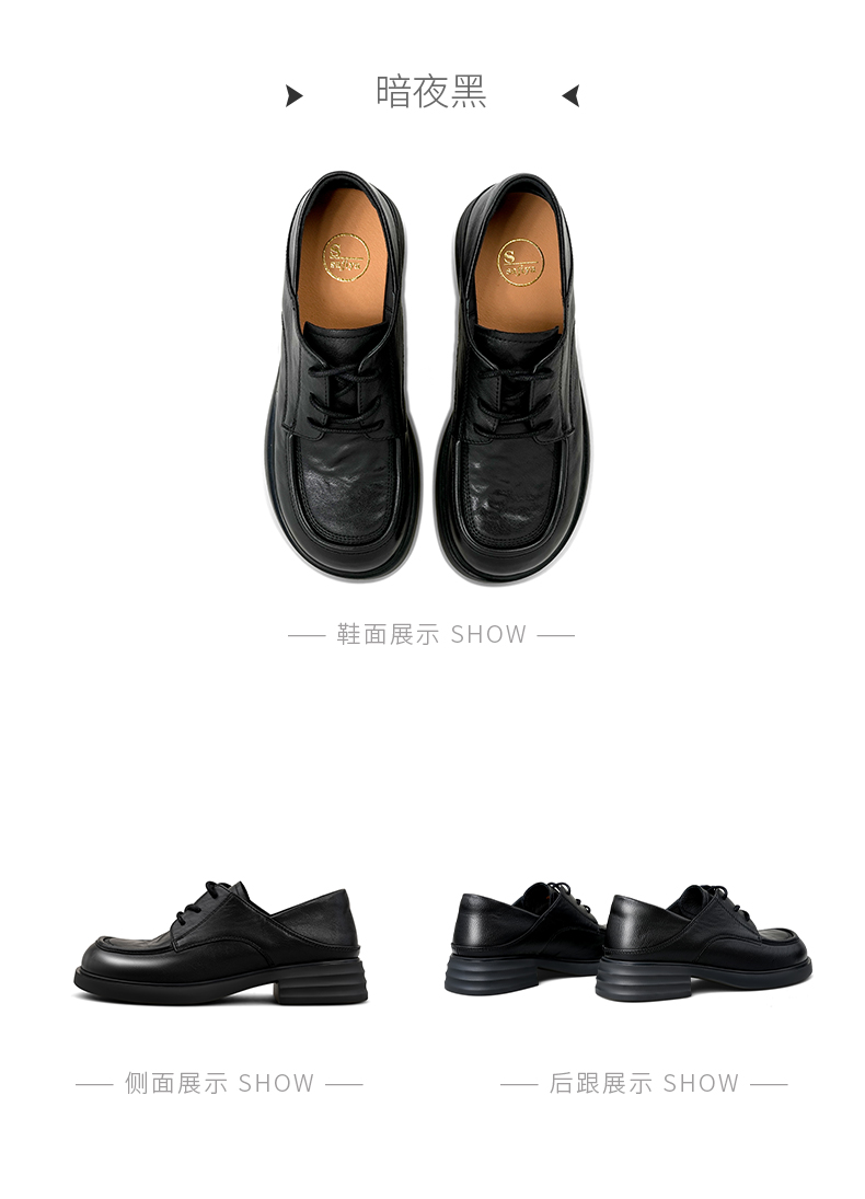 Safiya/索菲娅2025英伦风羊皮系带休闲百搭圆头粗跟深口小皮鞋SFD3112146