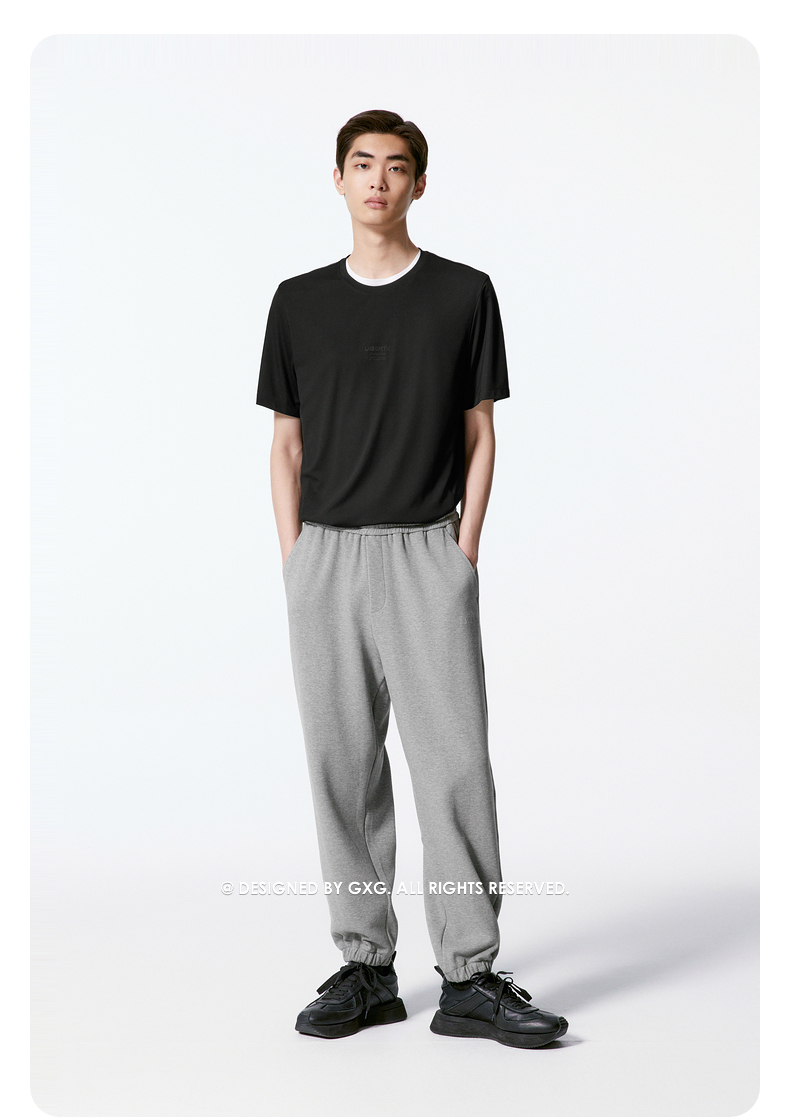 GXG男装 可水洗黑色针织休闲裤透气运动裤 夏季热卖休闲束脚裤G24X022032