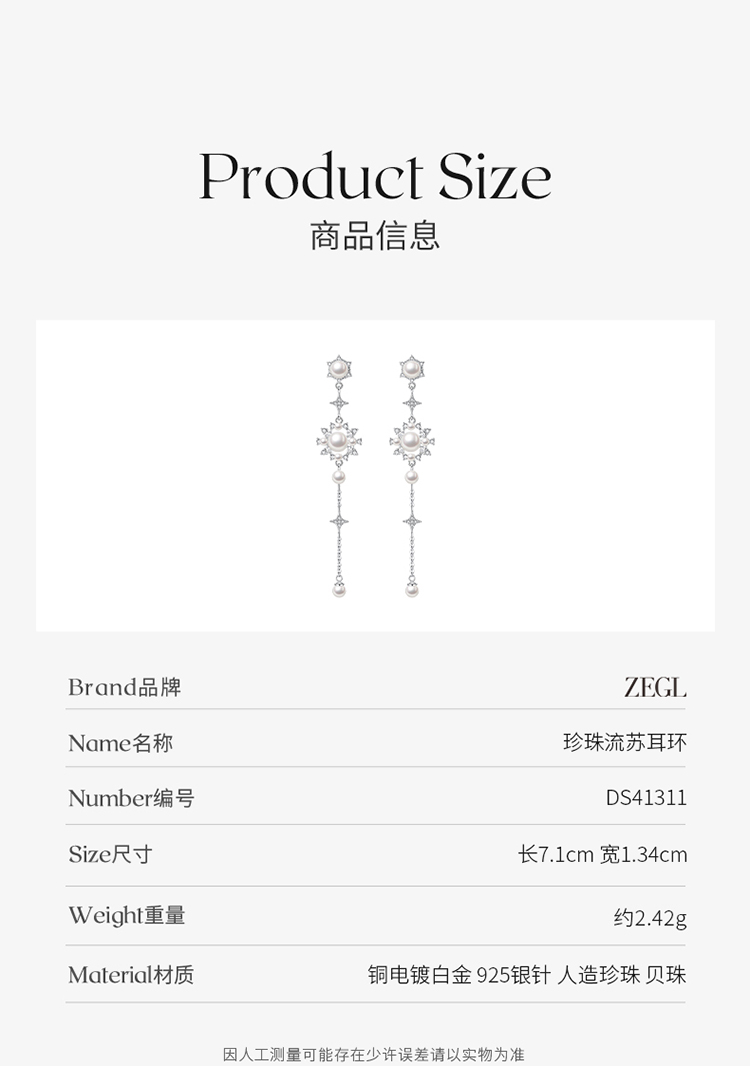 ZEGL设计师蕾丝系列长款流苏耳环女轻奢高级感人造珍珠耳钉耳饰品