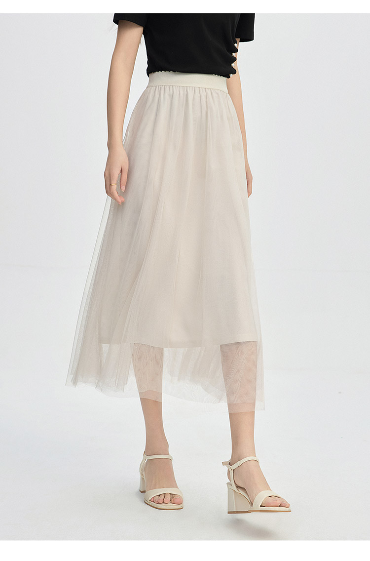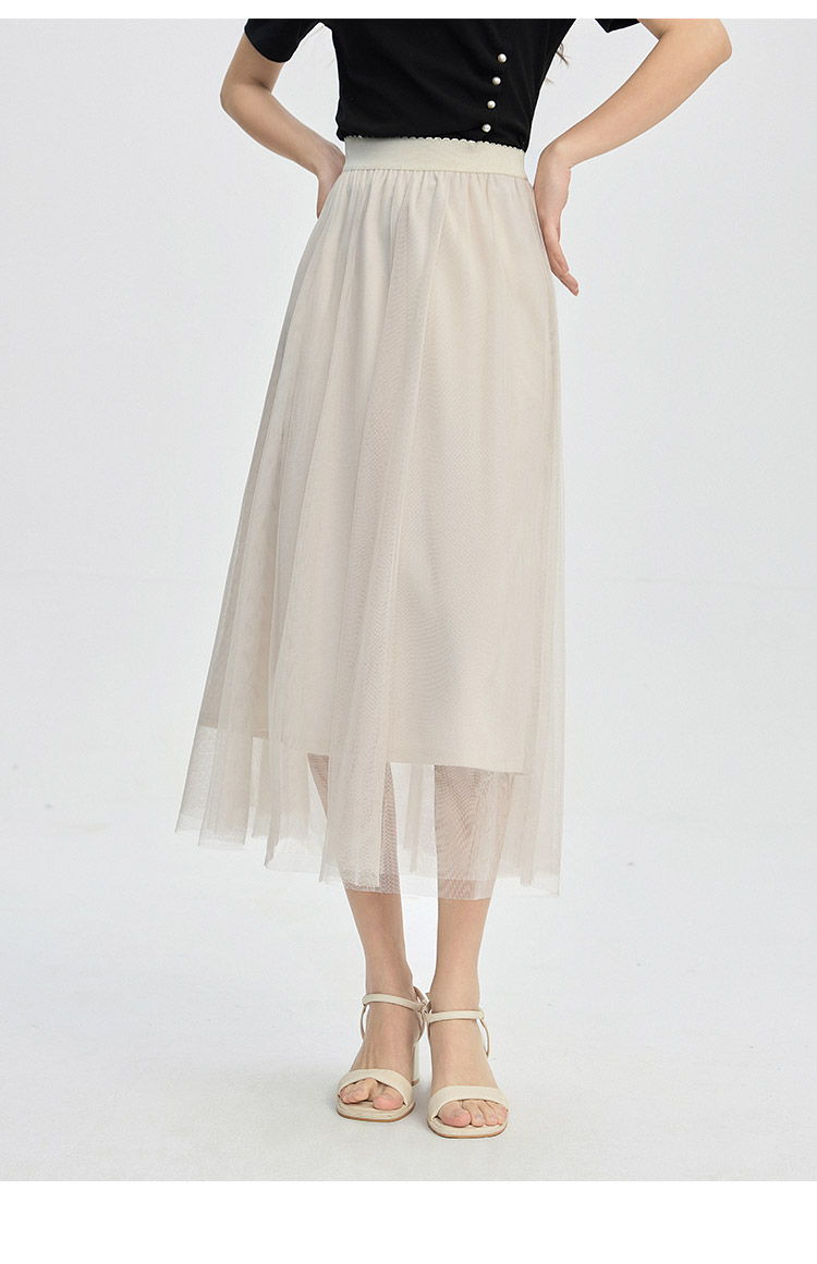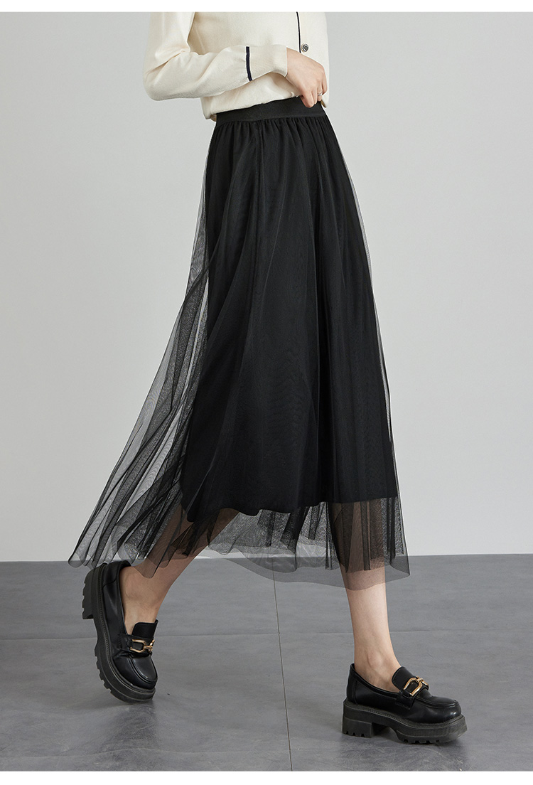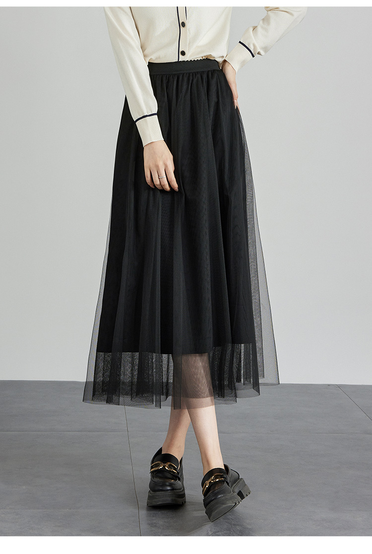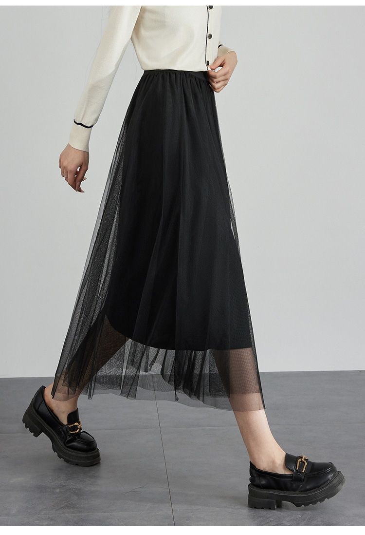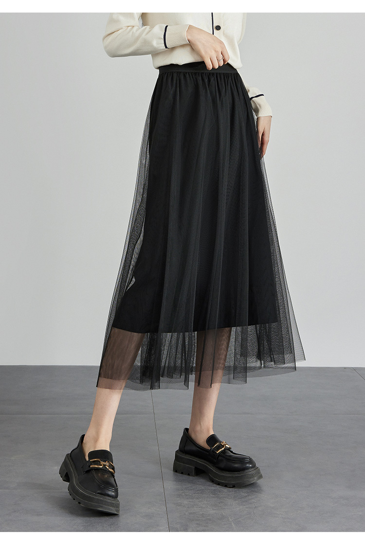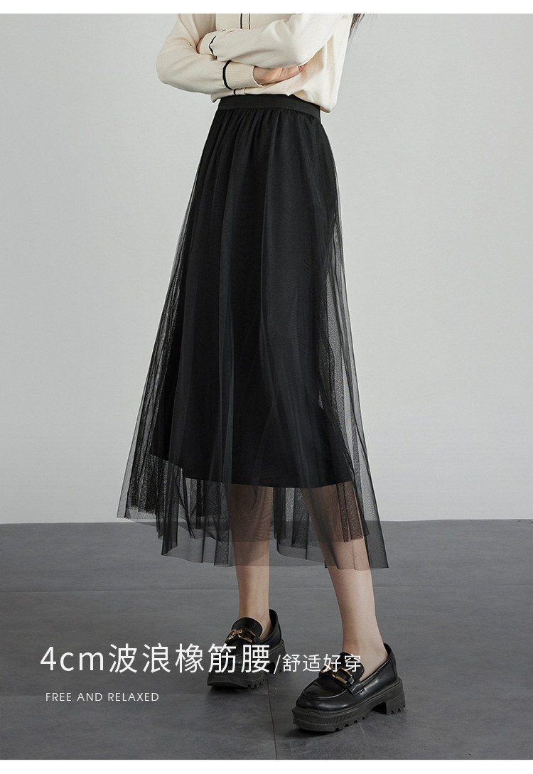 【专属特价】熙世界法式复古网纱半身裙女2025秋装新款高腰显瘦仙气纱裙a字裙