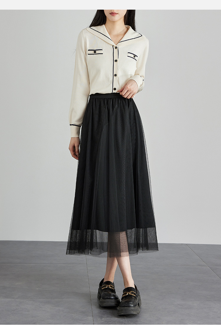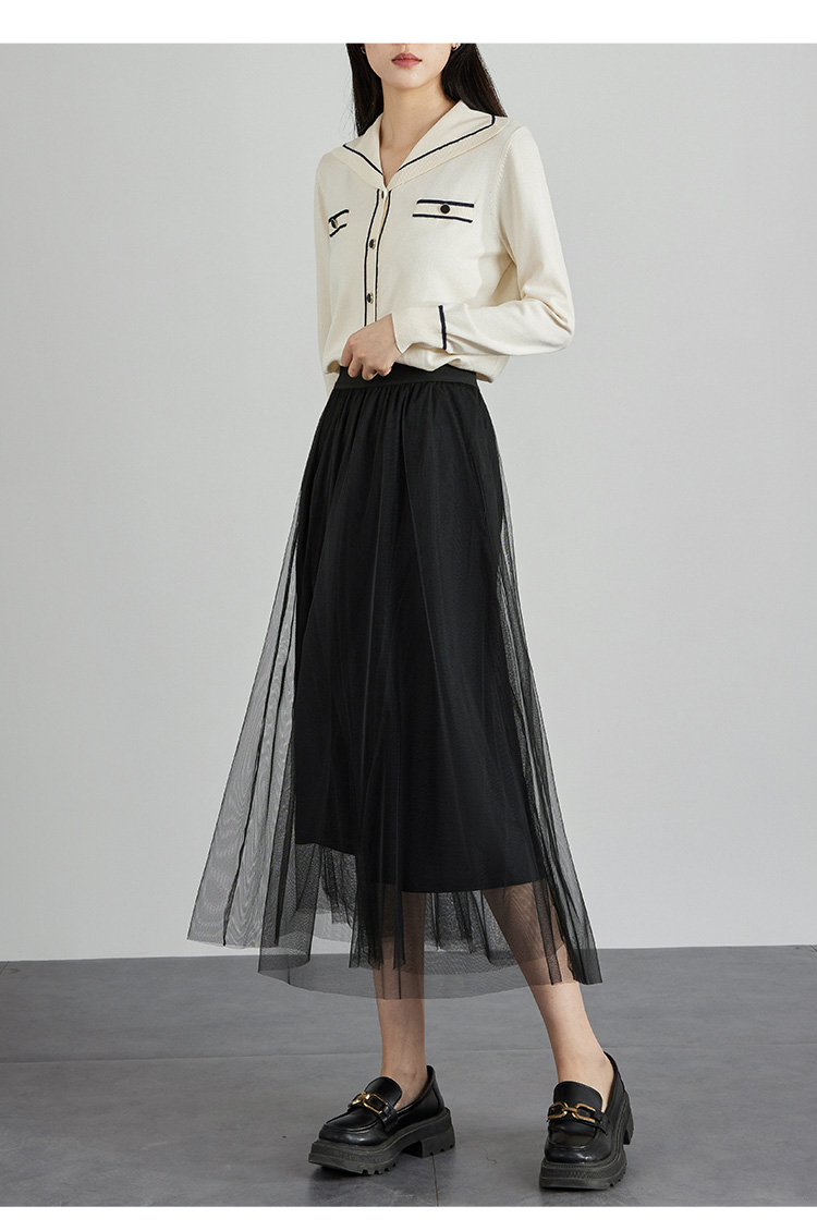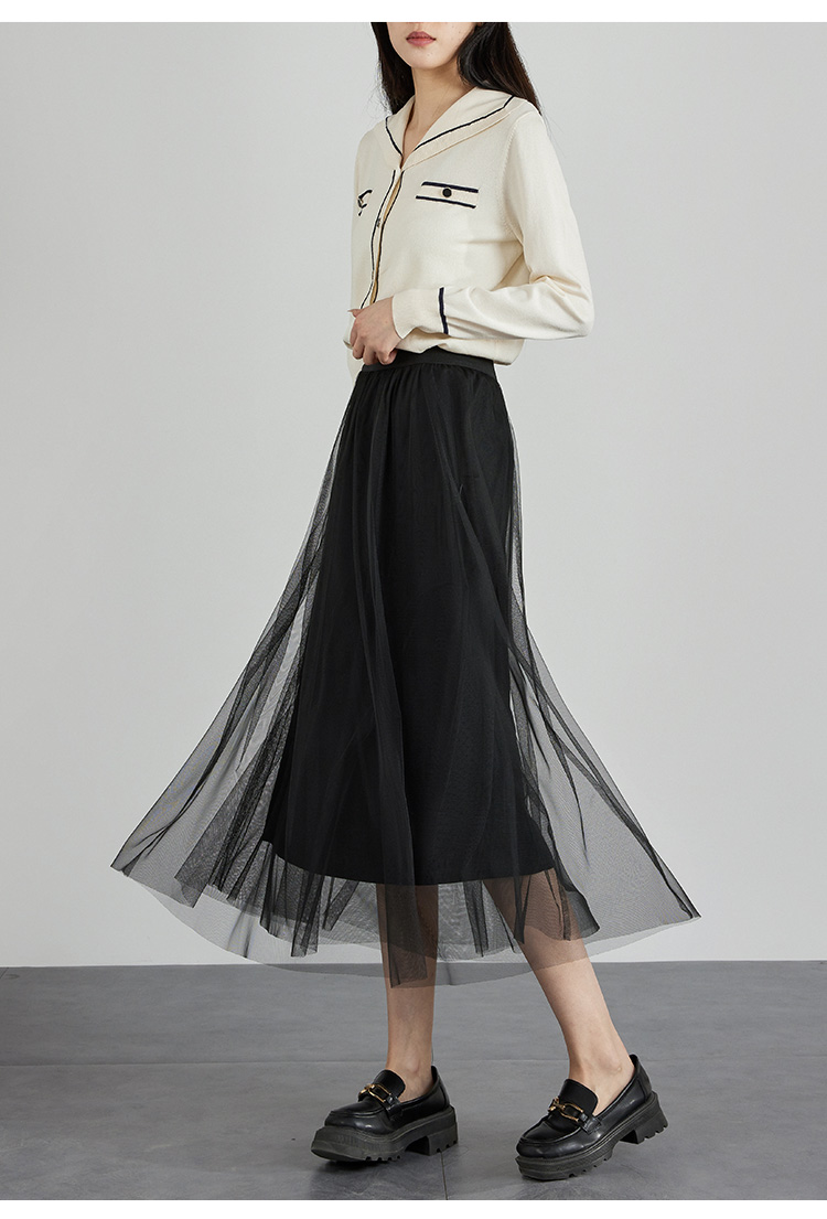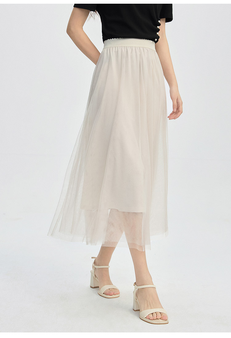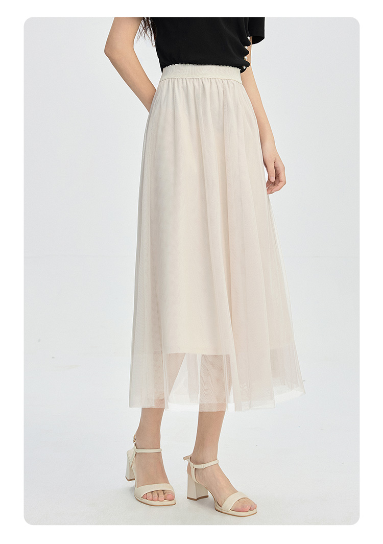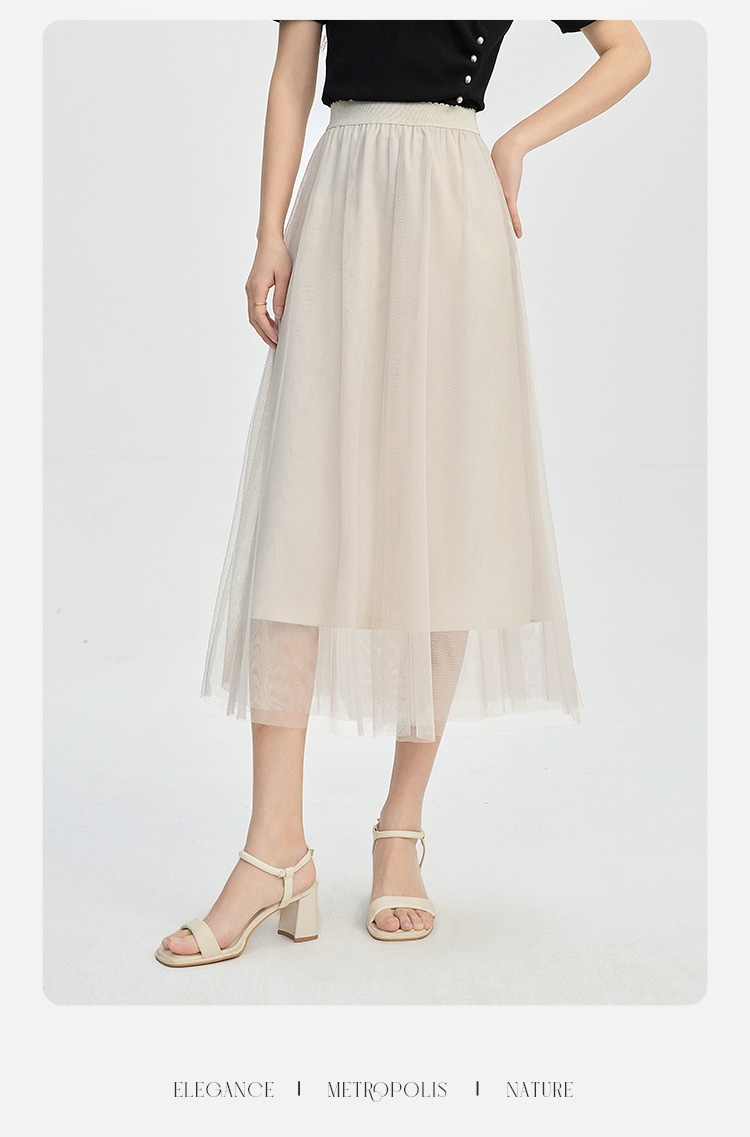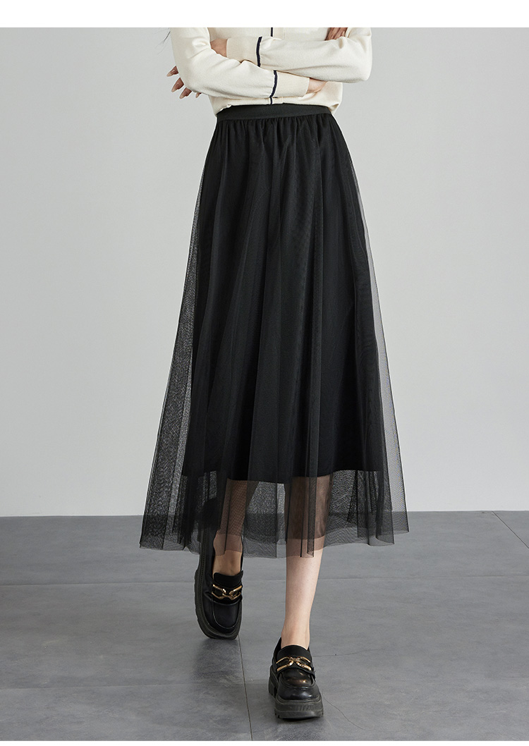 【专属特价】熙世界法式复古网纱半身裙女2025秋装新款高腰显瘦仙气纱裙a字裙