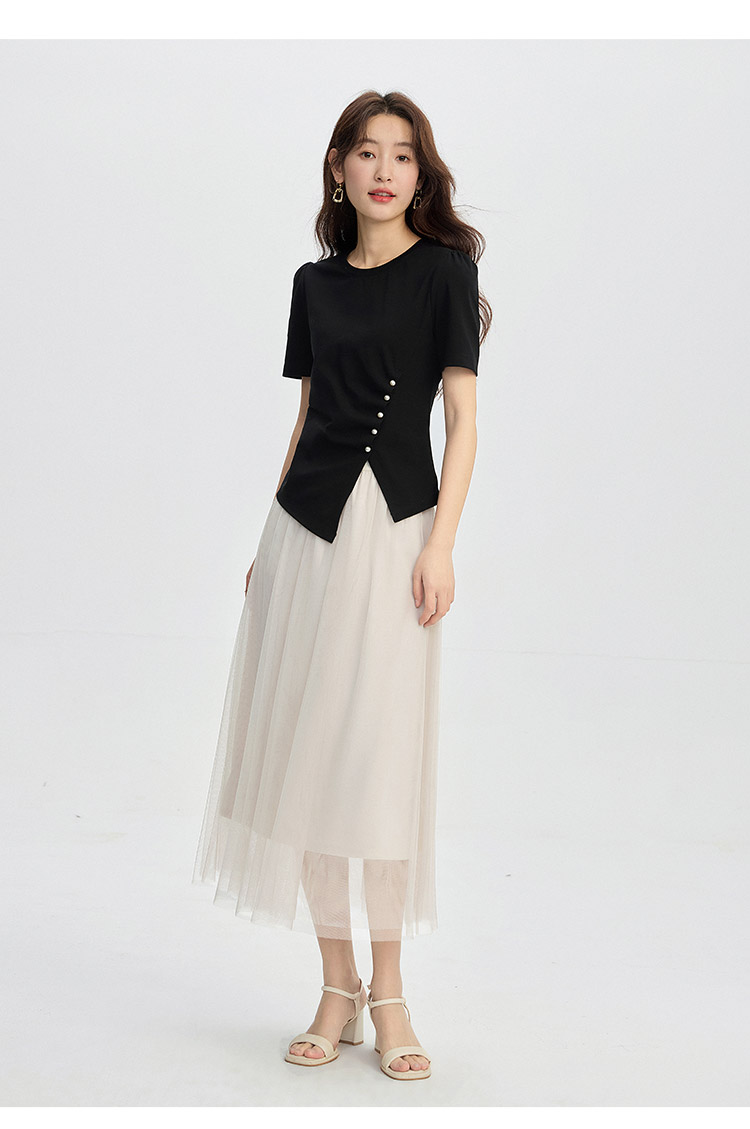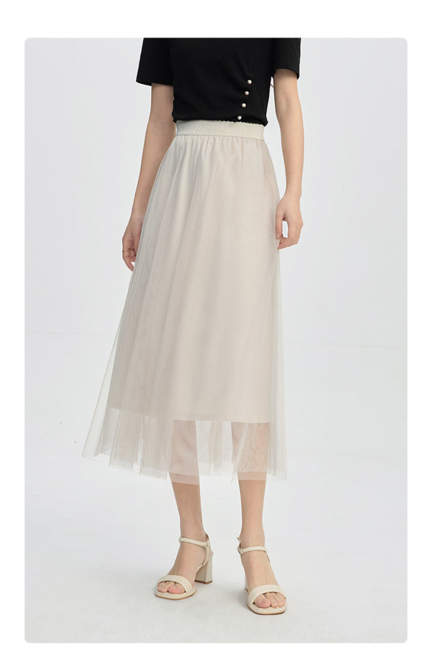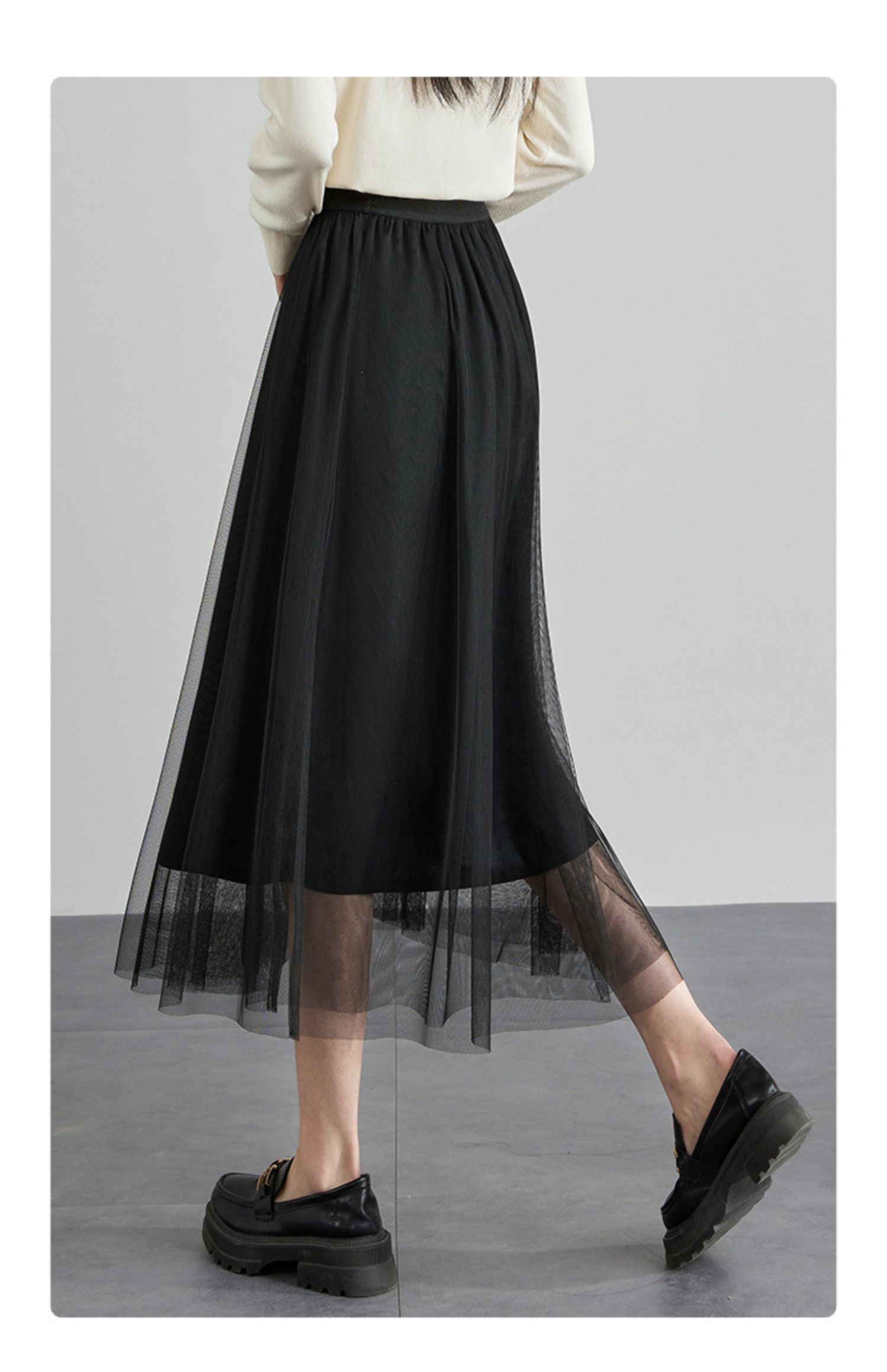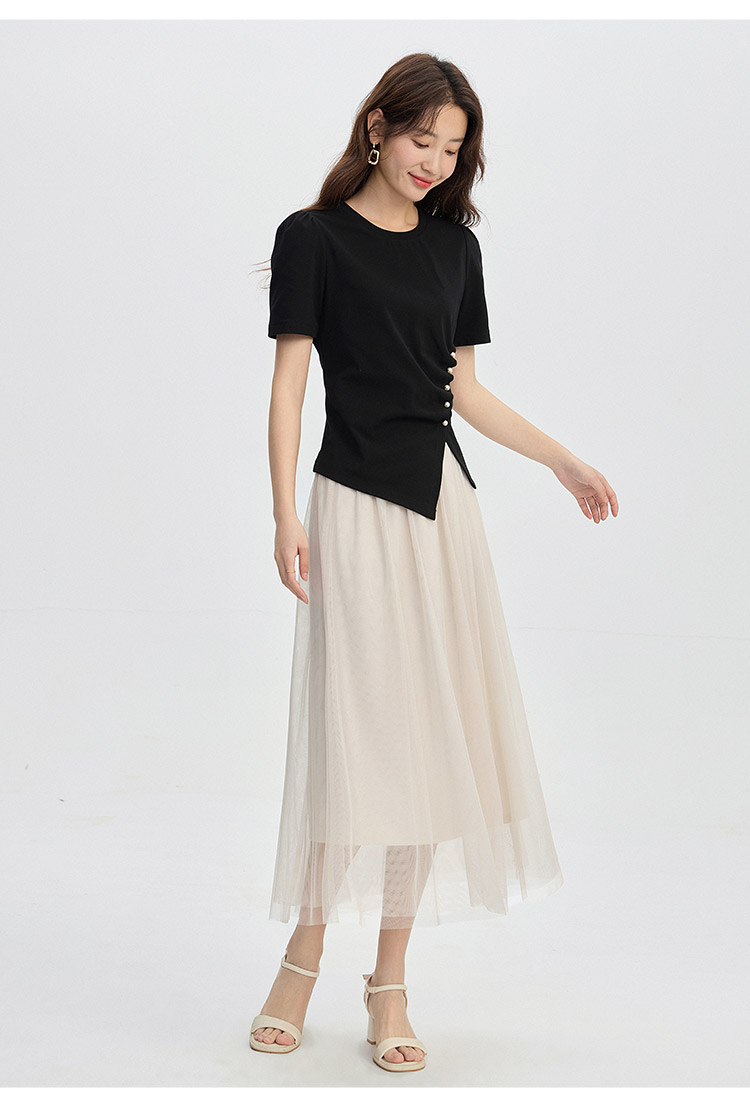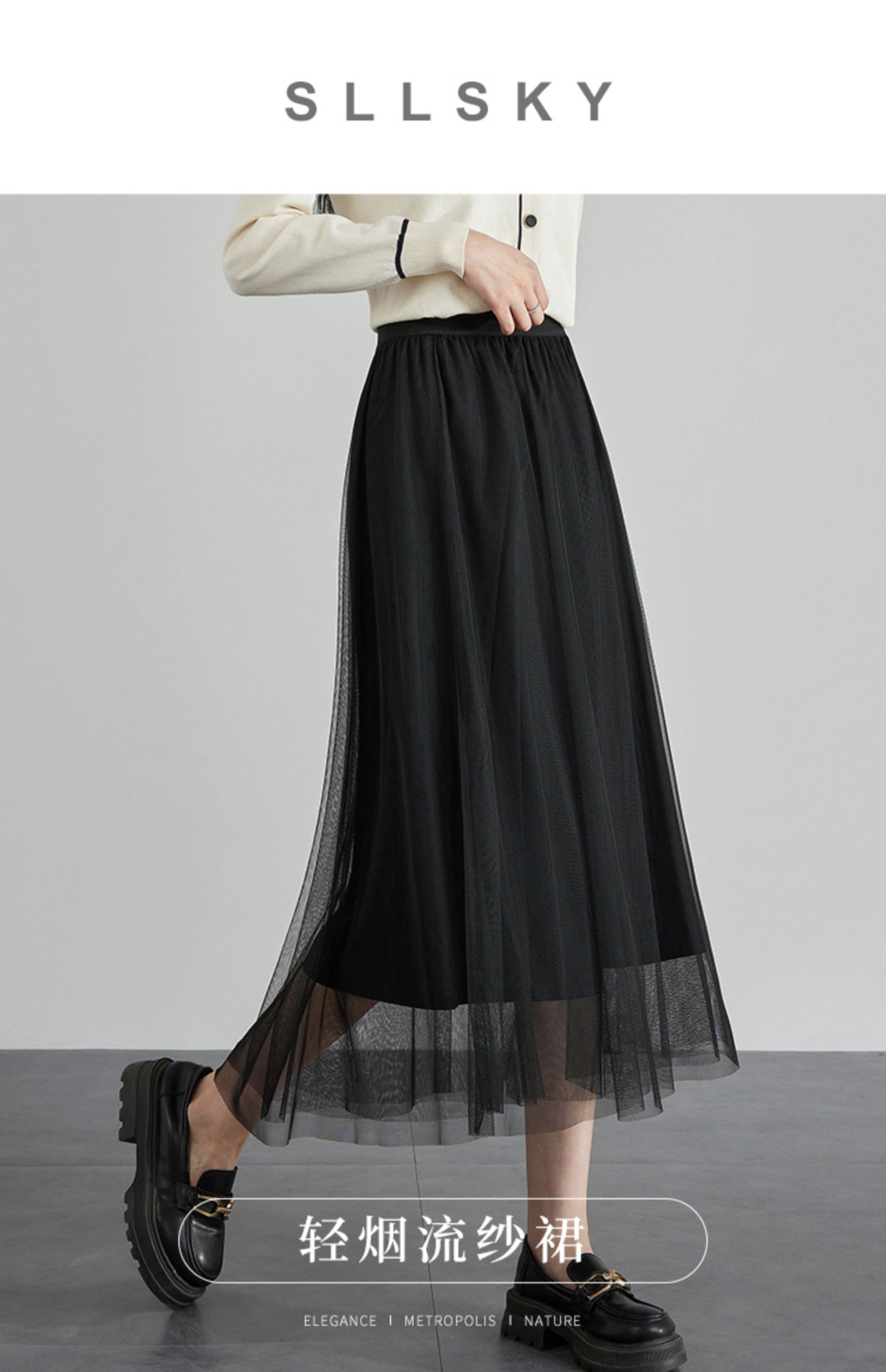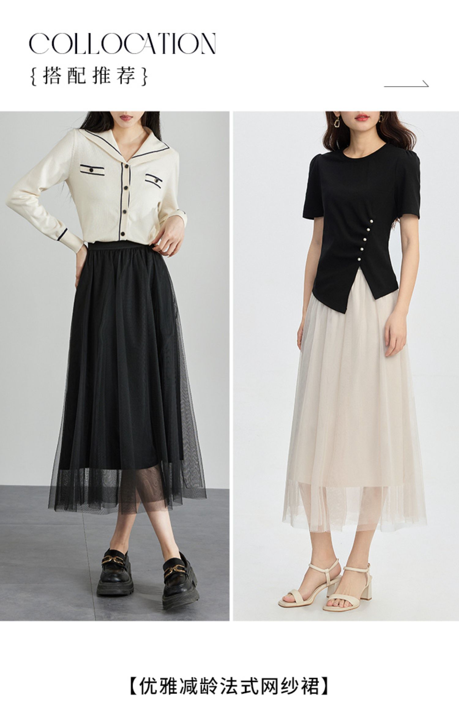 【专属特价】熙世界法式复古网纱半身裙女2025秋装新款高腰显瘦仙气纱裙a字裙