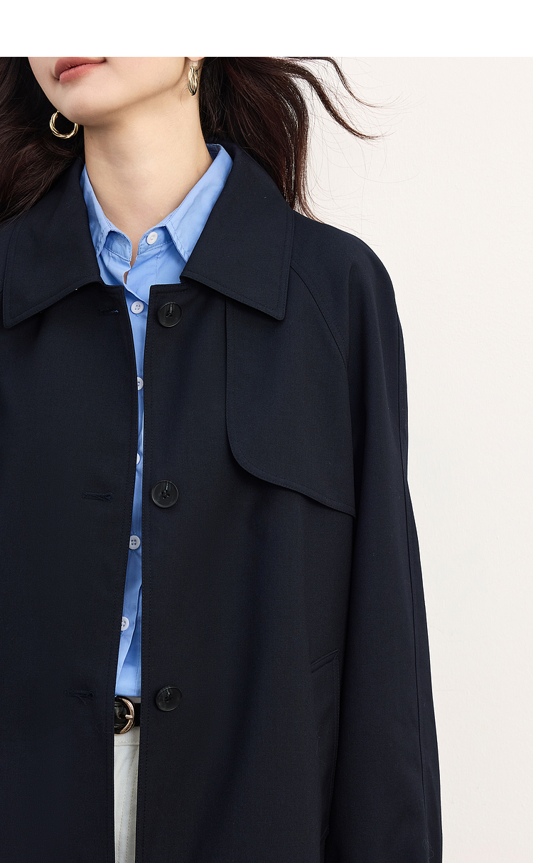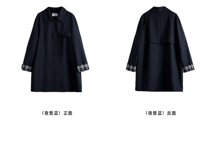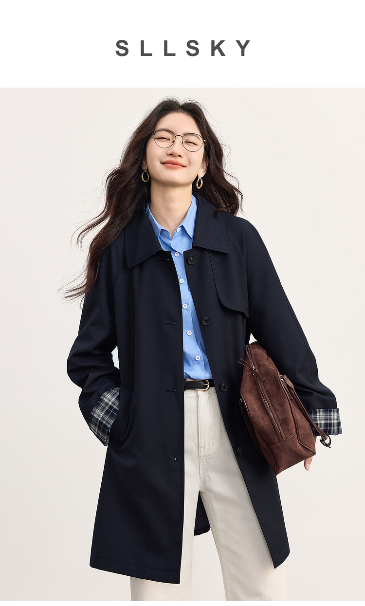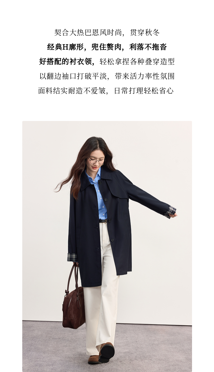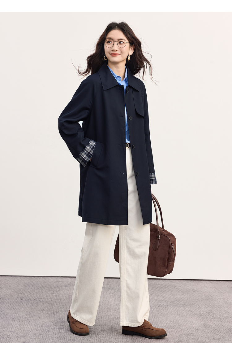 【09/17新品】熙世界淡人穿搭风衣外套女高级感格纹翻边袖中长款大衣2025秋新款