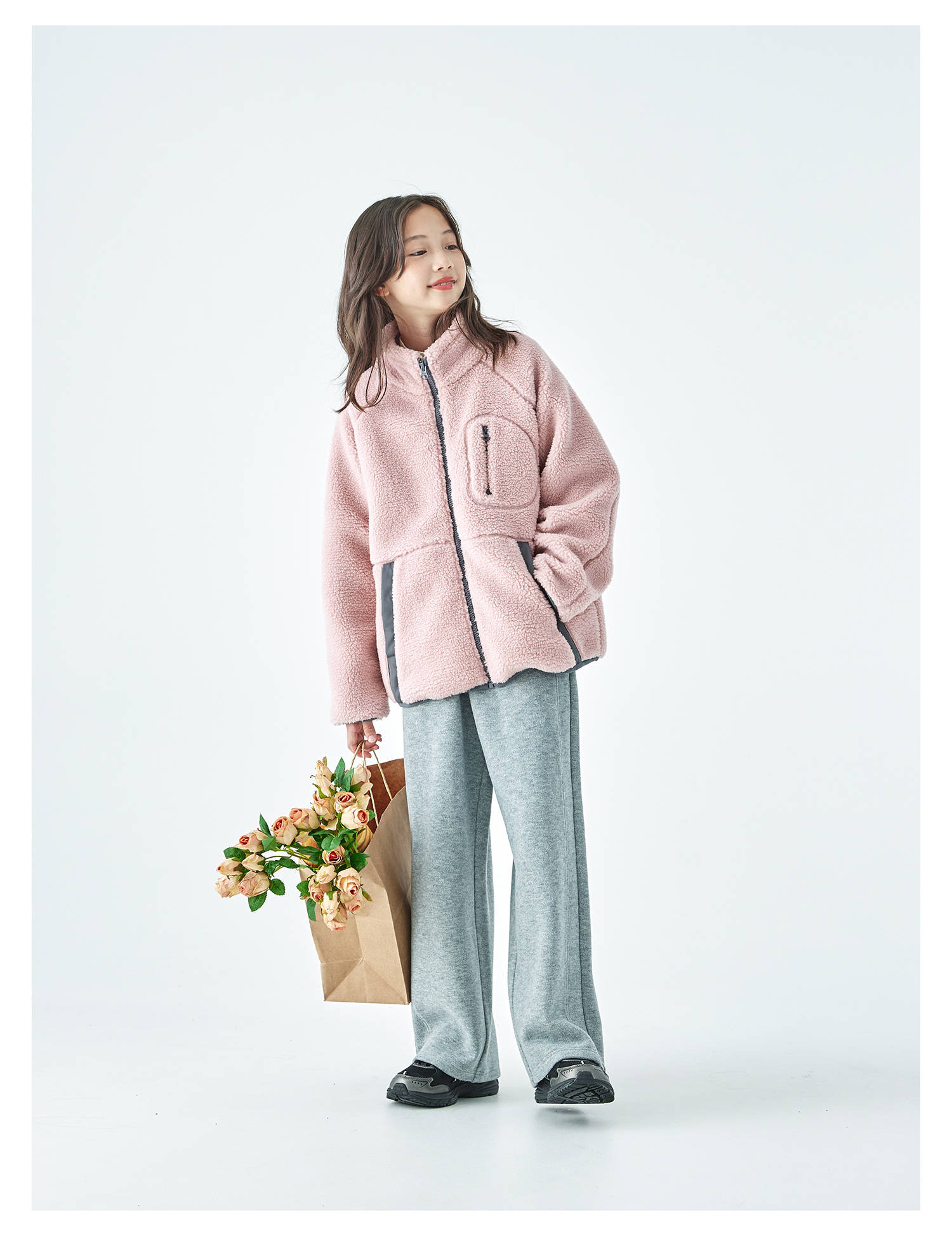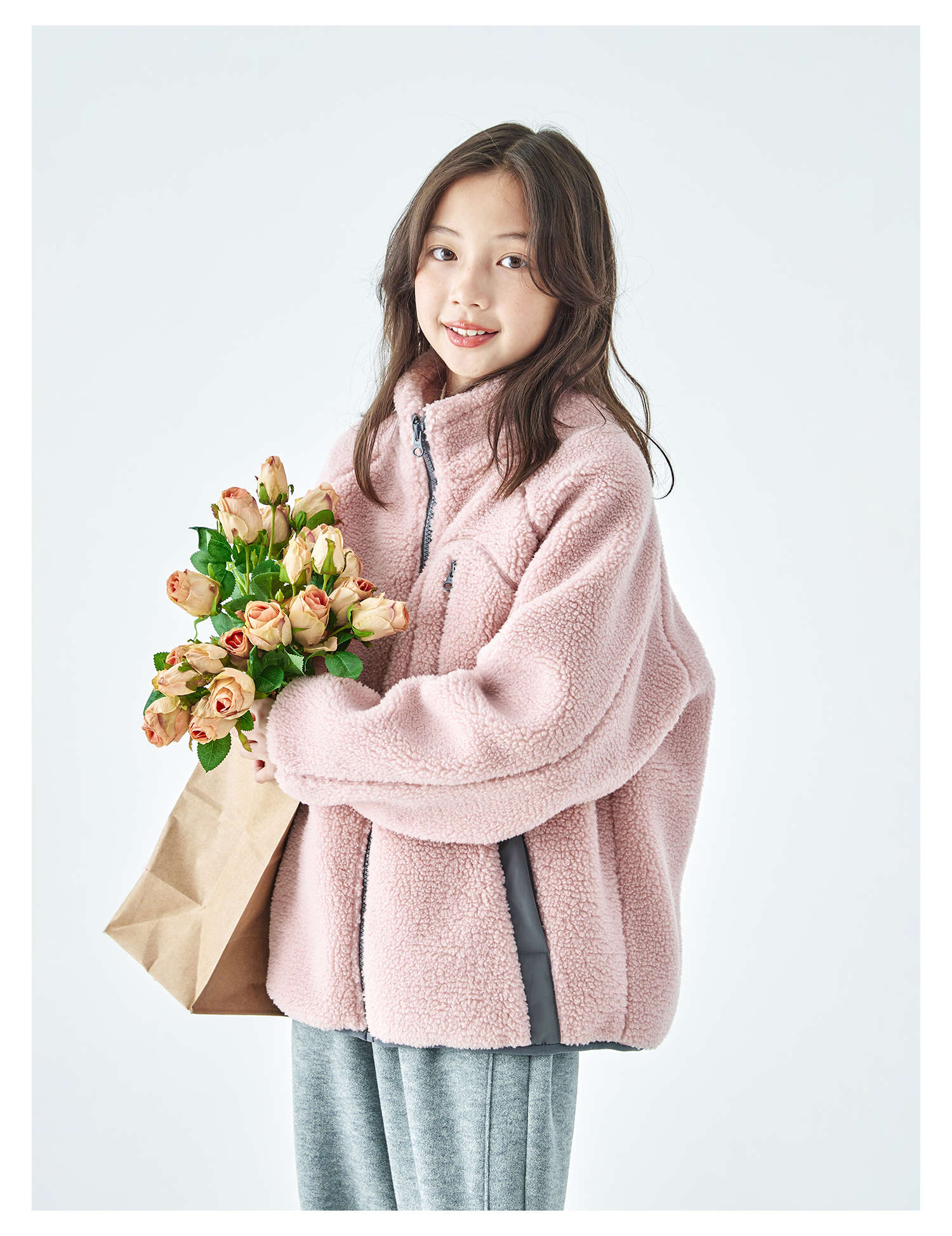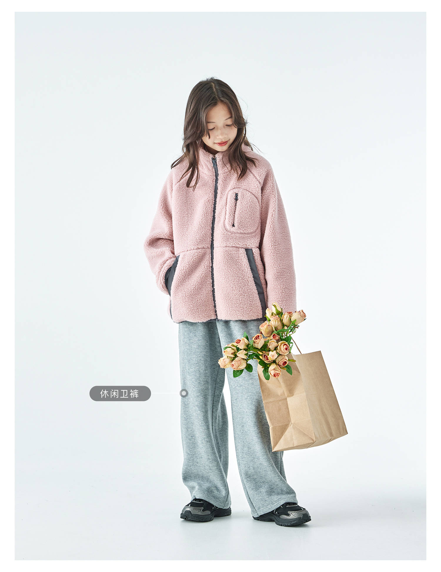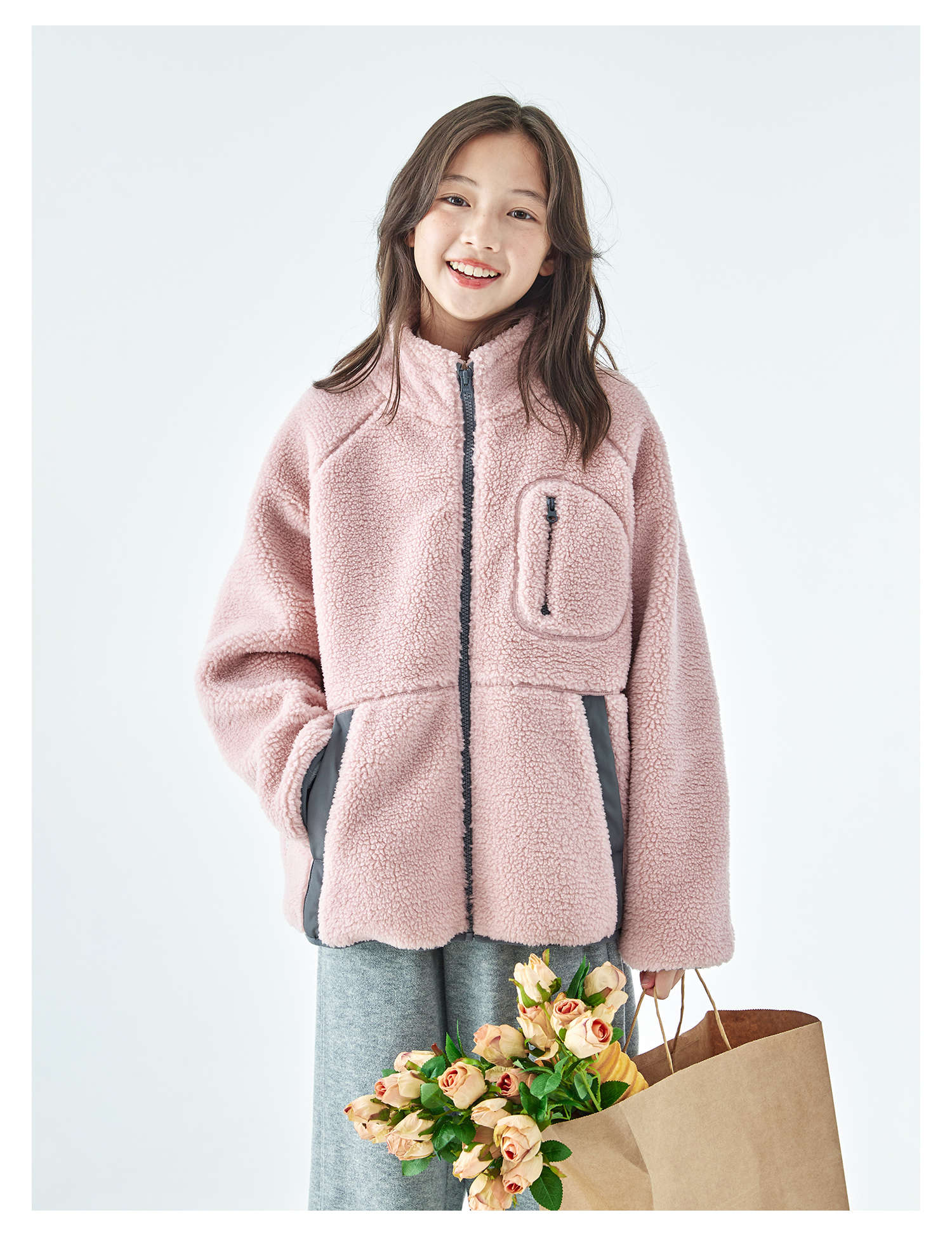棵初2025年冬季新款亲子中大女童仿羊羔毛外套绒感舒适保暖上衣