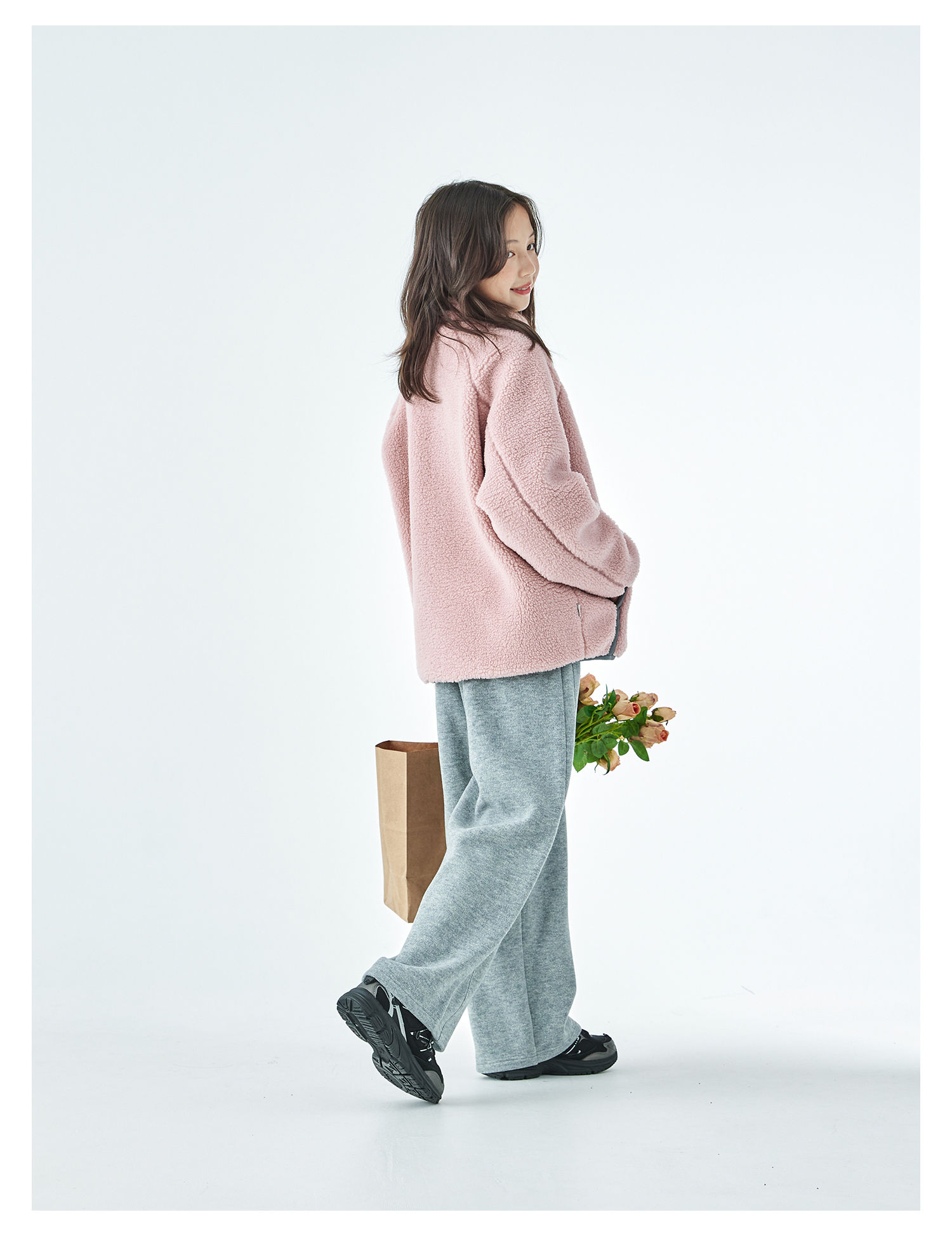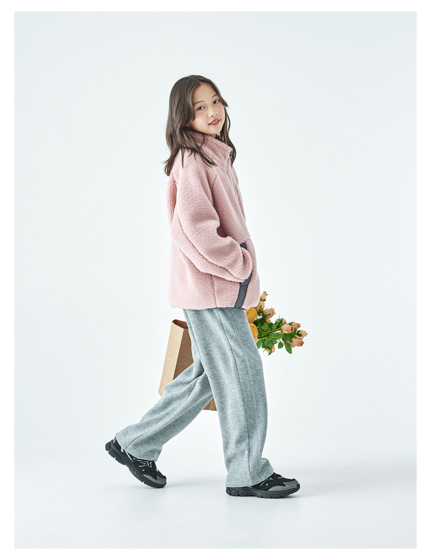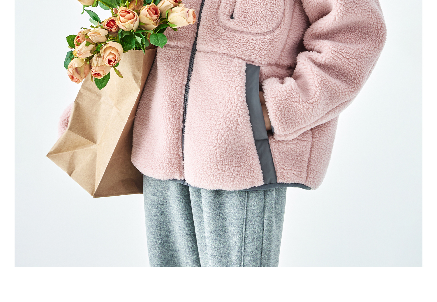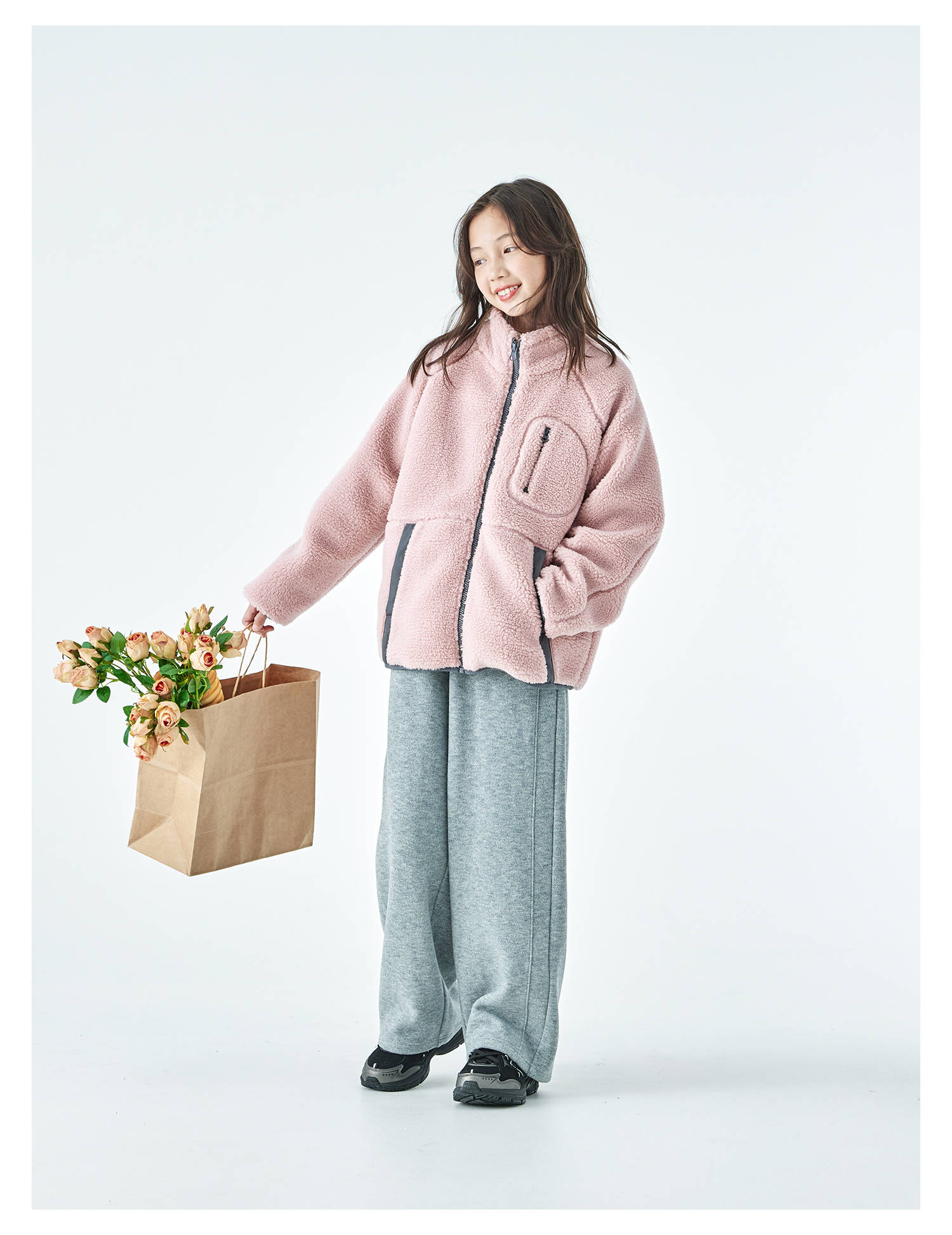 棵初2025年冬季新款亲子中大女童仿羊羔毛外套绒感舒适保暖上衣