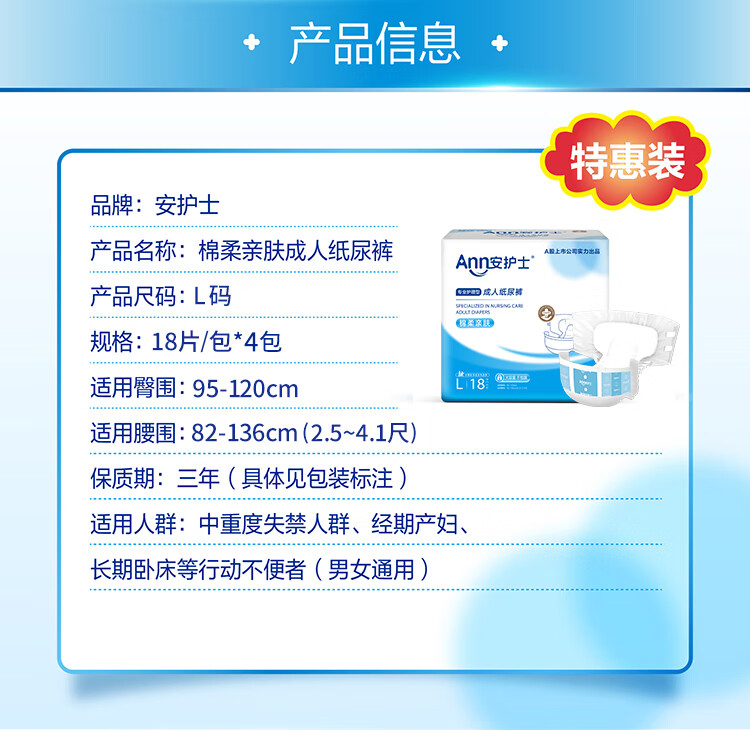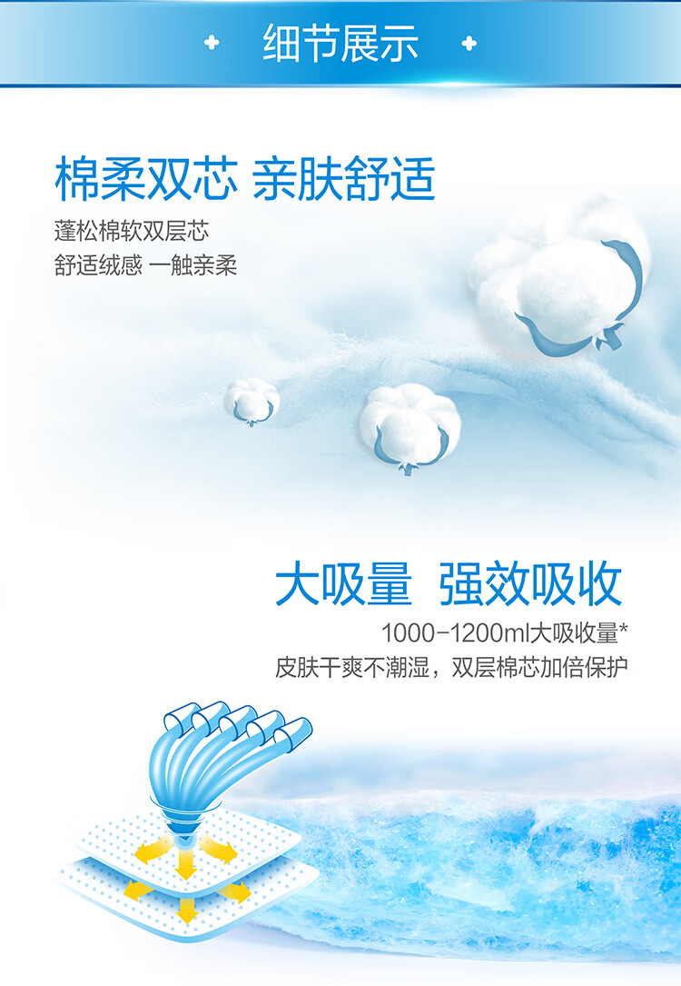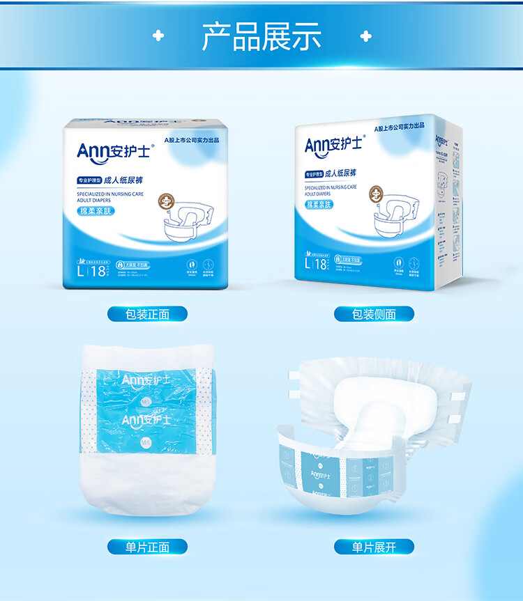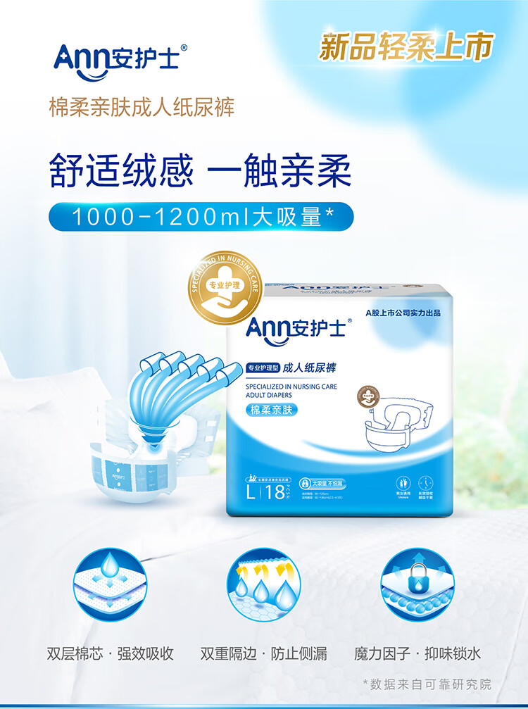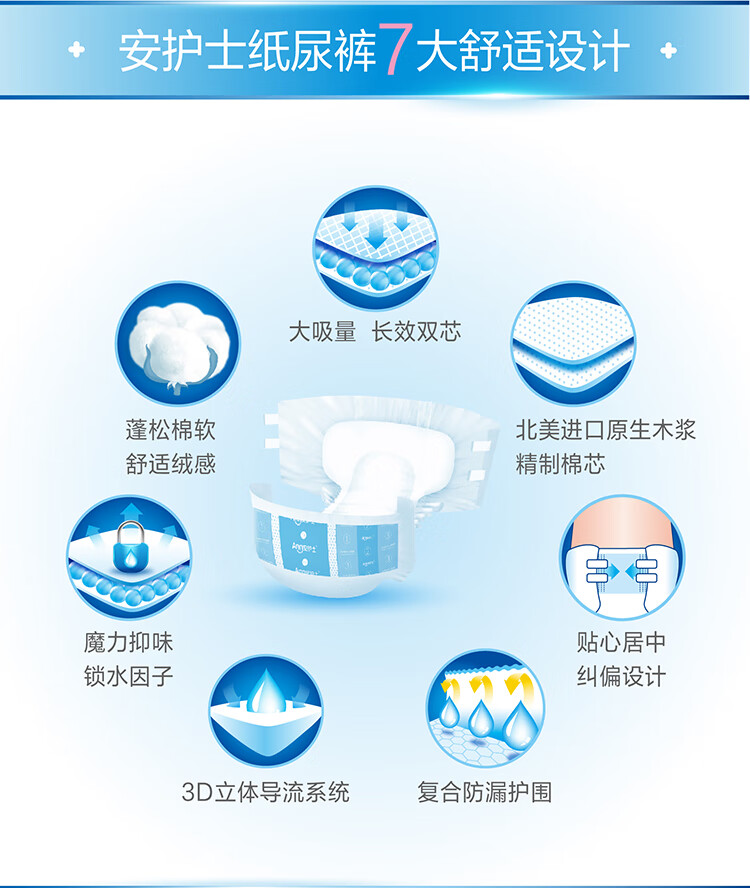 【安护士棉柔亲肤纸尿裤 单包】 大吸量 长效双芯 M/L码