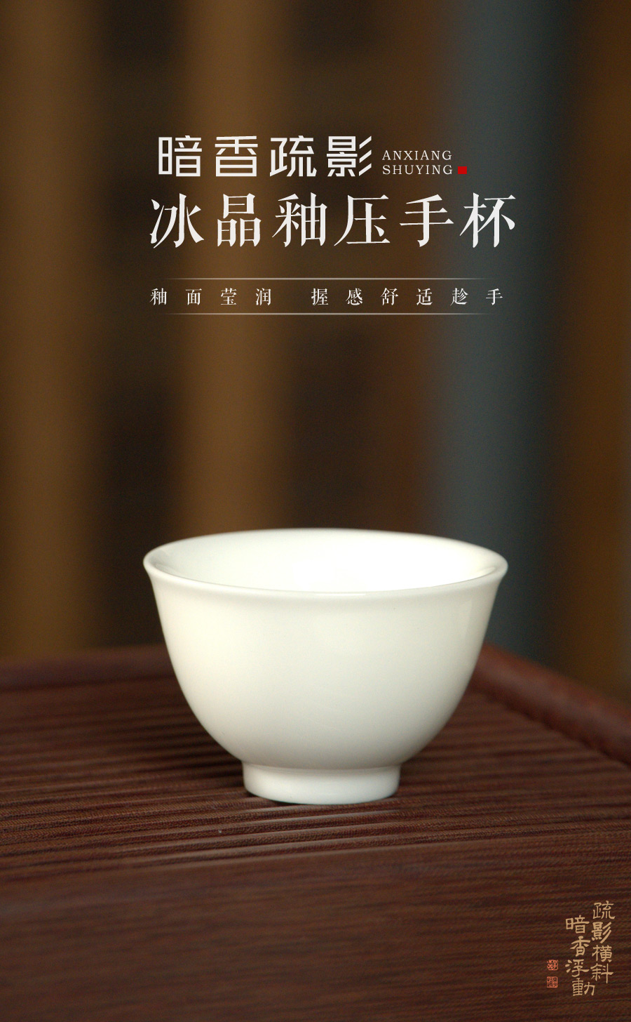 暗香疏影/冰晶釉压手杯陶瓷主人杯品茗杯中式水杯男女泡茶茶具