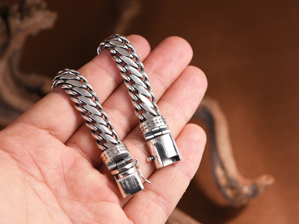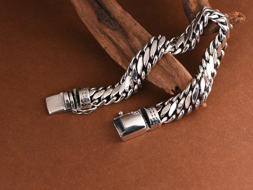 【望津】S925银编织宽版复古男款手链【SCH-CK40297-2.5】