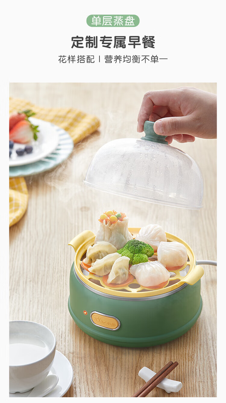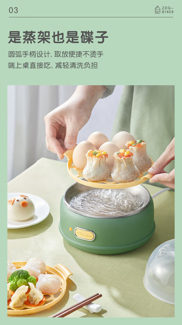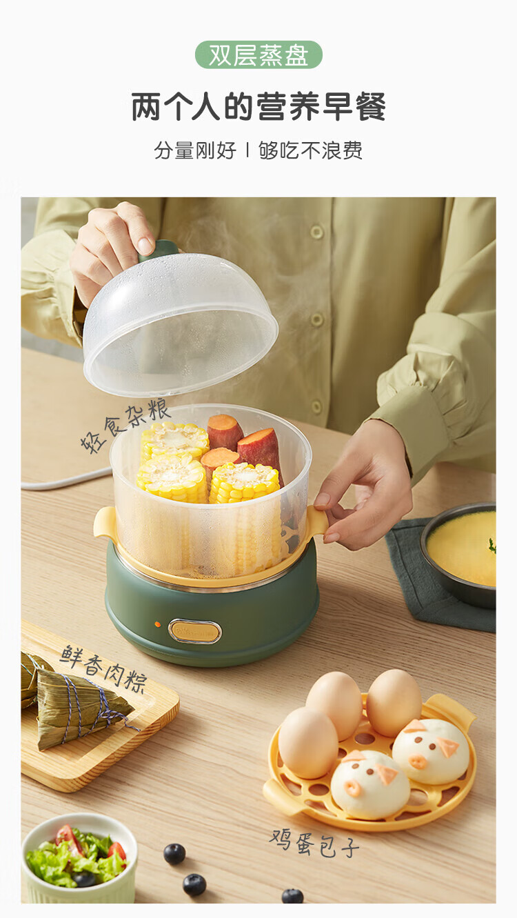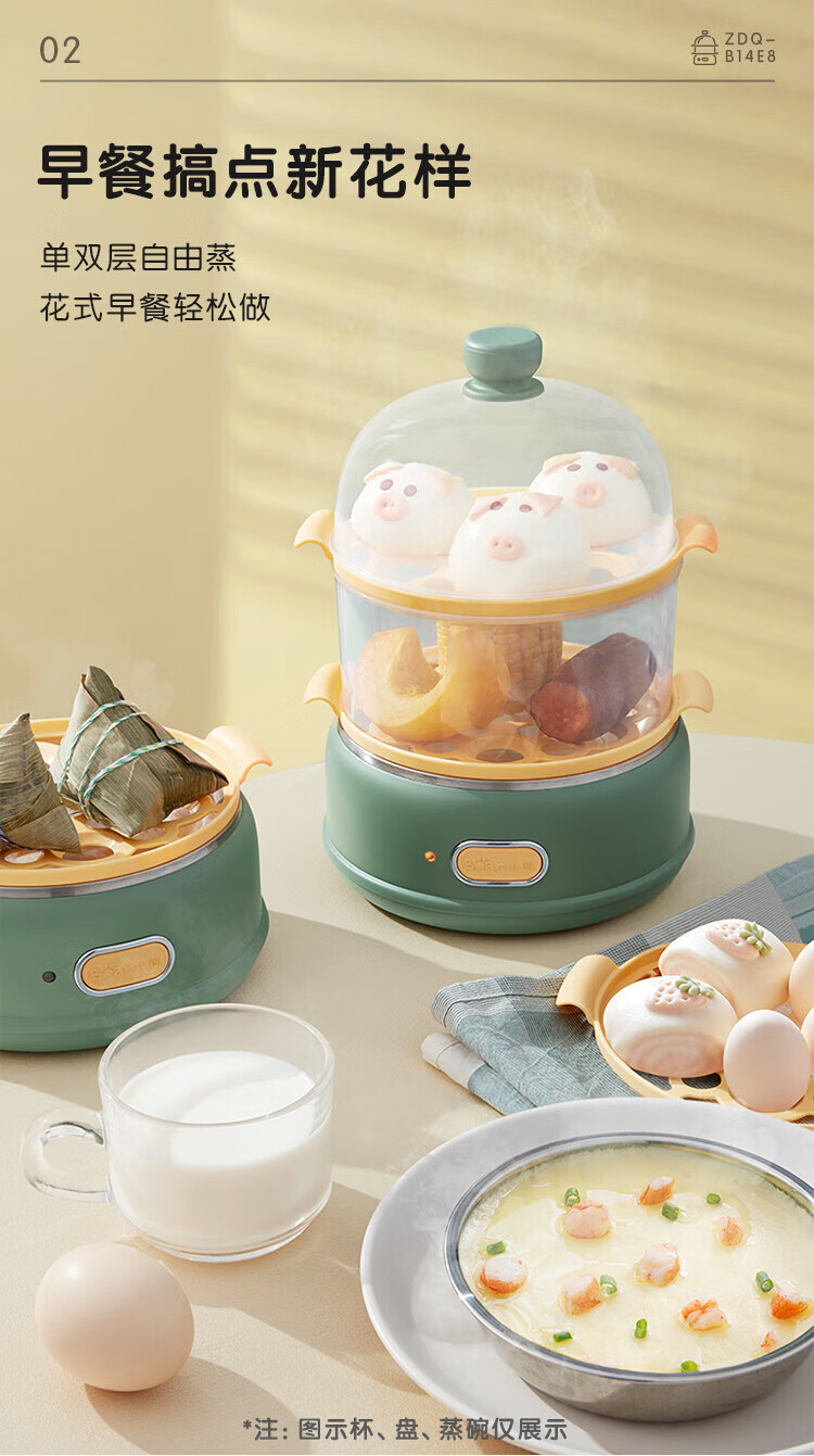 小熊(Bear)煮蛋器 单双层 pp材质上盖+蒸笼 自动跳断 透明上盖 防烫提手 多功能 ZDQ-B14E8 双层