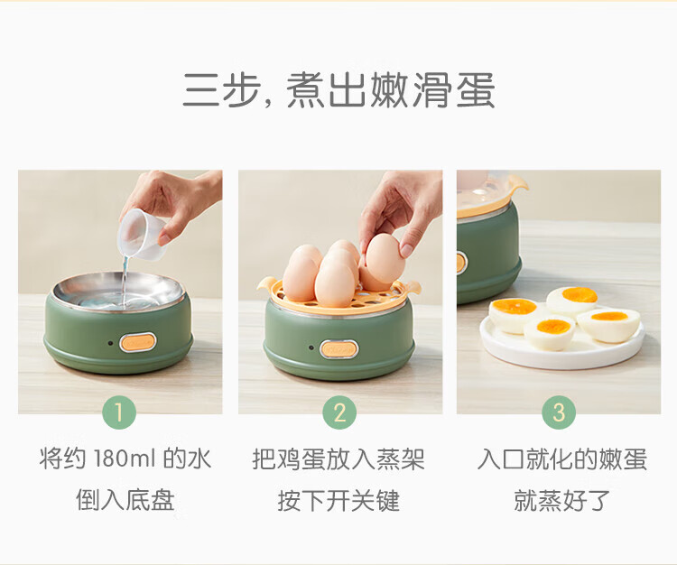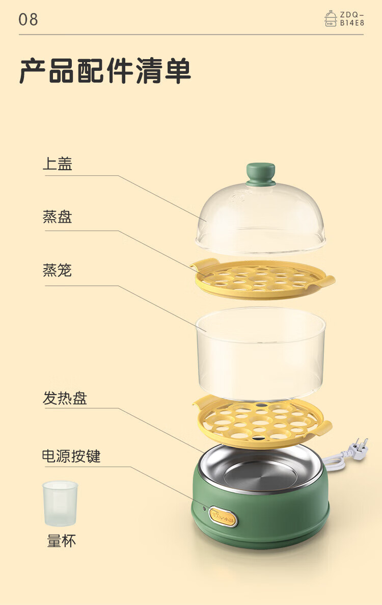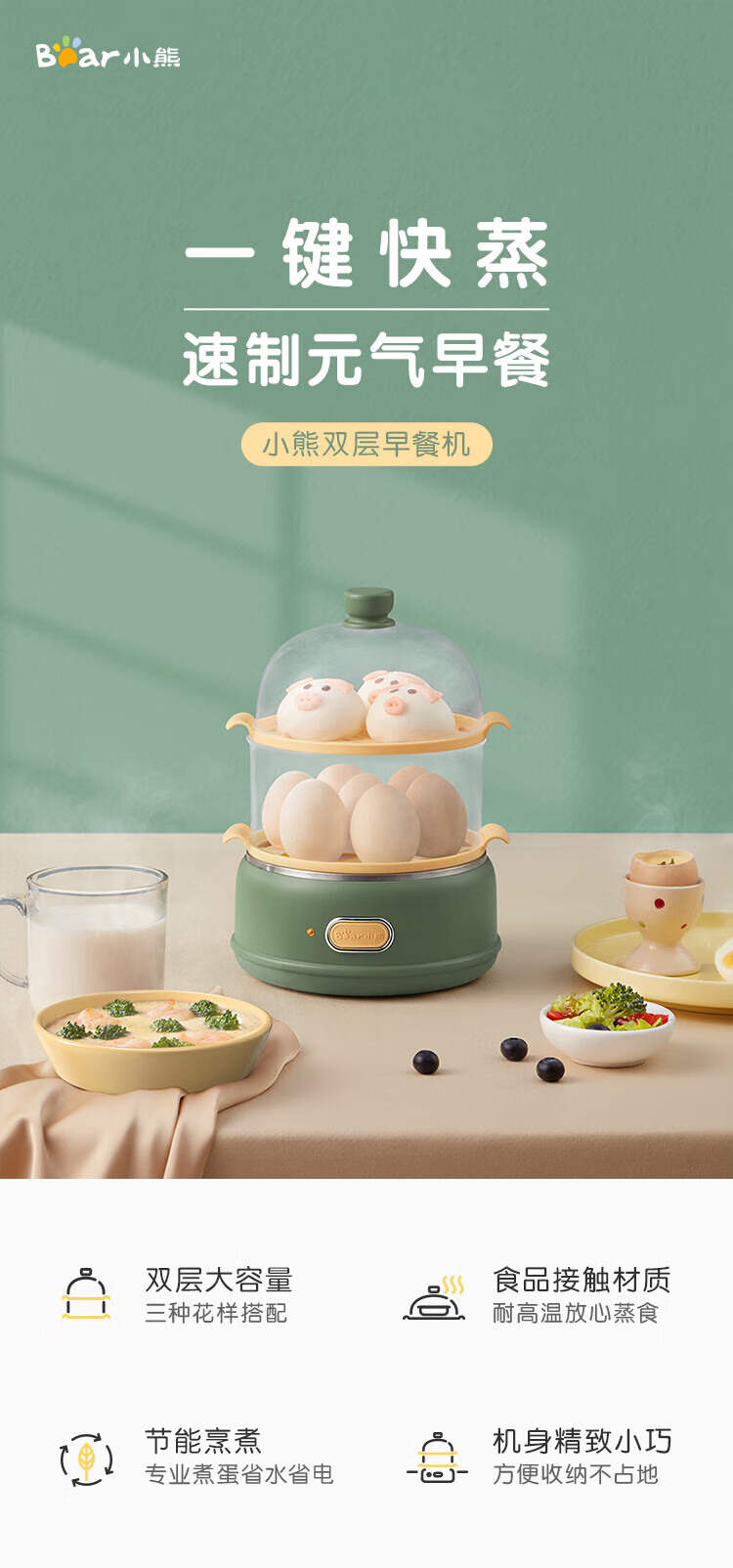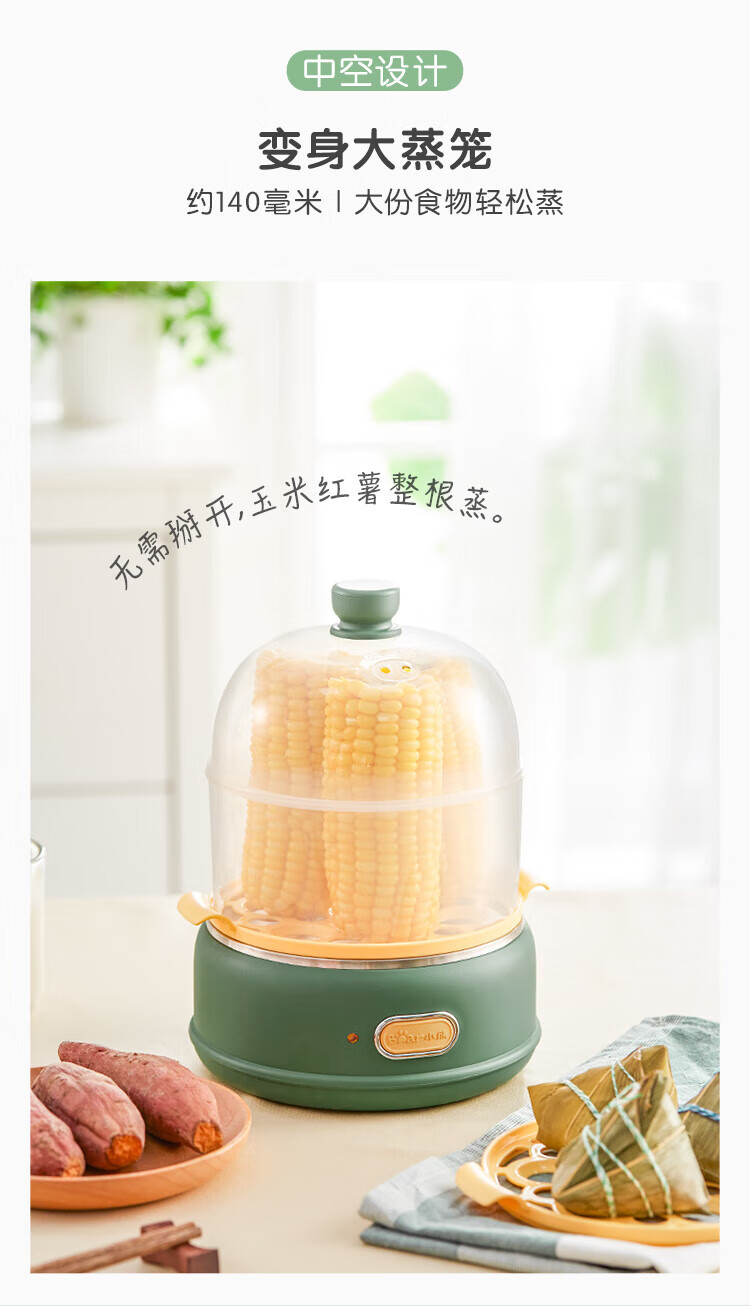 小熊(Bear)煮蛋器 单双层 pp材质上盖+蒸笼 自动跳断 透明上盖 防烫提手 多功能 ZDQ-B14E8 双层