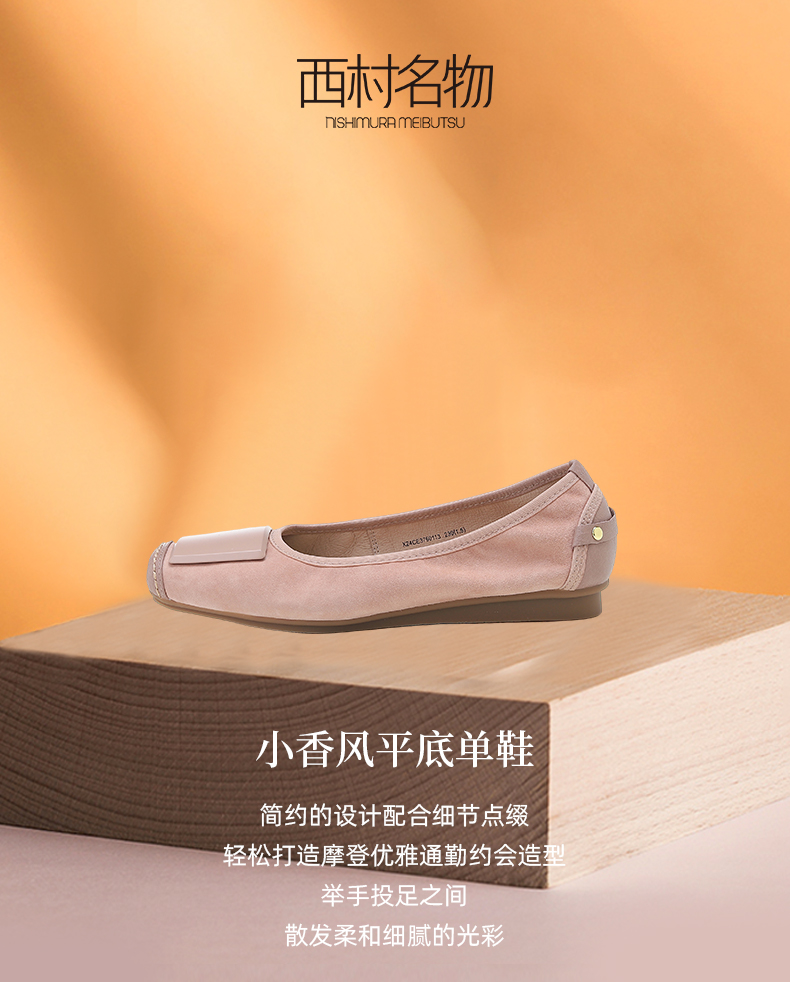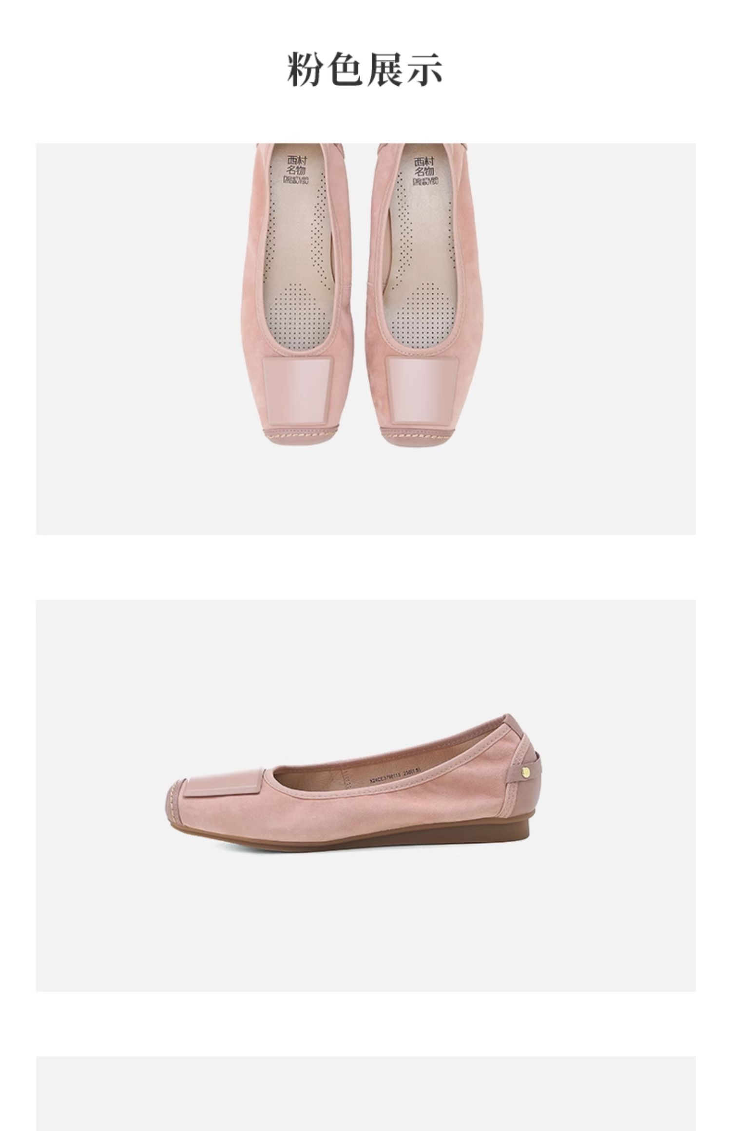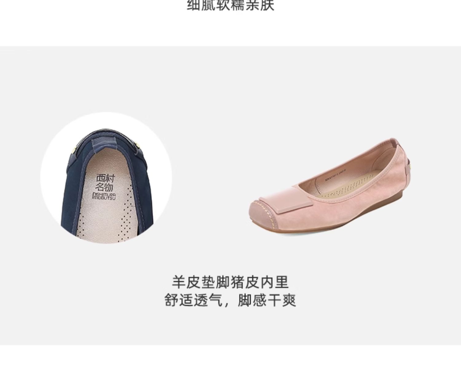 西村名物2024夏季新品牛皮气质法式时尚软底妈妈平底鞋浅口单鞋女X24CE37601