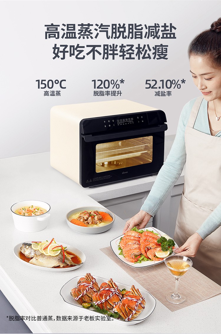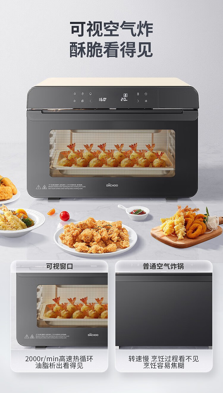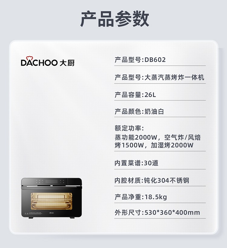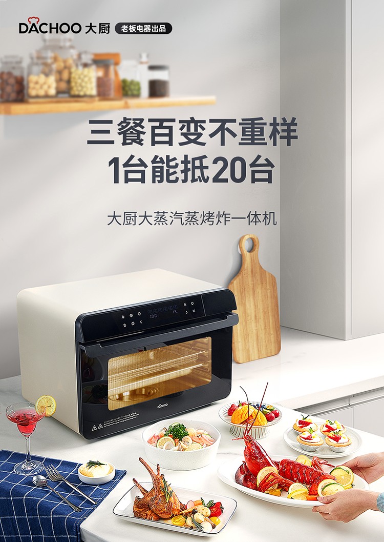 大厨(DACHOO)【老板电器】蒸烤箱一体机台式家用烤箱蒸箱蒸烤一体机空气炸DB602 奶油白