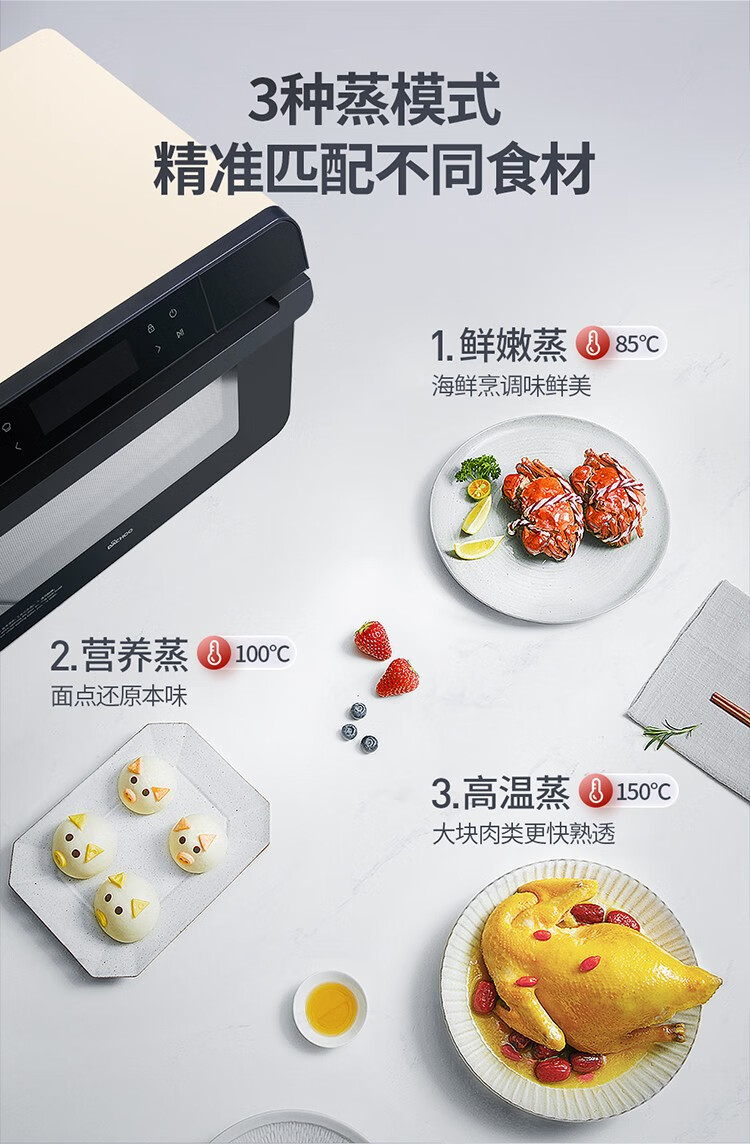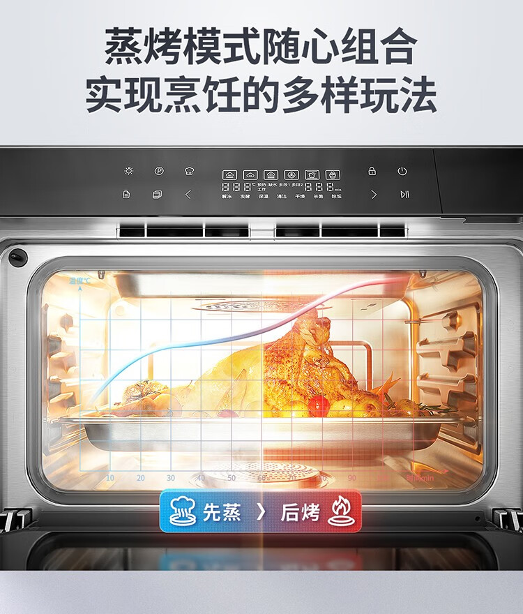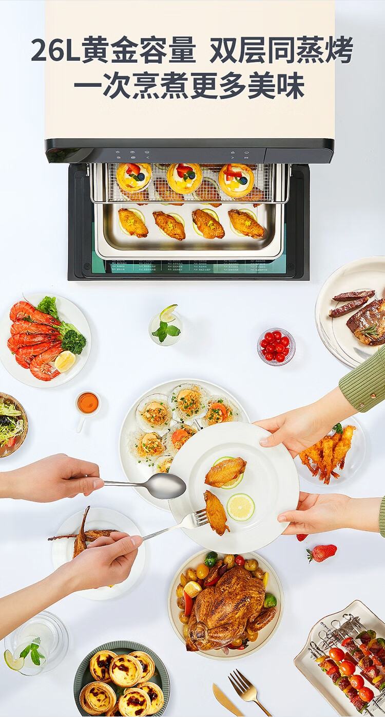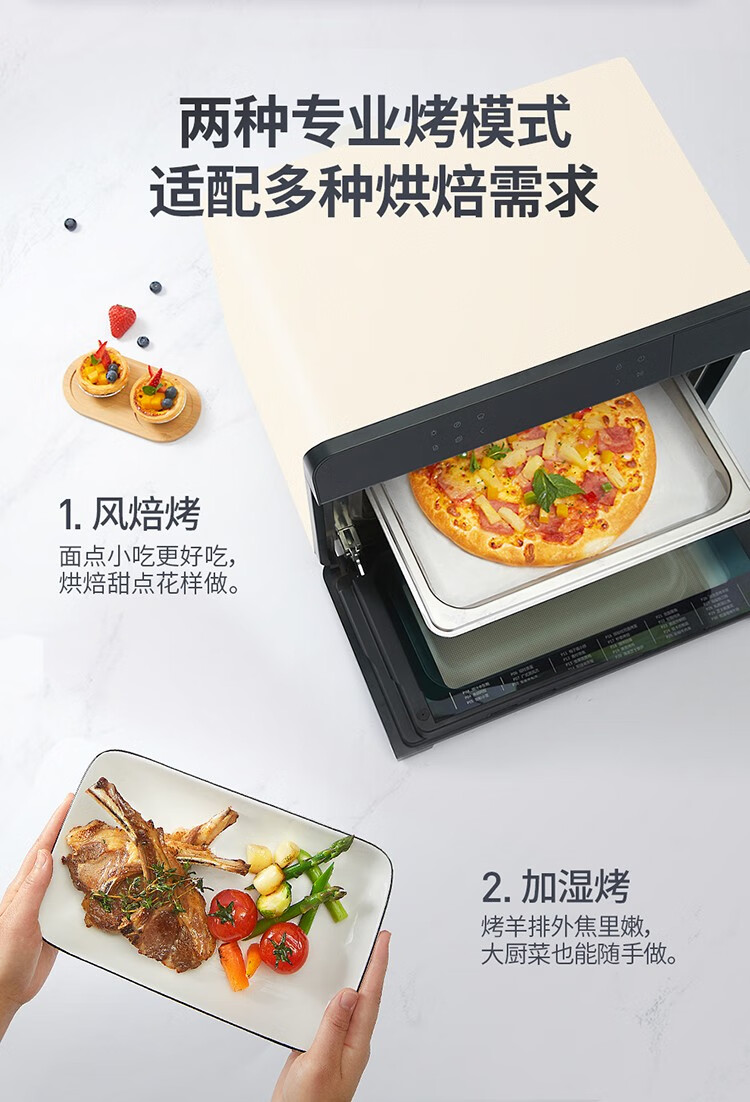 大厨(DACHOO)【老板电器】蒸烤箱一体机台式家用烤箱蒸箱蒸烤一体机空气炸DB602 奶油白