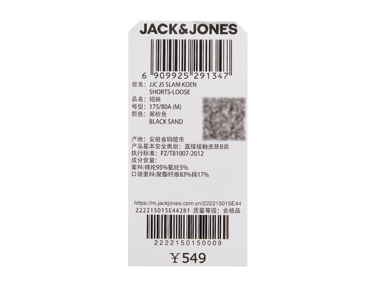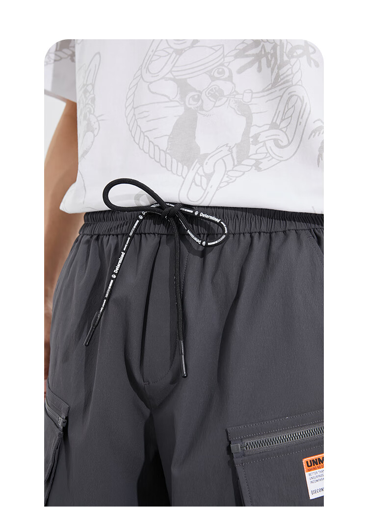 JackJones杰克琼斯夏季男士多口袋设计纯色百搭流行高街工装短裤222215015 E44黑砂色