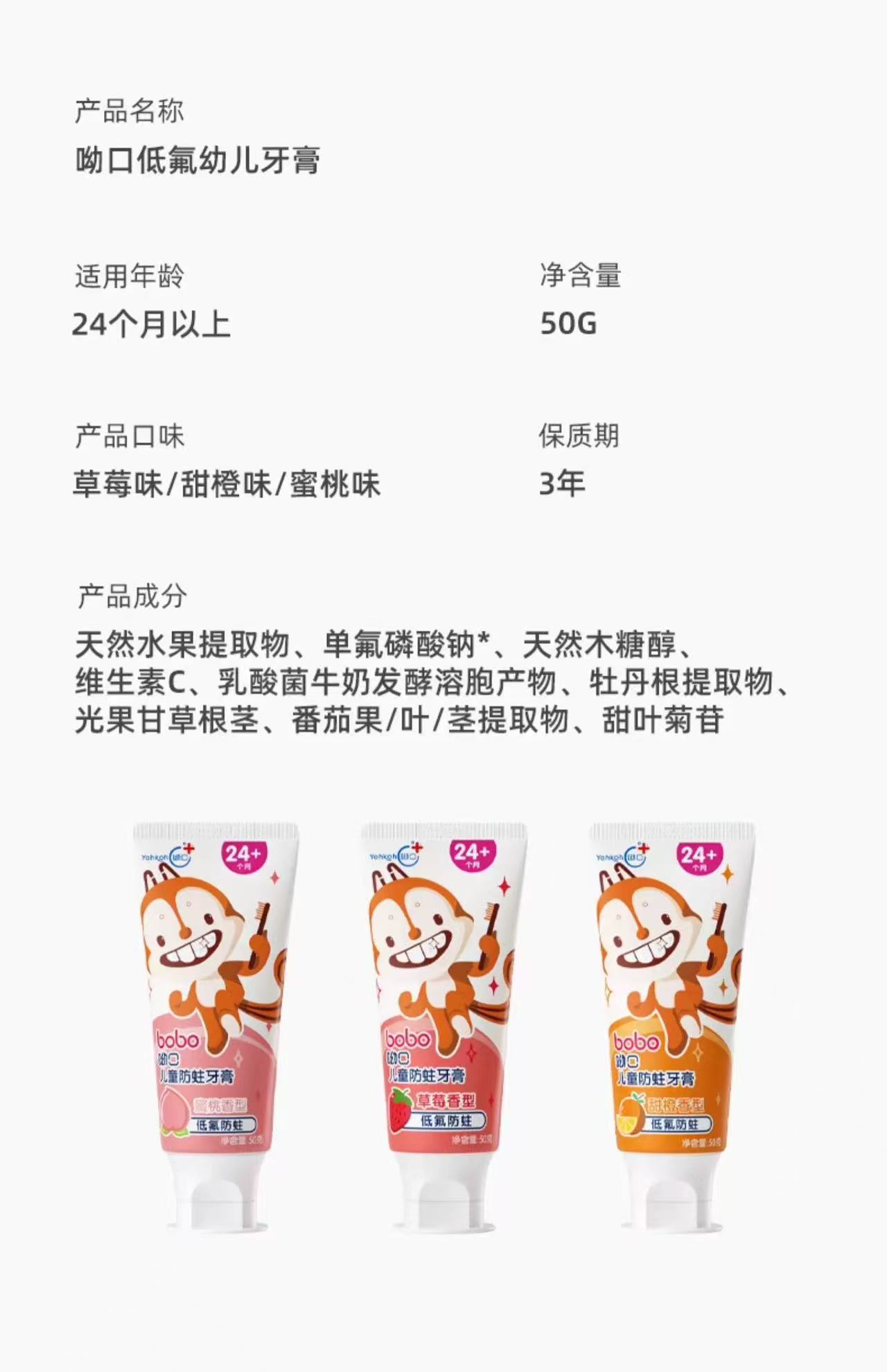 bobo宝宝无氟牙膏 草莓/香橙/蜜桃 防蛀固齿牙膏