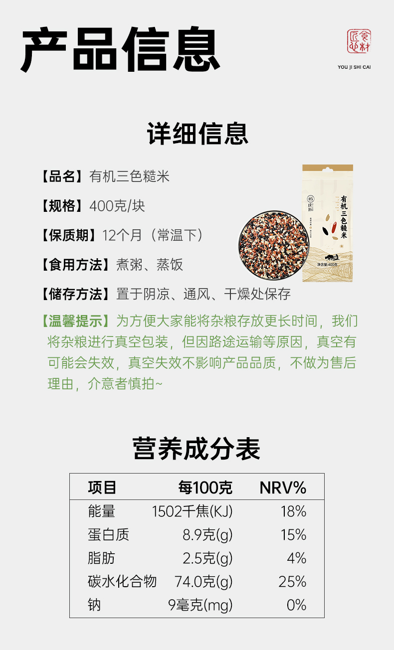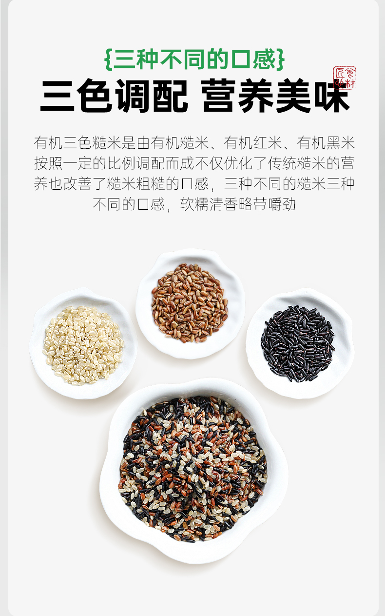 璞匠有机三色糙米粗粮糙米饭糙米黑米红米五谷杂粮组合三色健身