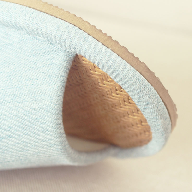 鞋面采用的是棉麻材质,所以透气吸湿的效果真的非常好!!夹层是有弹性的气垫海绵加2次发泡EVA以及松版纸,真的是绵柔的踩踏感,但是不会软到没有形状,而是完完全全地贴合足底足弓的设计哦~~