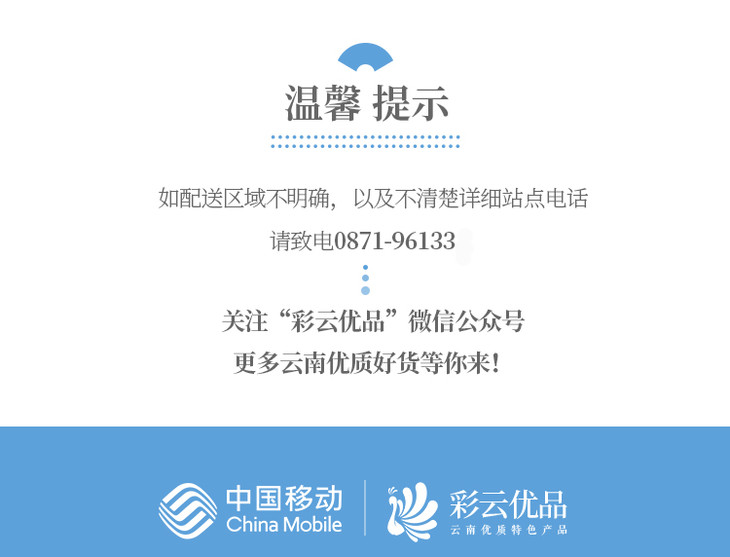 配送标准:云南省内部分地市(具体派送范围请参看详情页),或下单前请致电0871-96133,进行确认后再下单!